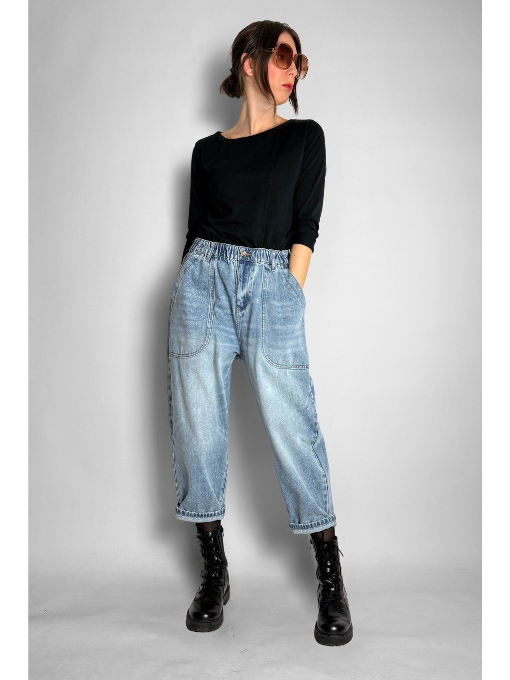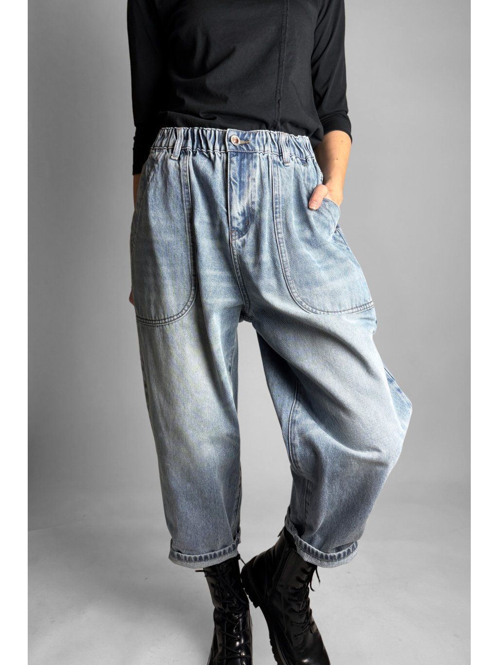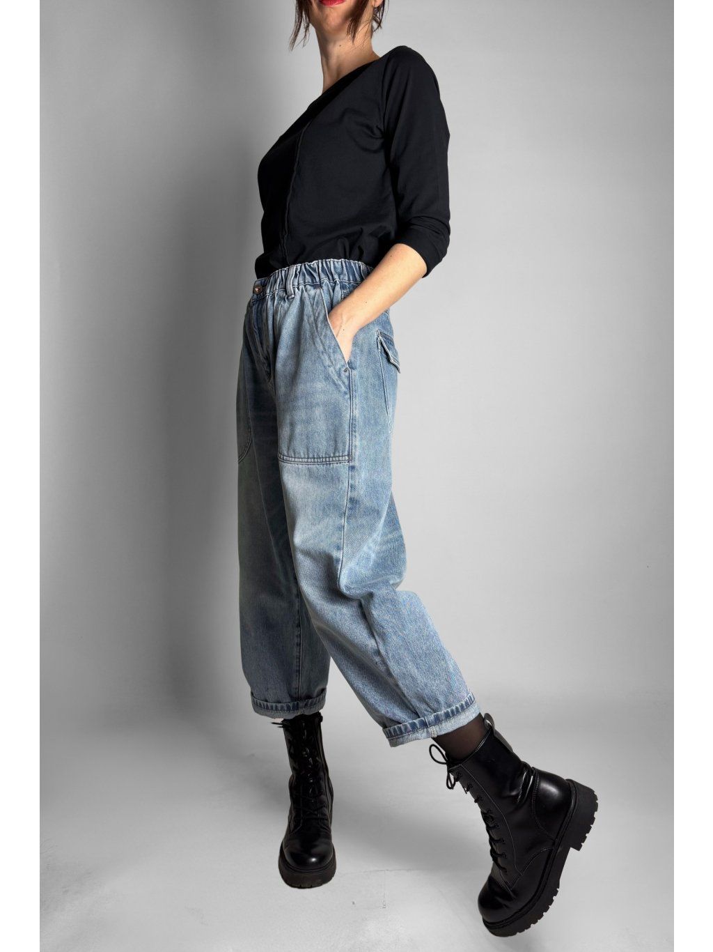 Stylové baggy džíny s pohodlným volnějším střihem, které se krásně přizpůsobí postavě
