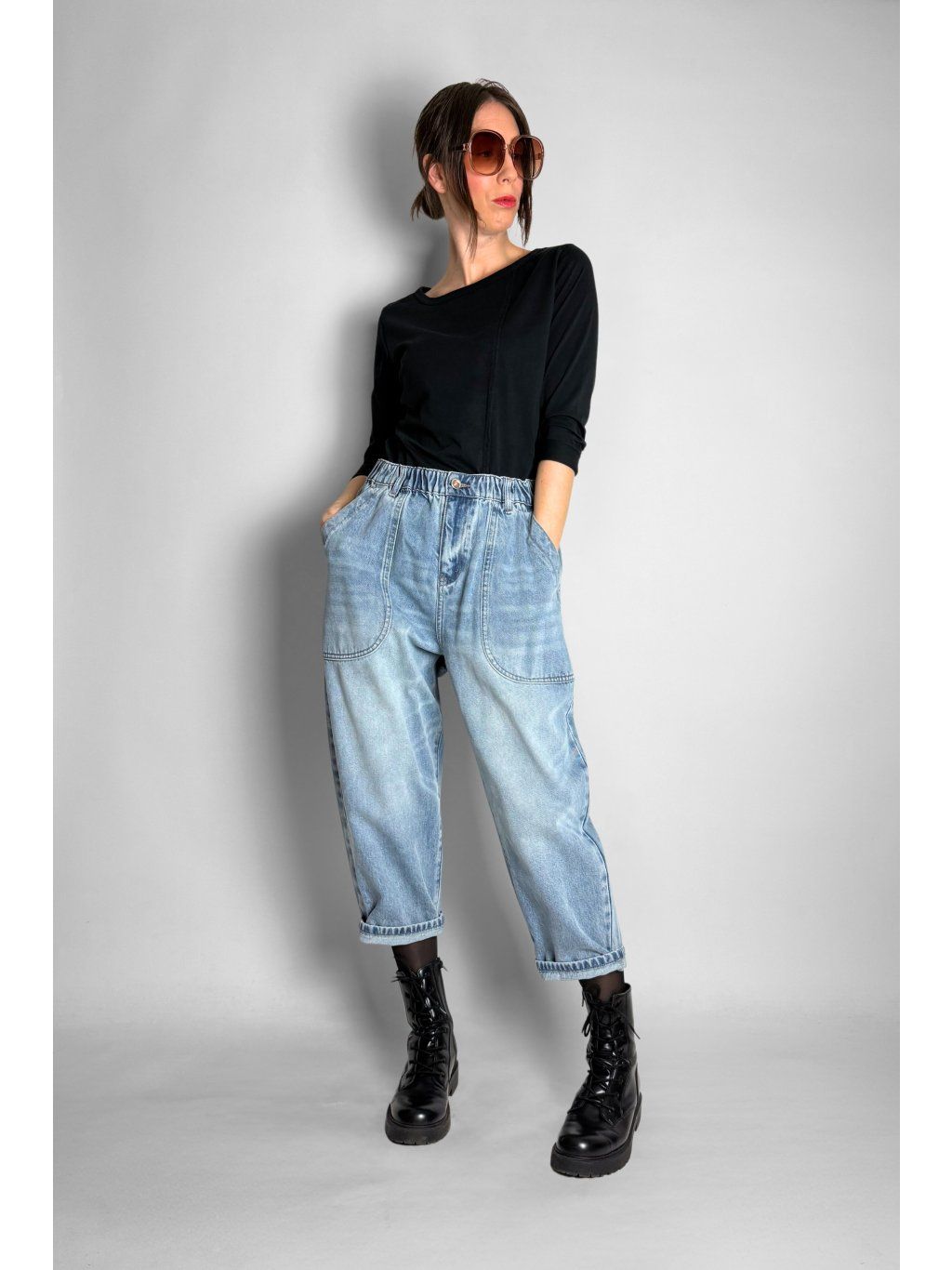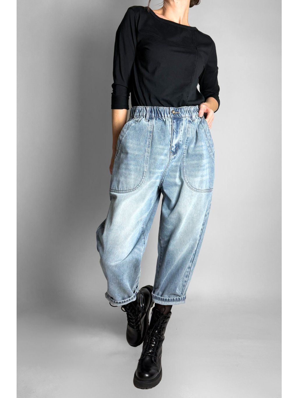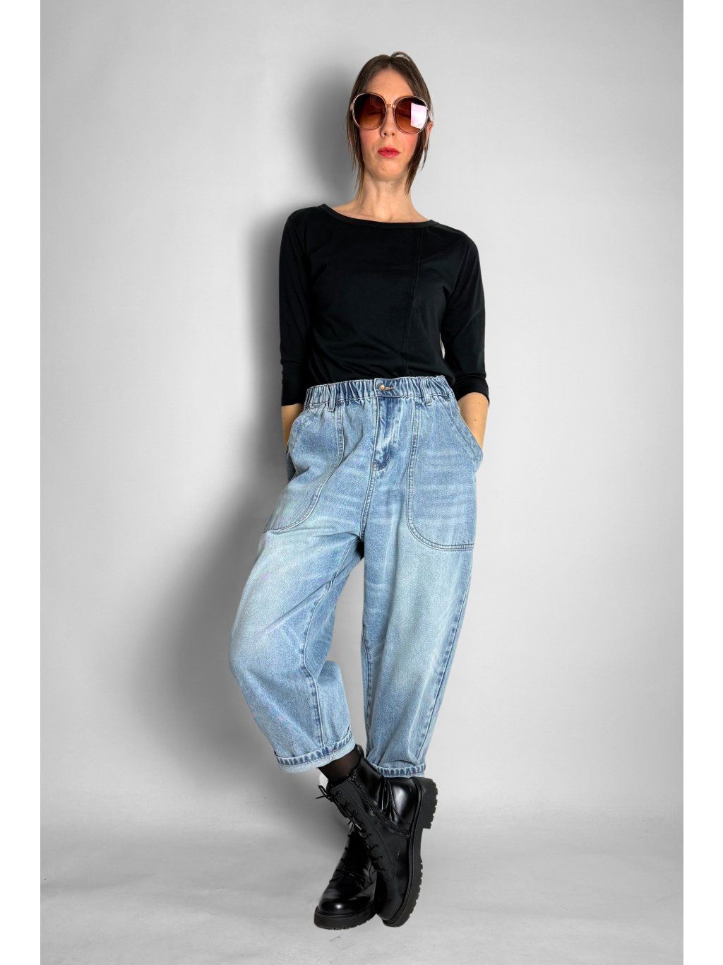 Stylové baggy džíny s pohodlným volnějším střihem, které se krásně přizpůsobí postavě
