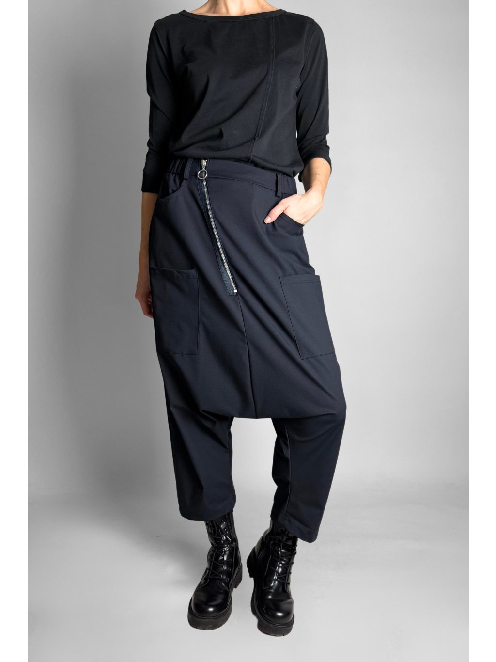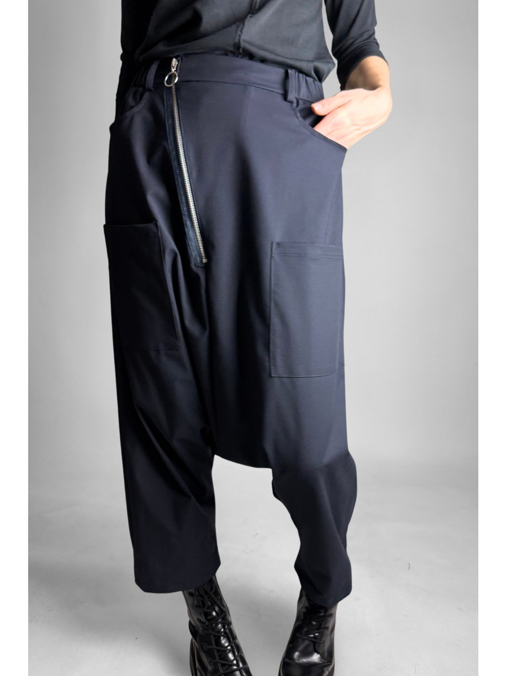 Dlouhý šikmý zip v přední části