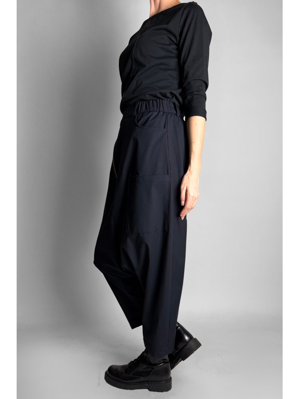 Střih volný | široké boky | široké nohavice | nízký sed