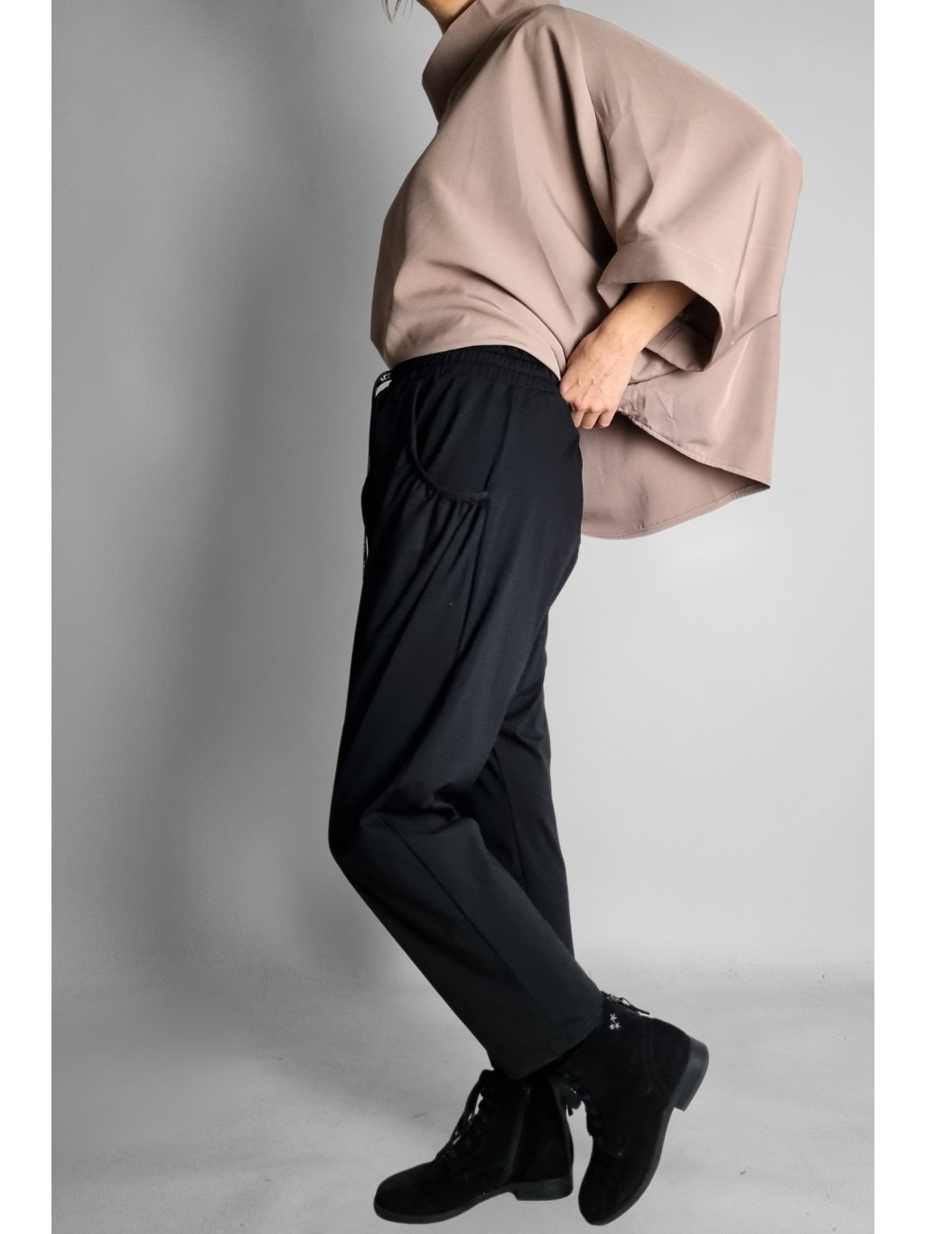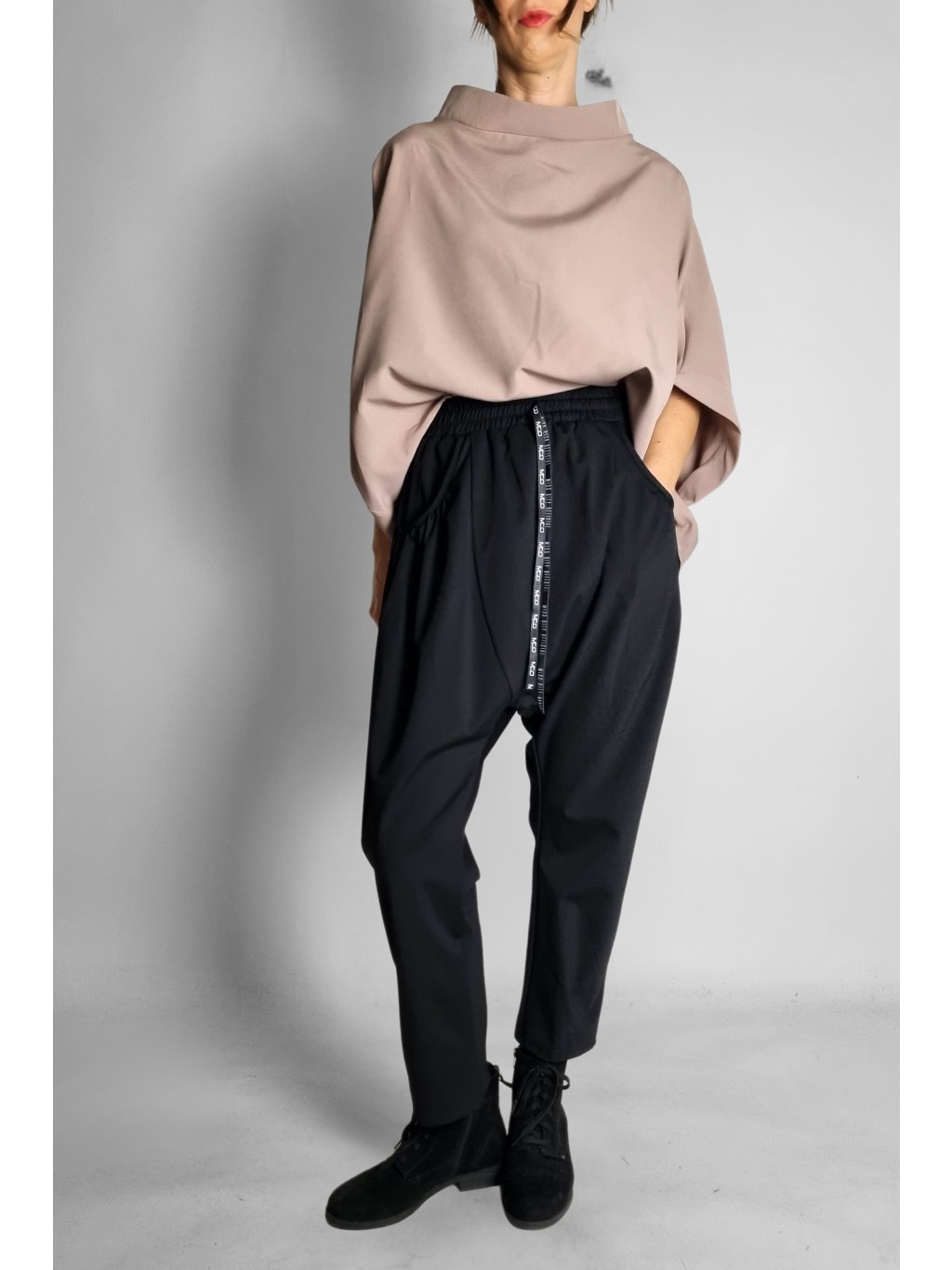 - Střih: Volný | široké boky | úzké nohavice