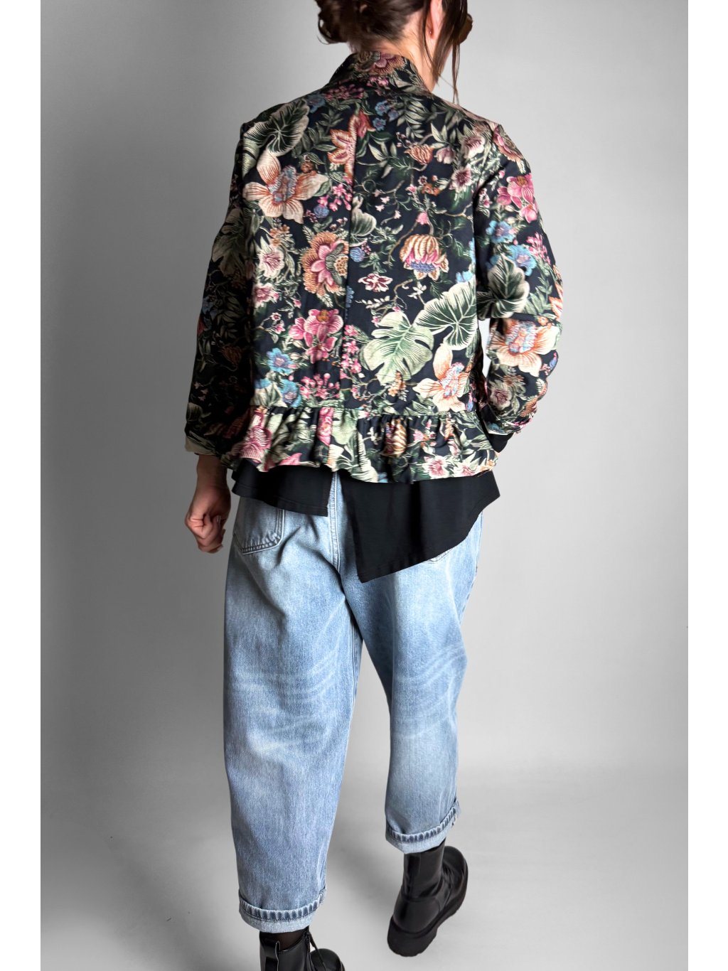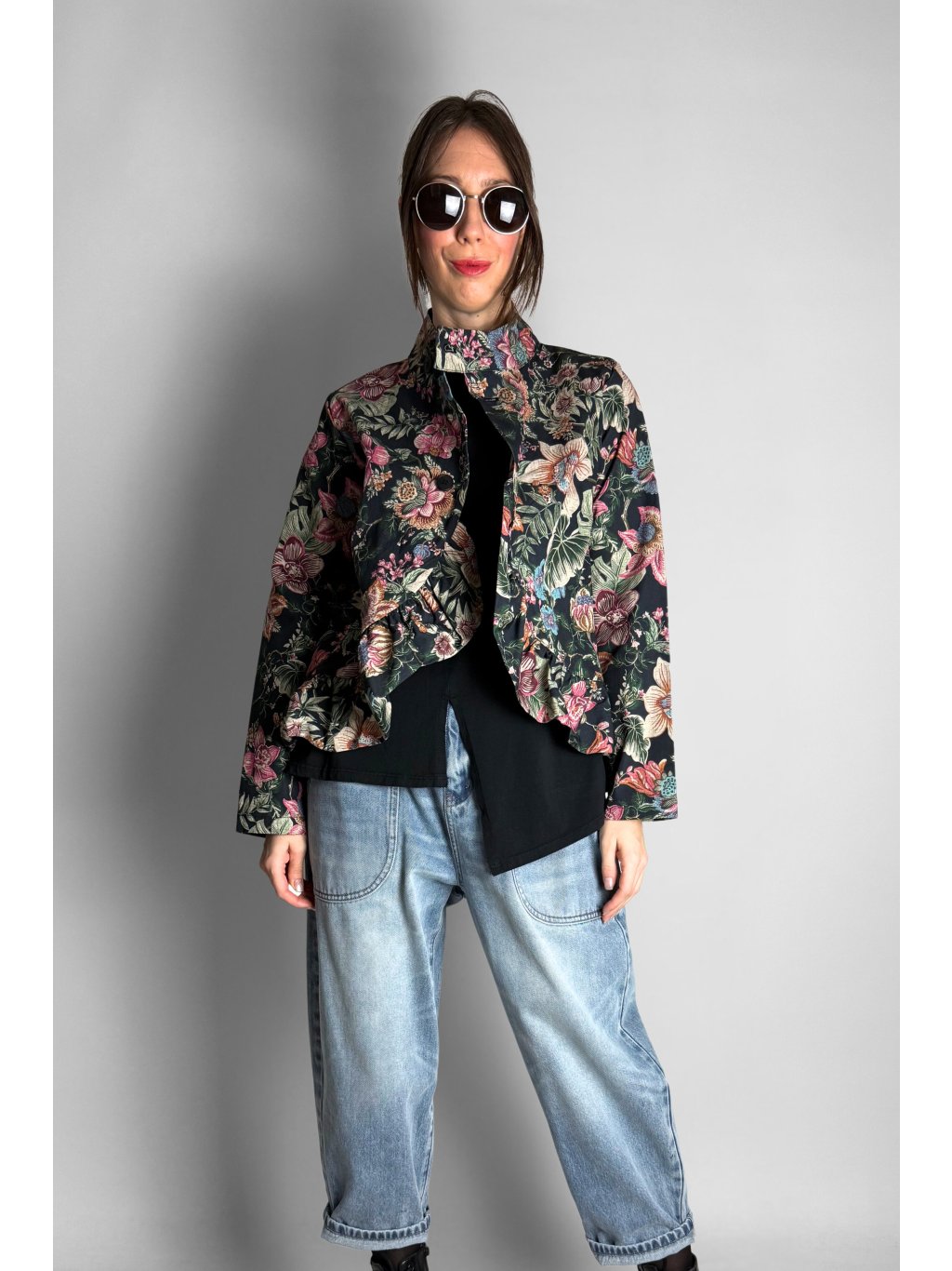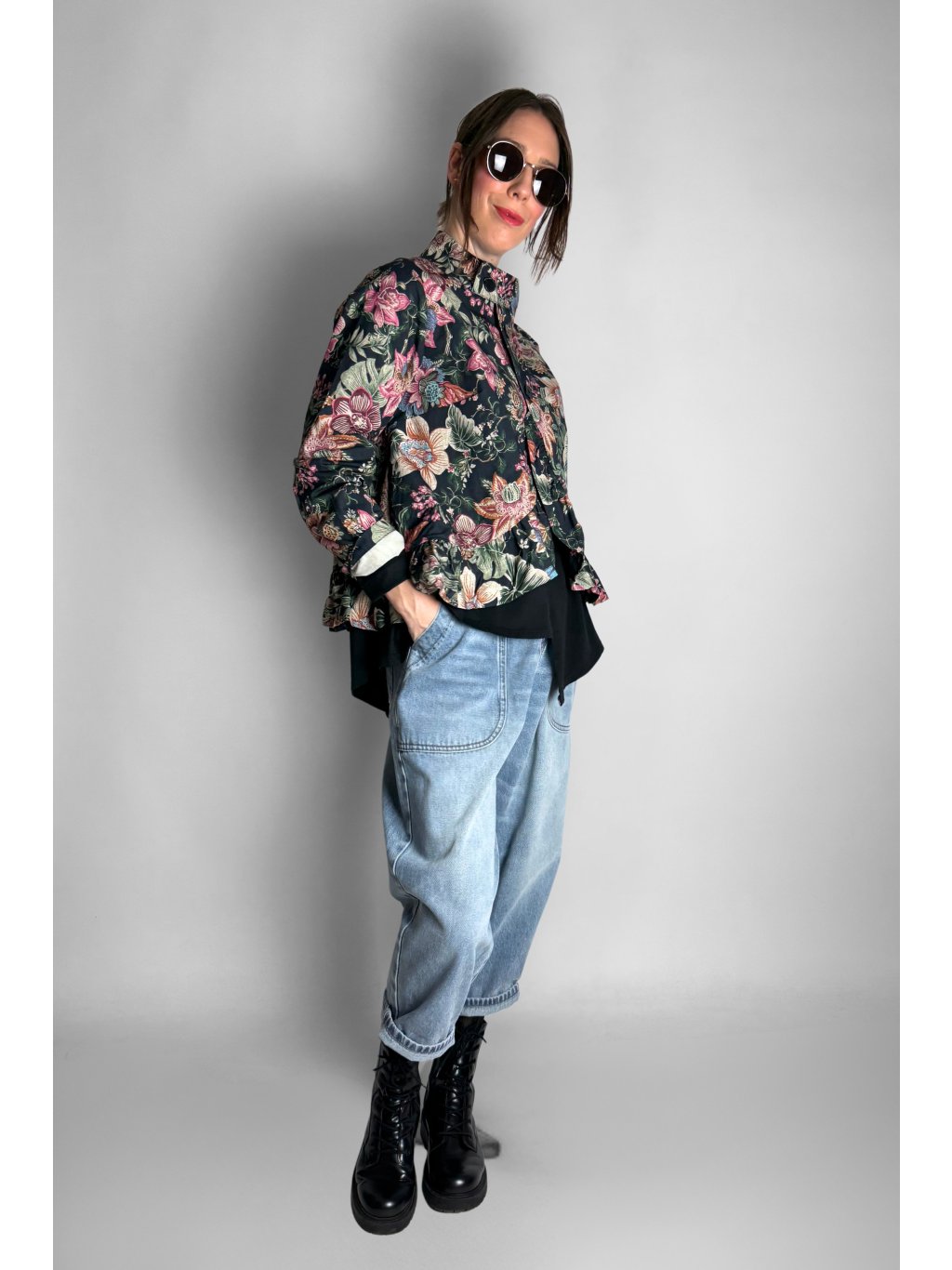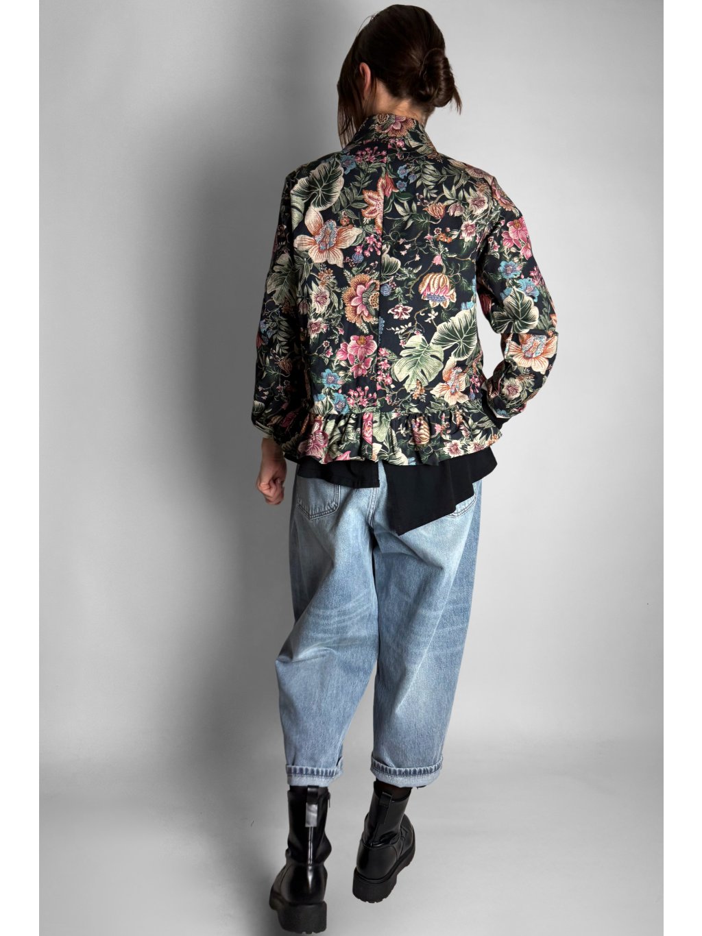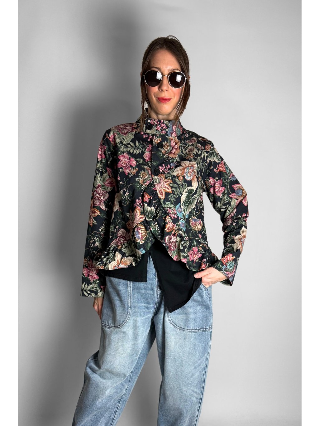 Lehká květovaná bunda z pevného, velmi příjemného plátěného materiálu. Díky 100% bavlně je bunda prodyšná, komfortní a ideální pro přechodové období.