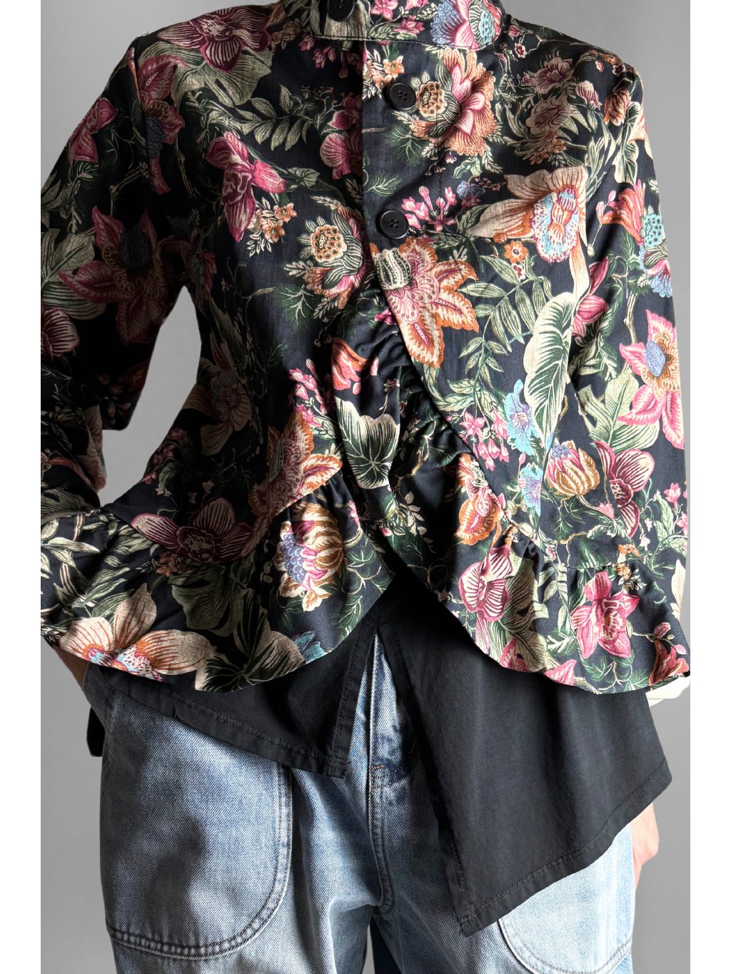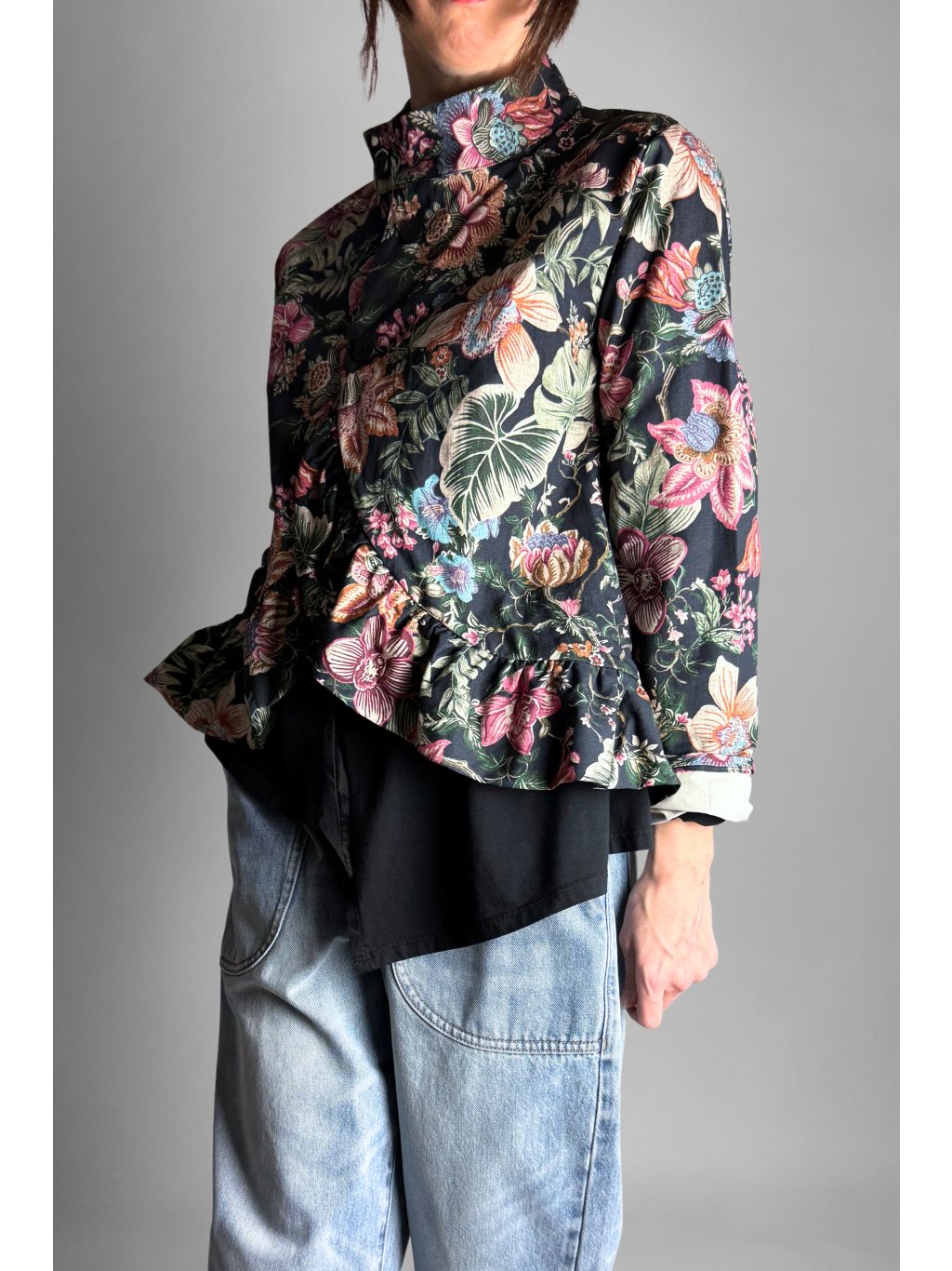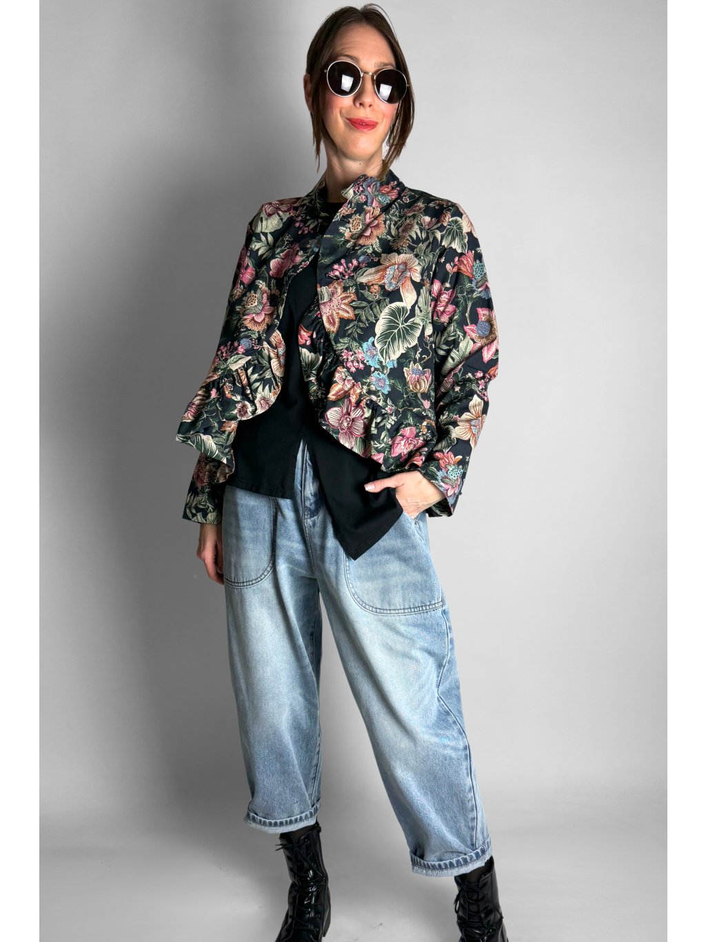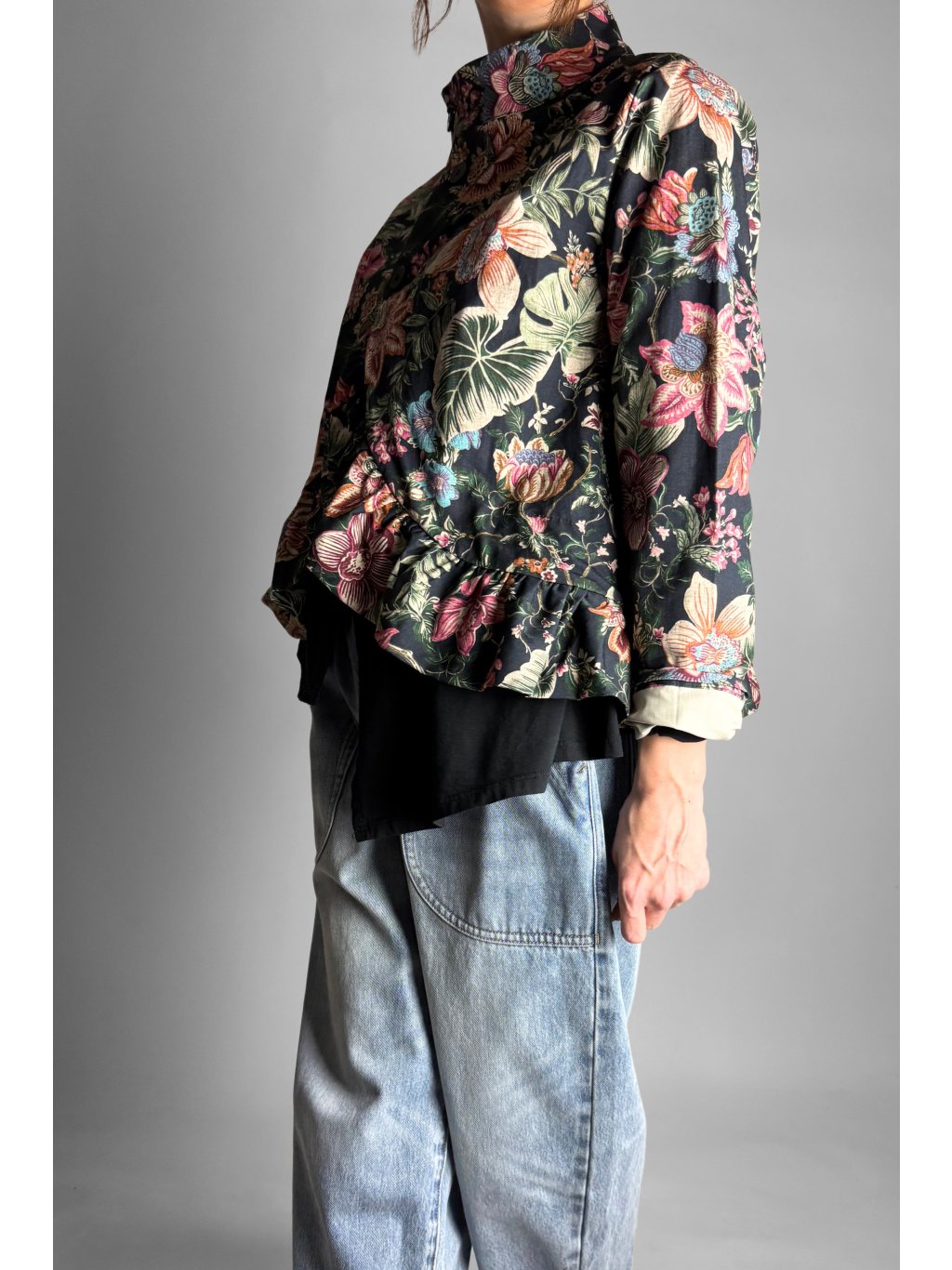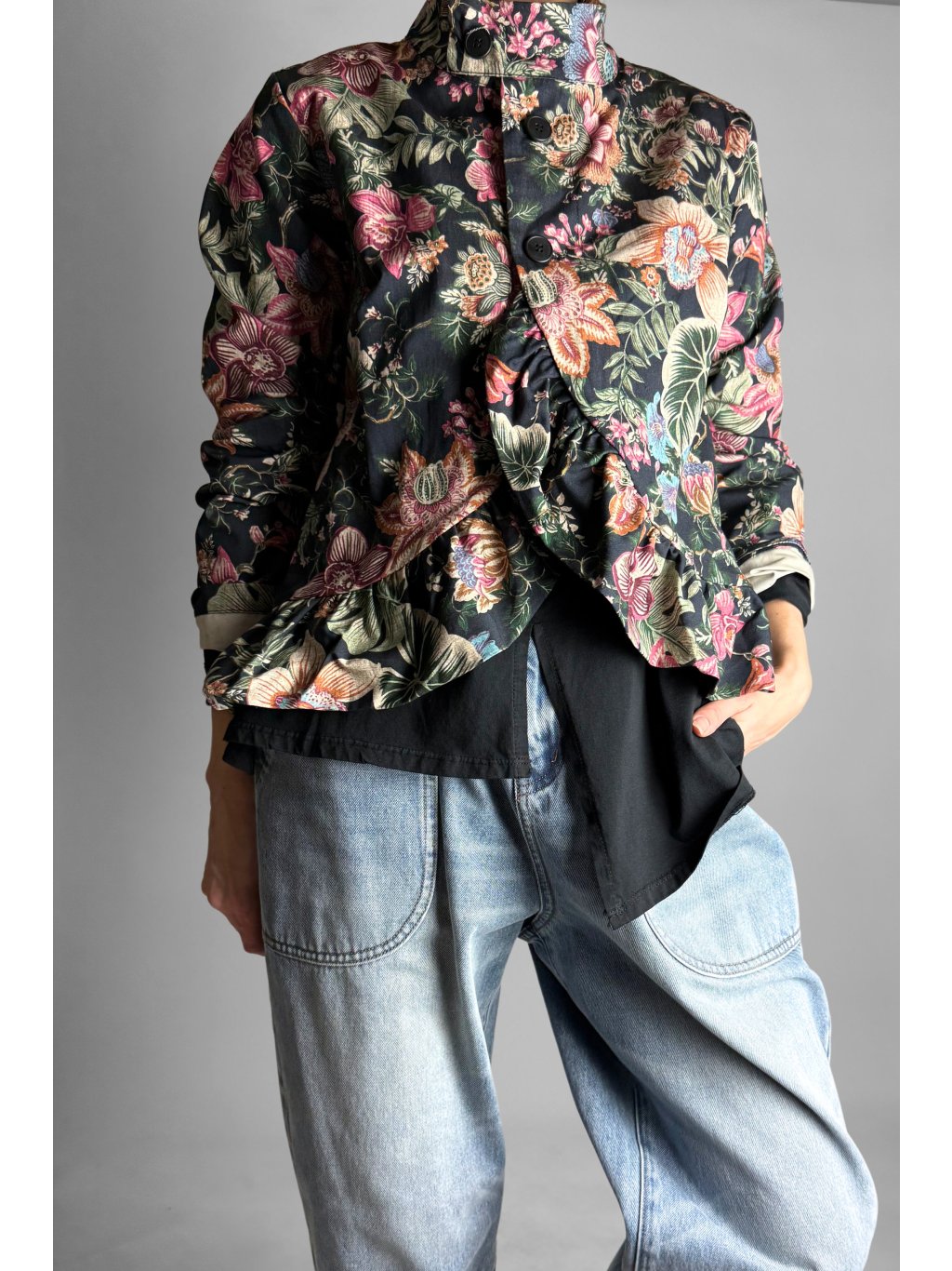 Lehká květovaná bunda z pevného, velmi příjemného plátěného materiálu. Díky 100% bavlně je bunda prodyšná, komfortní a ideální pro přechodové období.