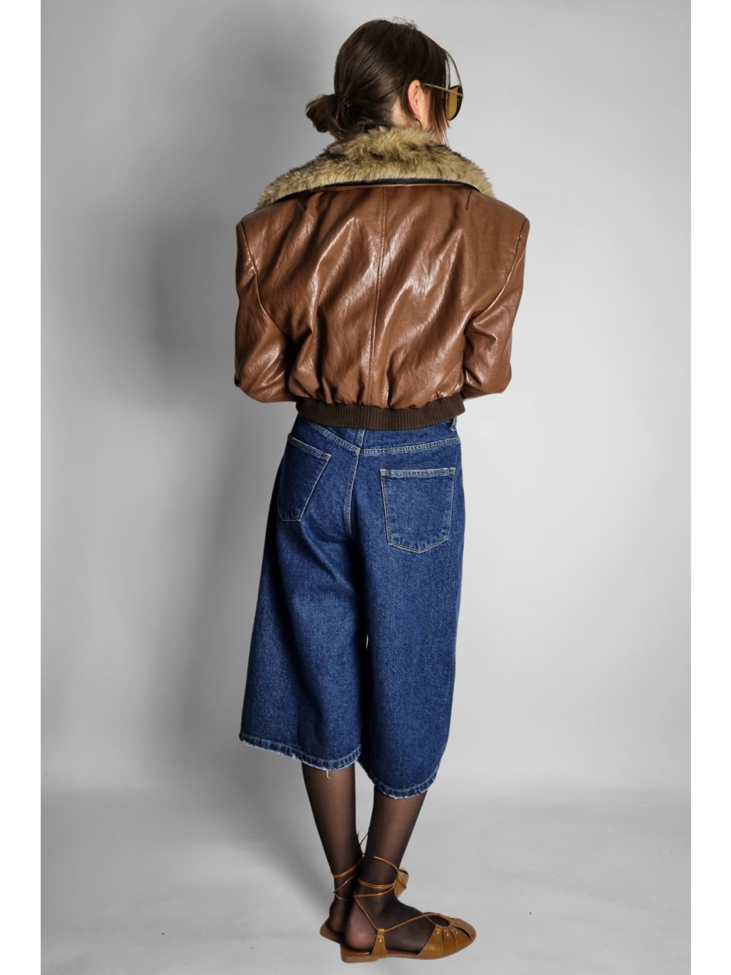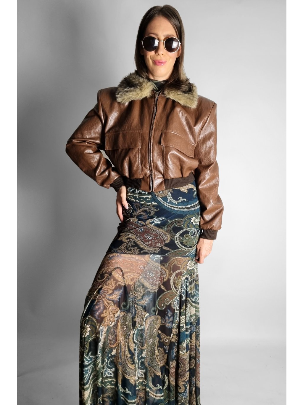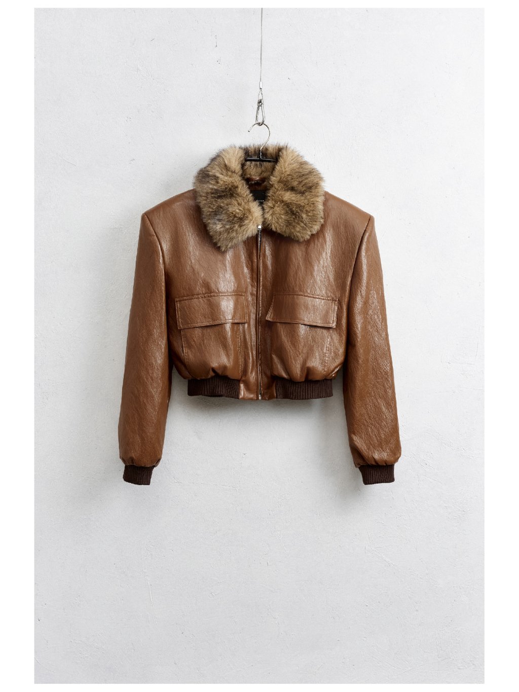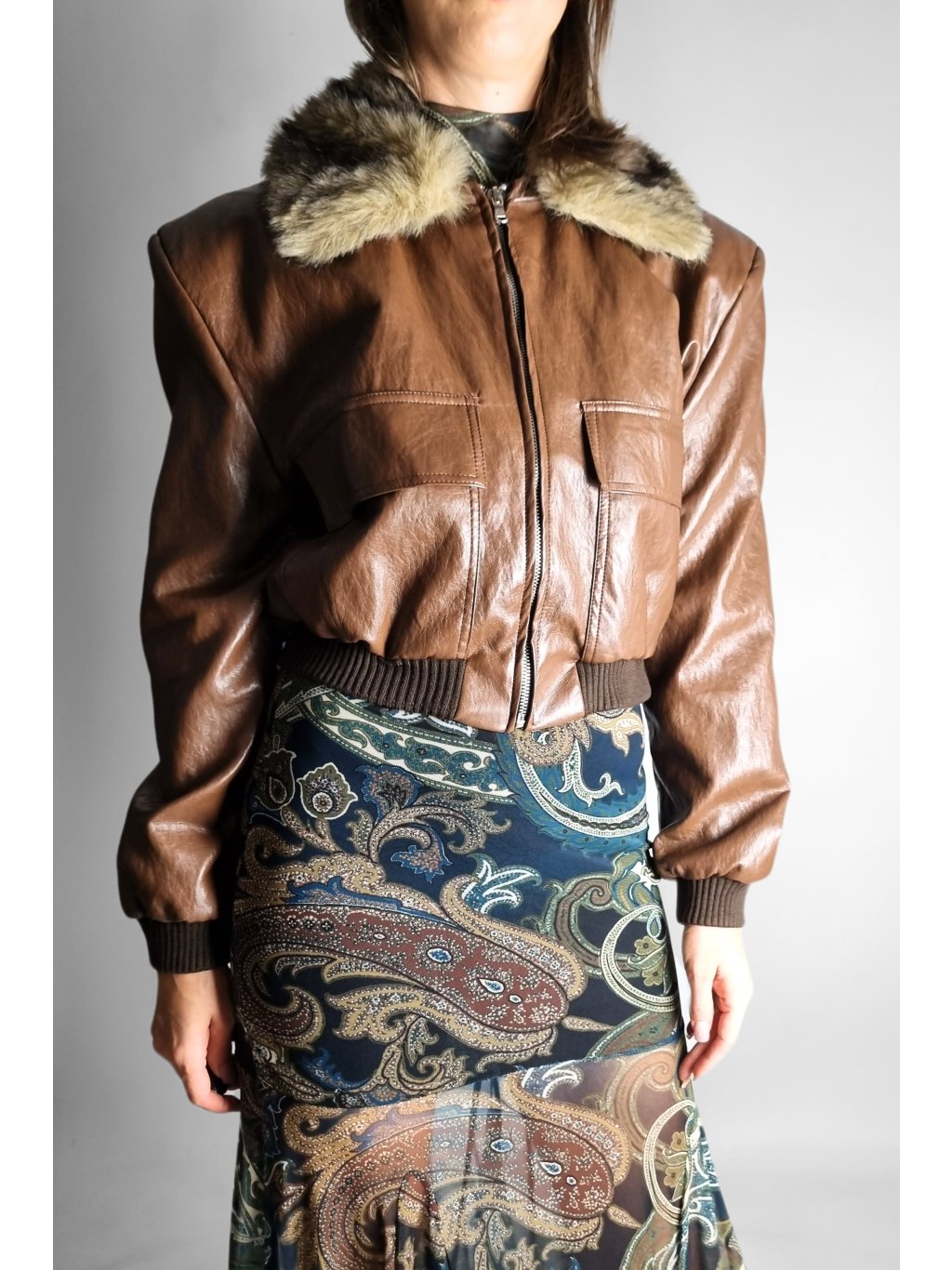 Bomber bunda z umělé kůže s odnímatelnou kožešinou a podšívkou