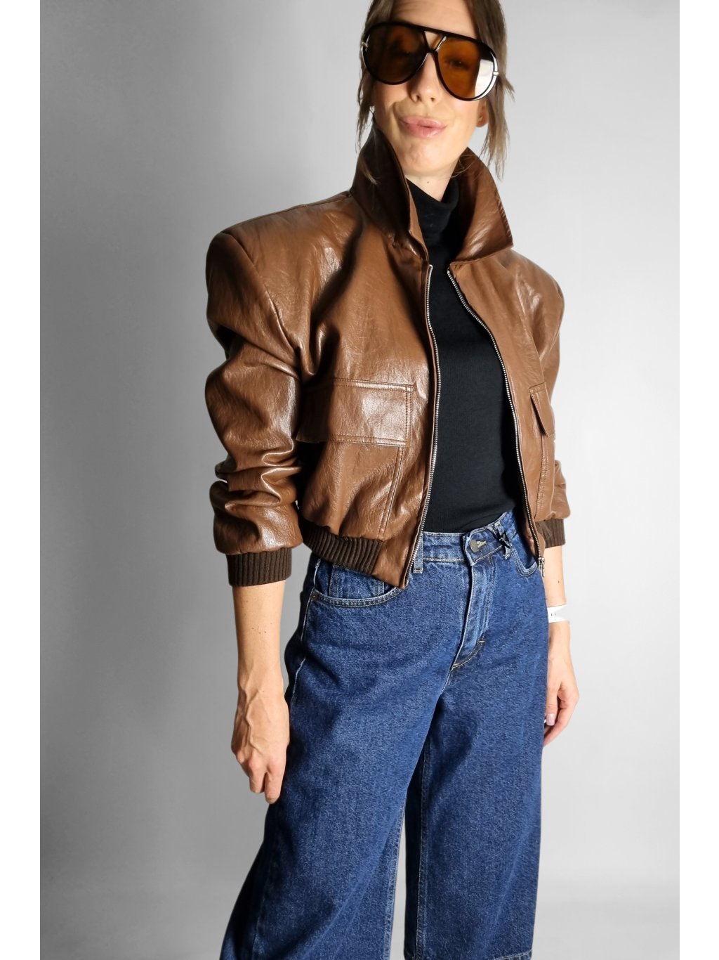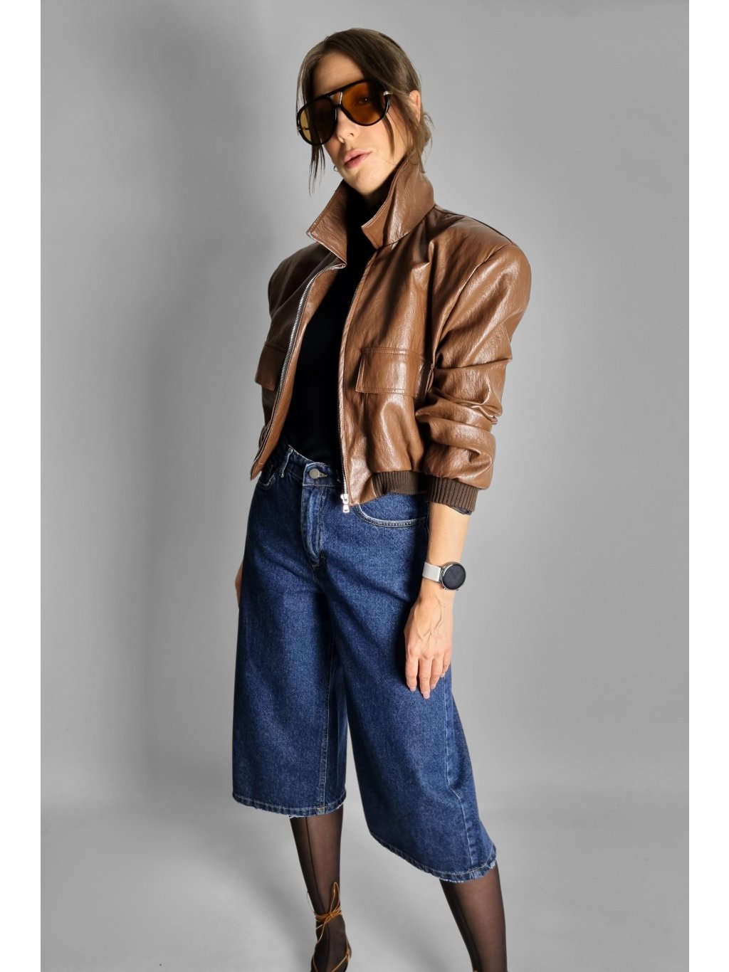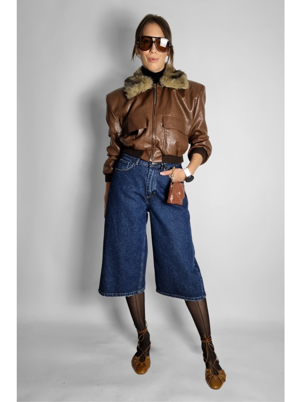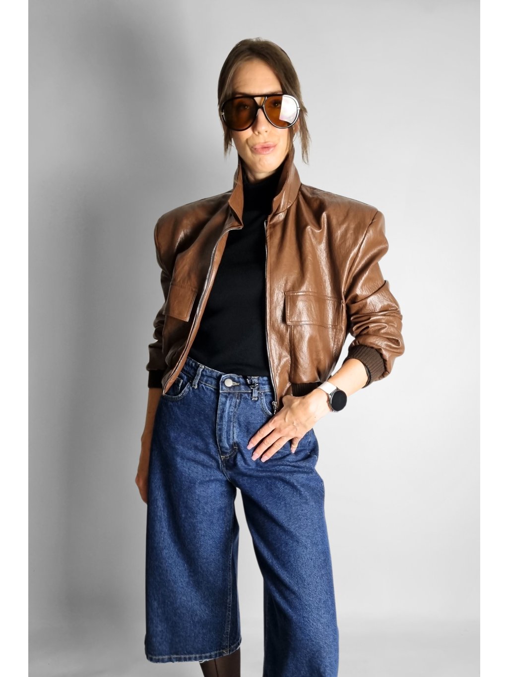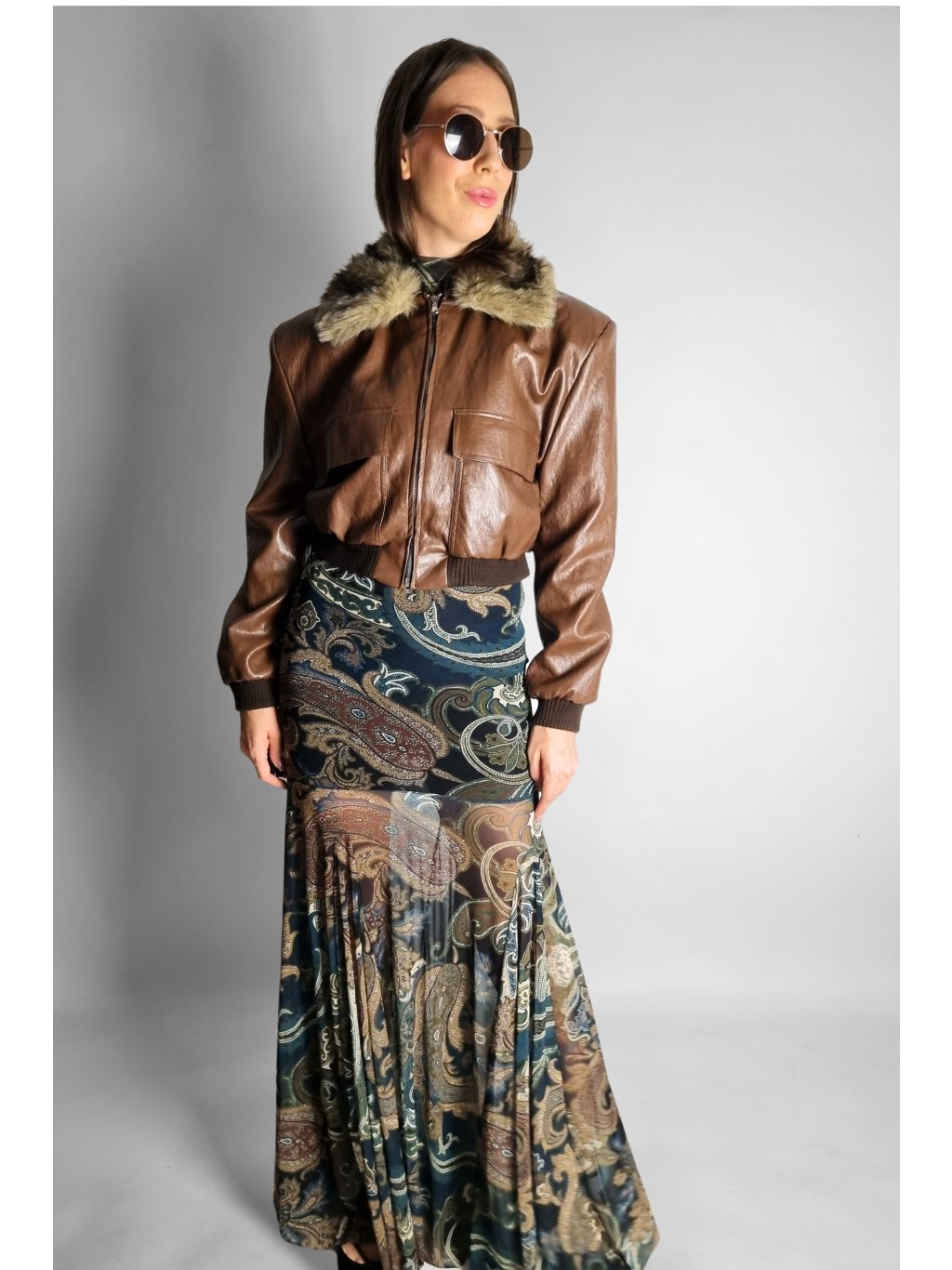 Bomber bunda z umělé kůže s odnímatelnou kožešinou a podšívkou
