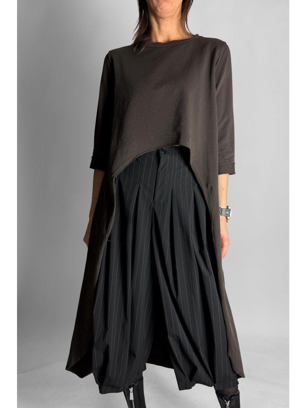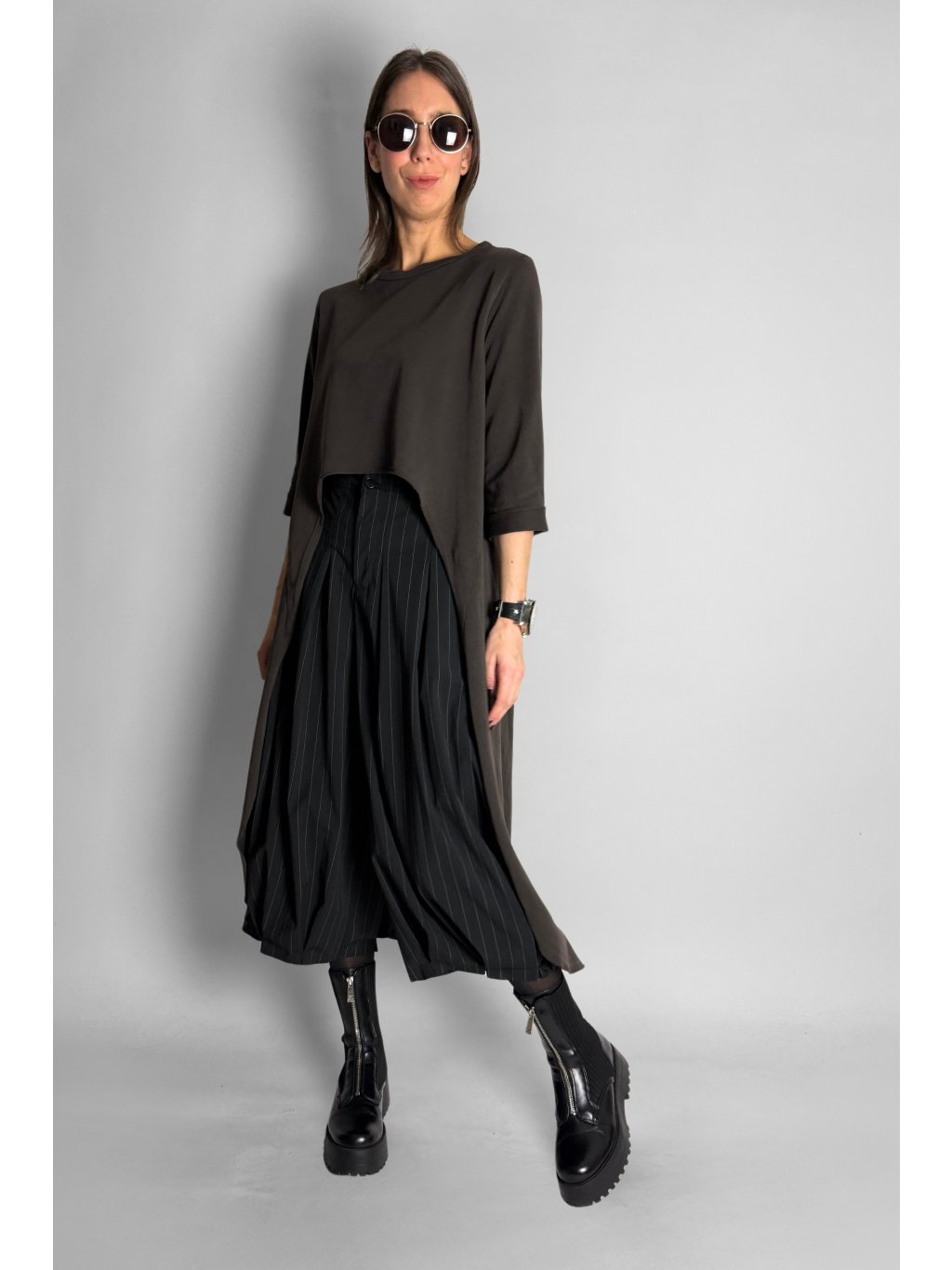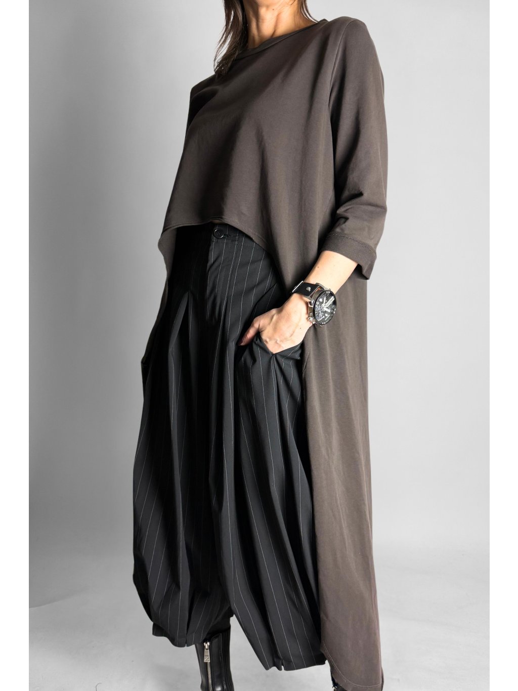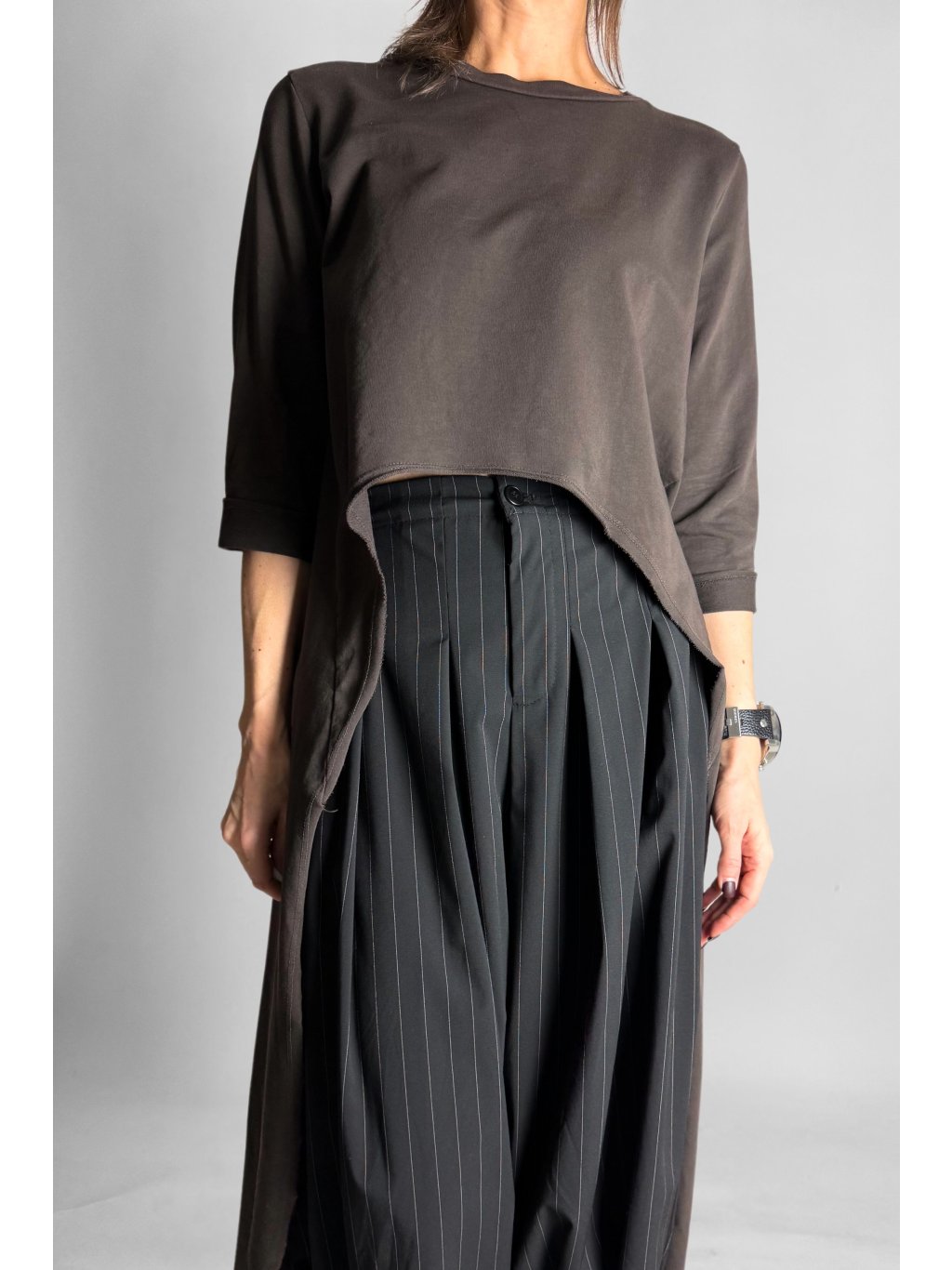 Dlouhý Top | Halenka se zkrácenou přední částí Dark Brown