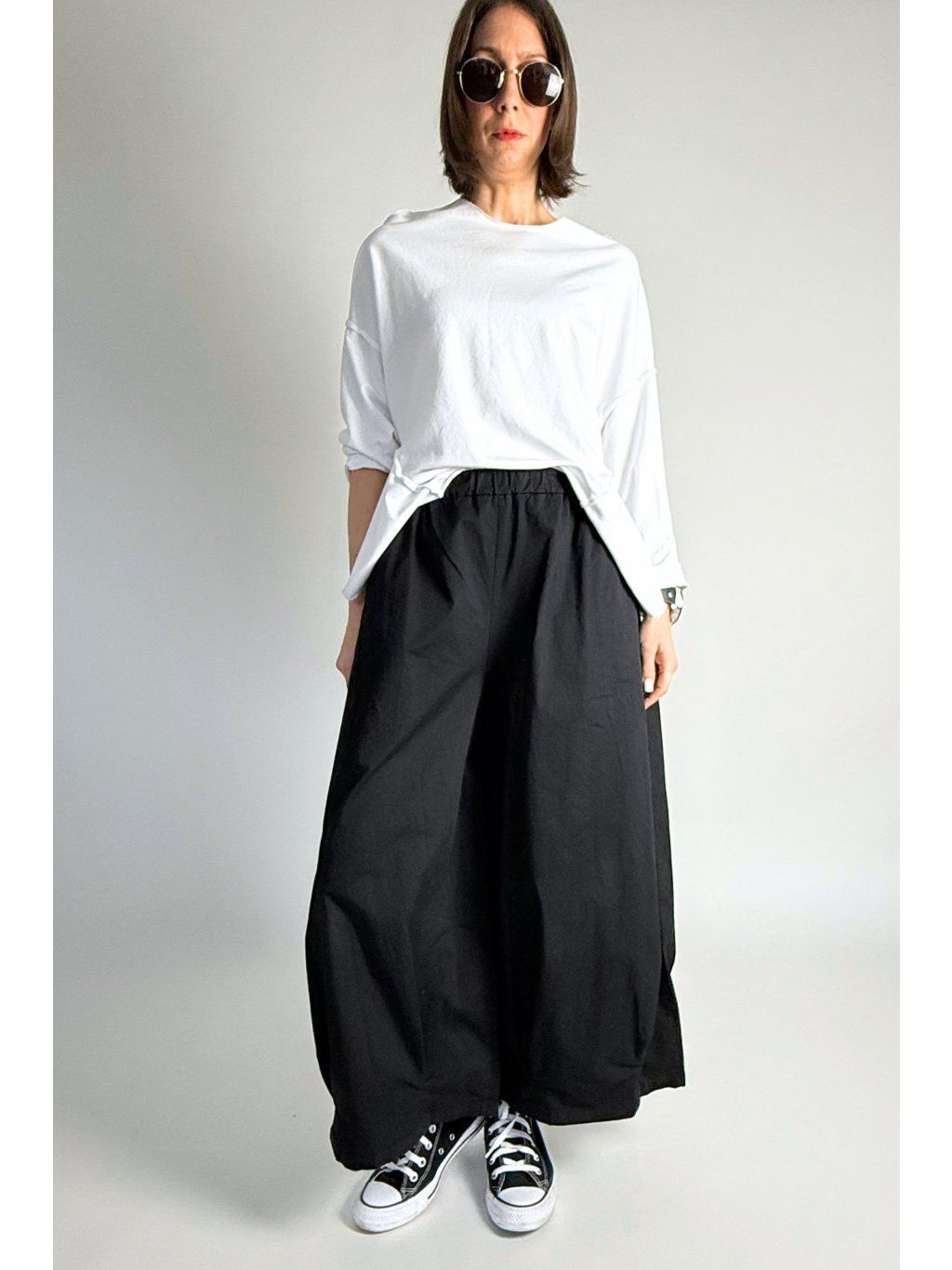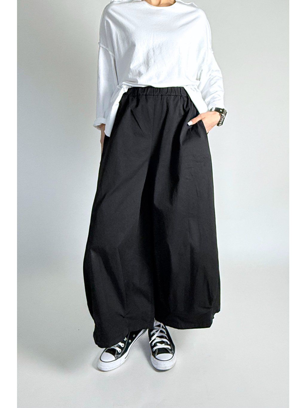 Kalhoty Cotton Folded Detail Black