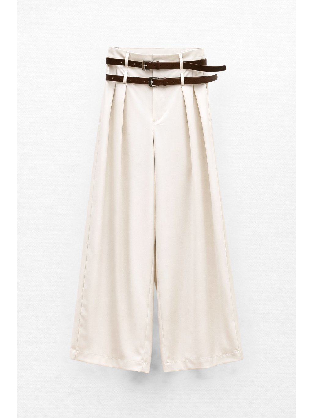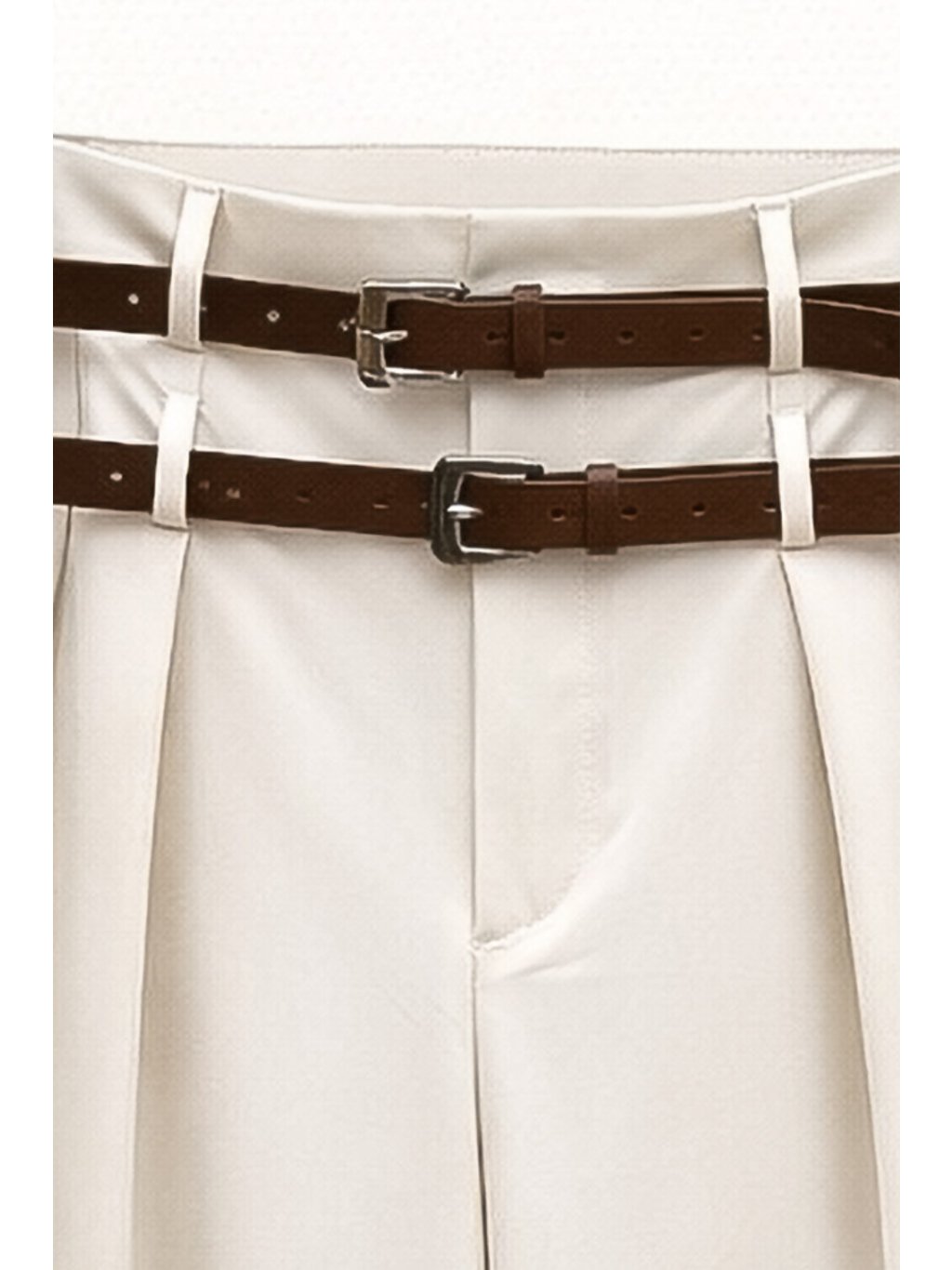 Elegantní kalhoty s dvojím dekorativním páskem s kovovými přezkami v chromové barvě