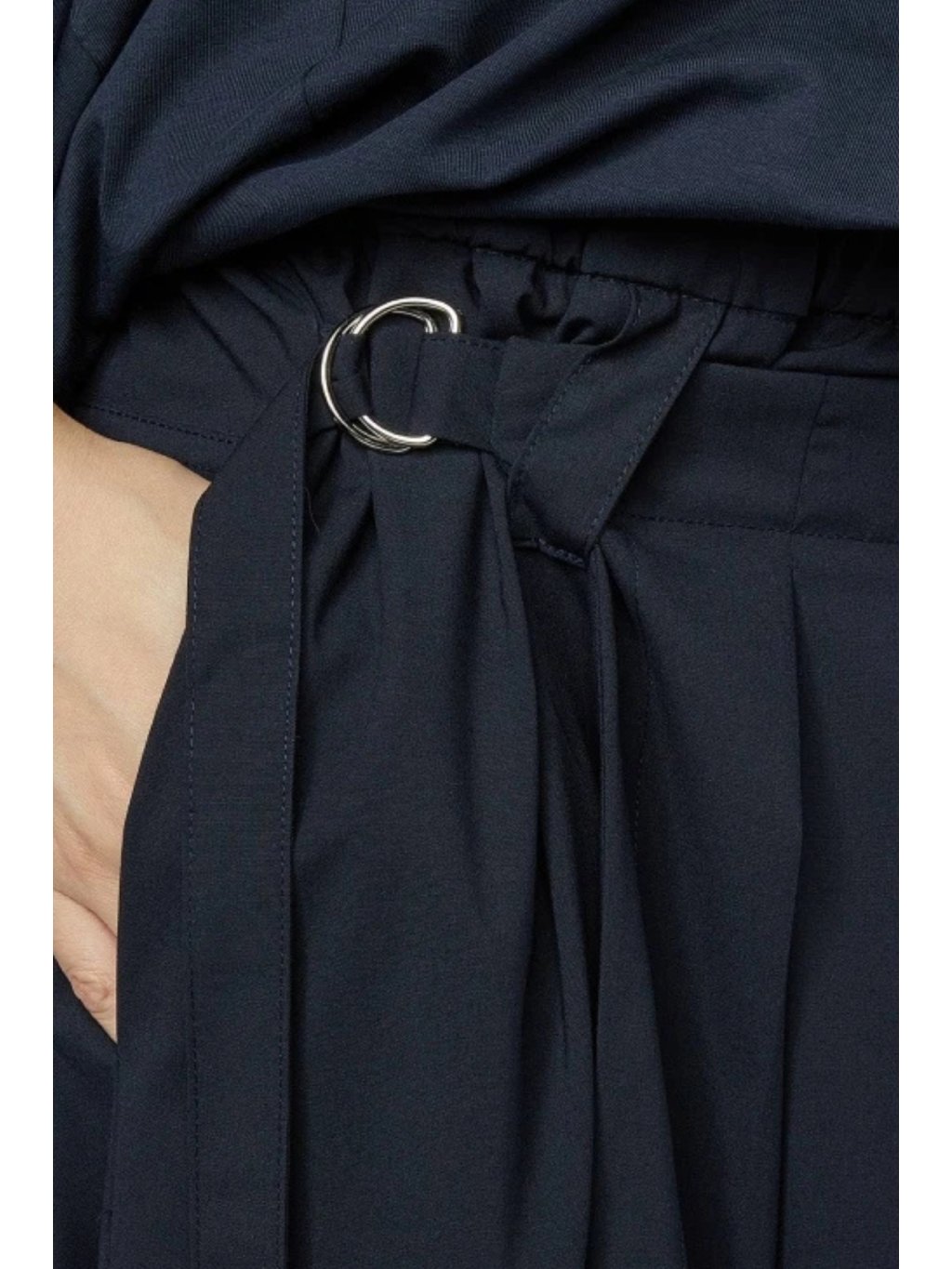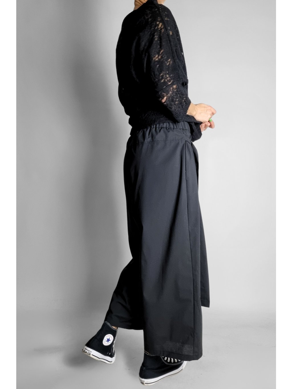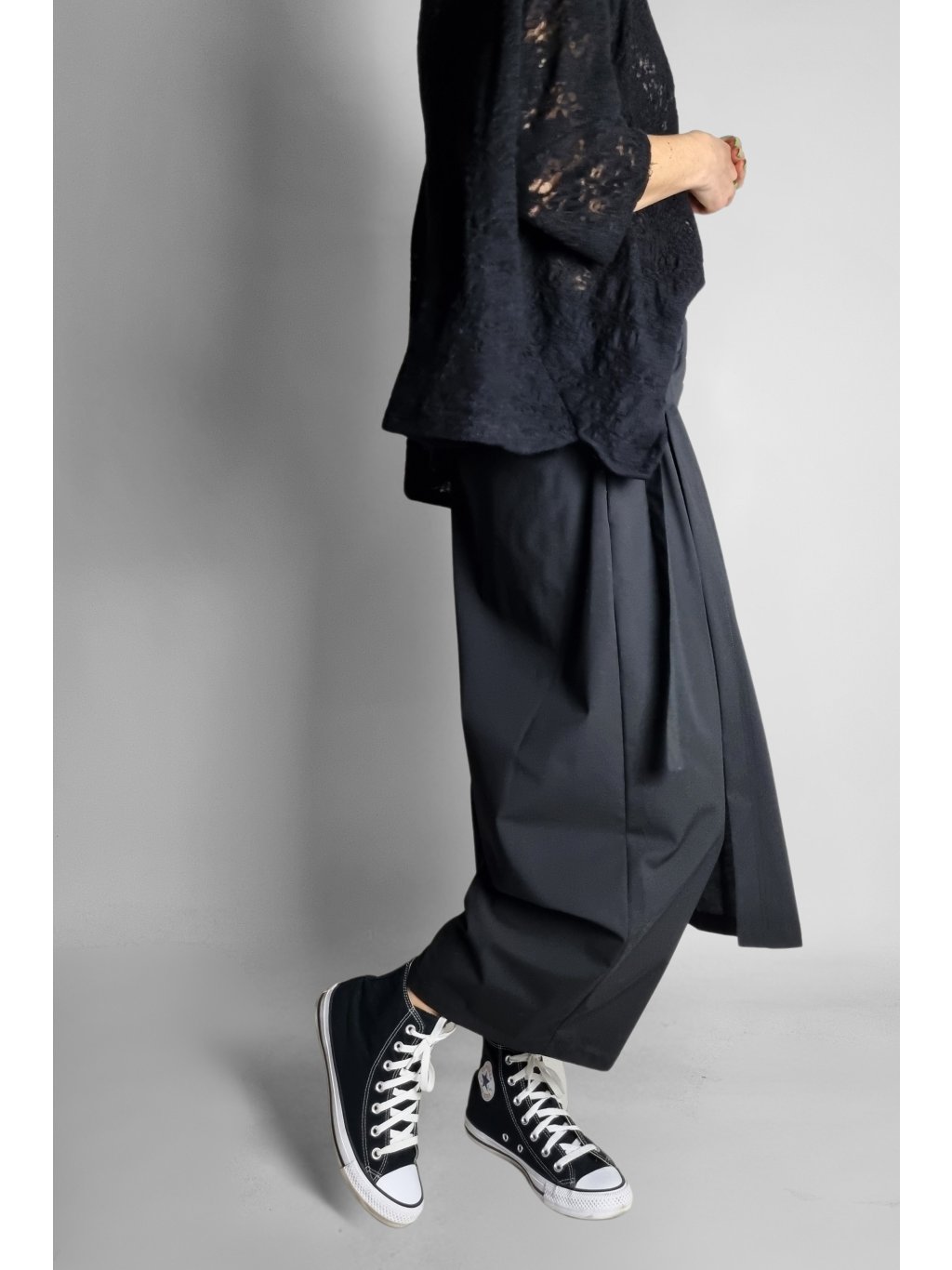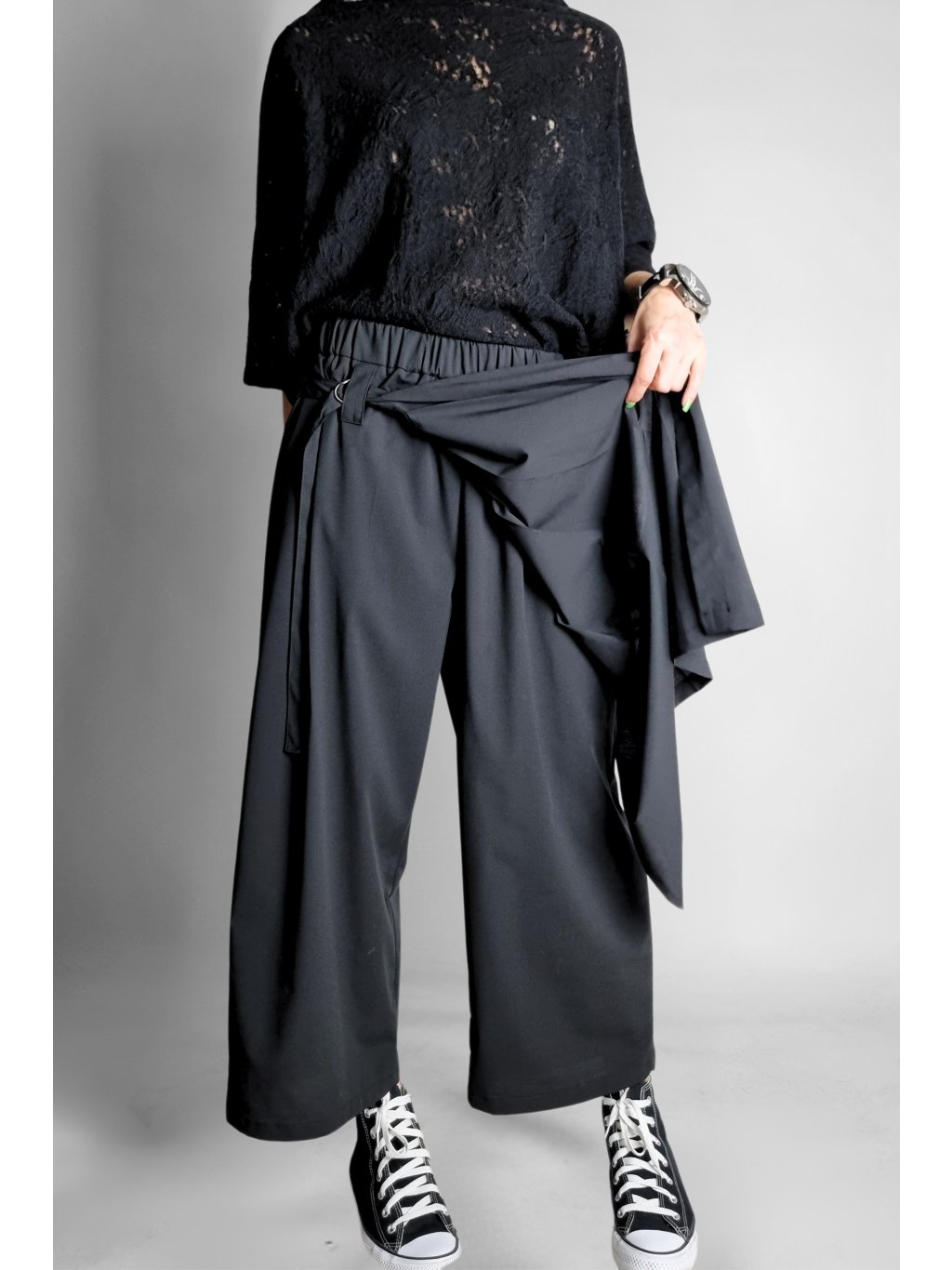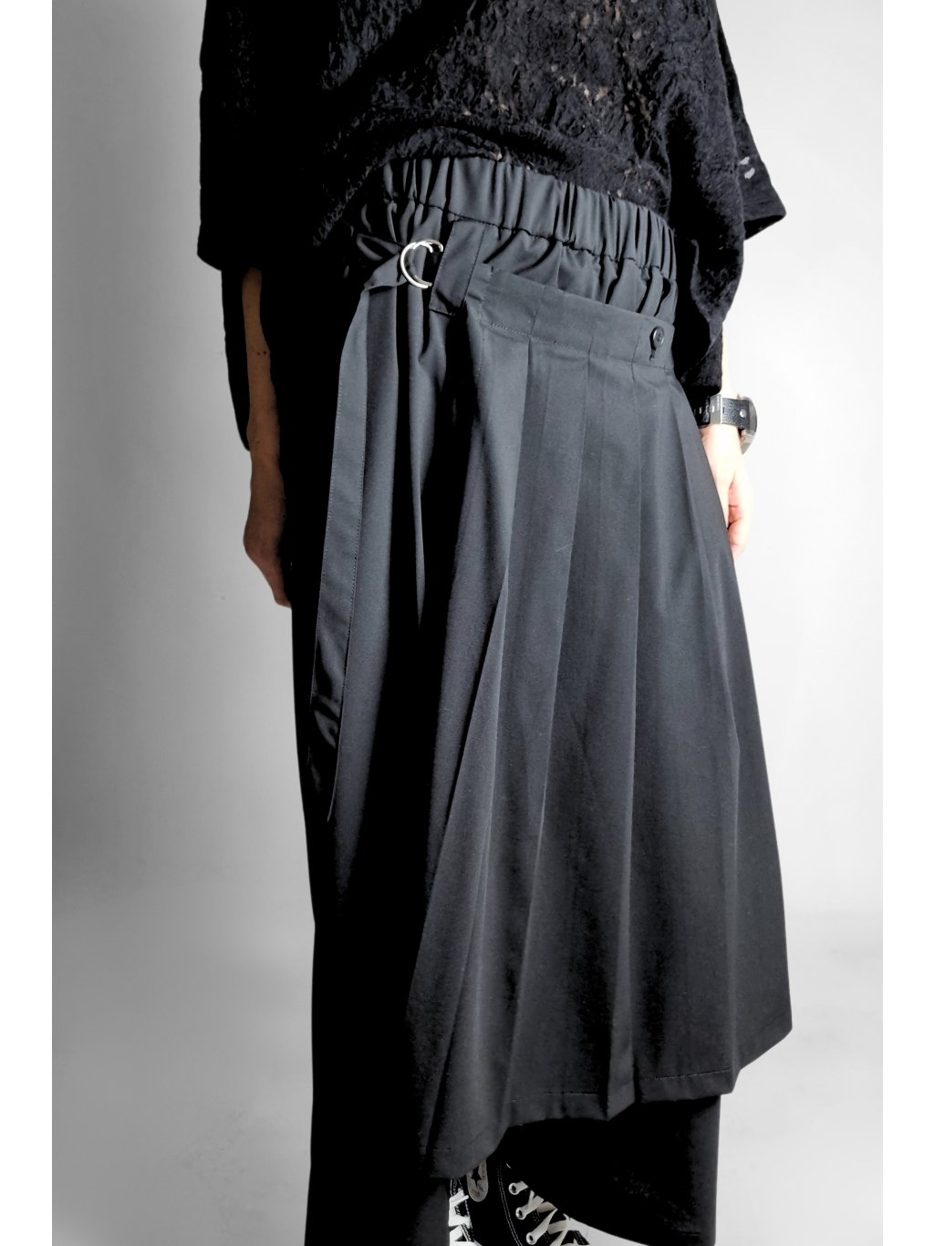 Plisovaný přední panel pro efekt sukně kalhot, odnímatelný dle potřeby pro kalhoty, zapínání na dva knoflíky a pásek s přezkou