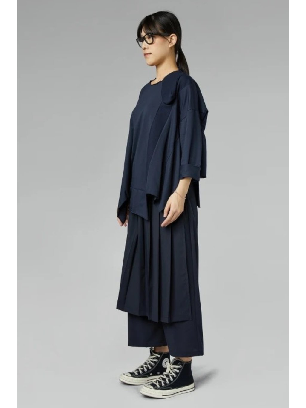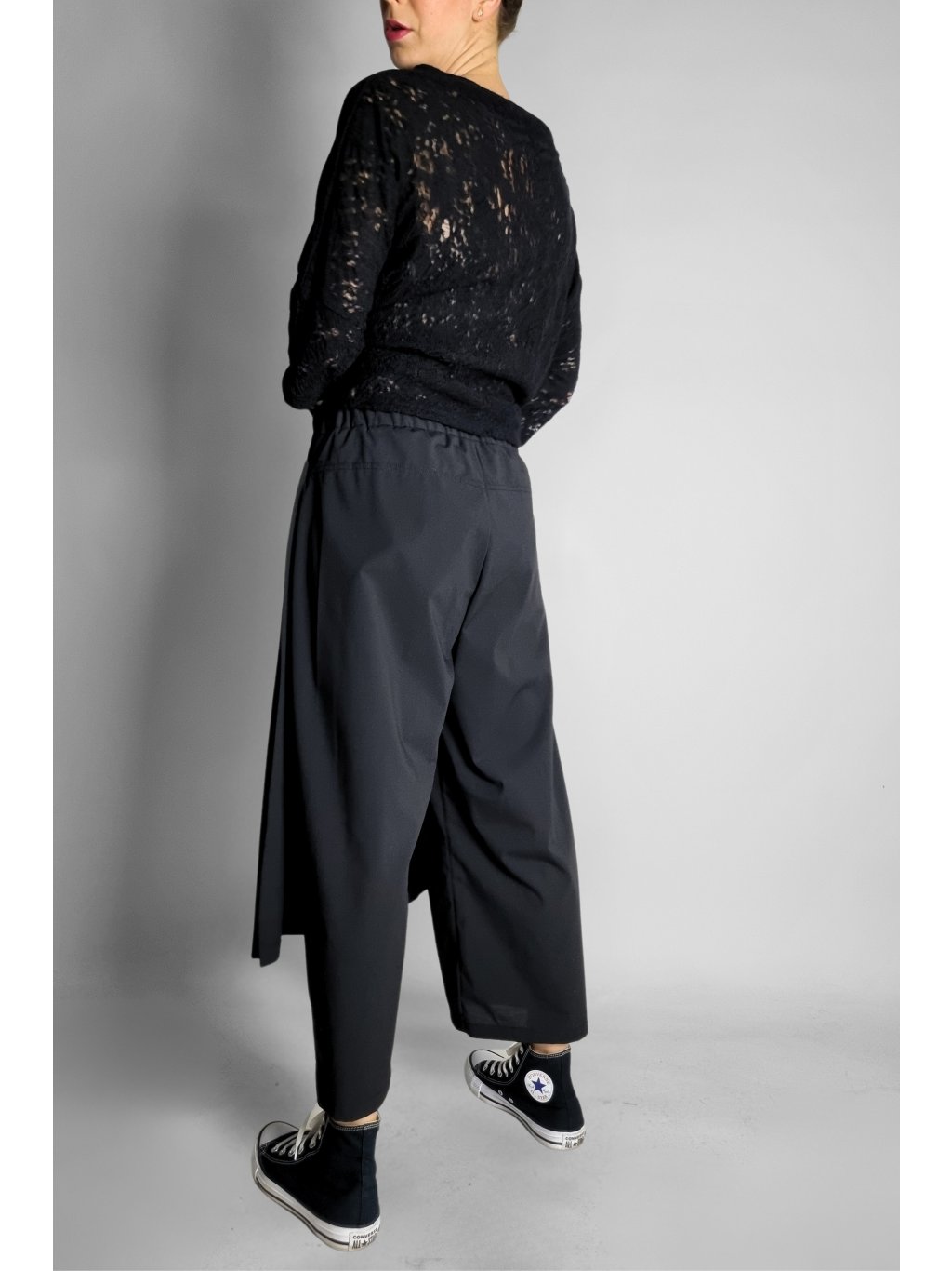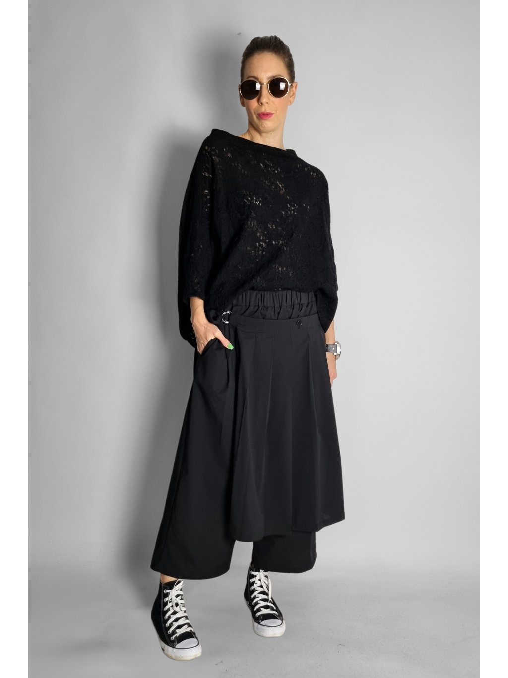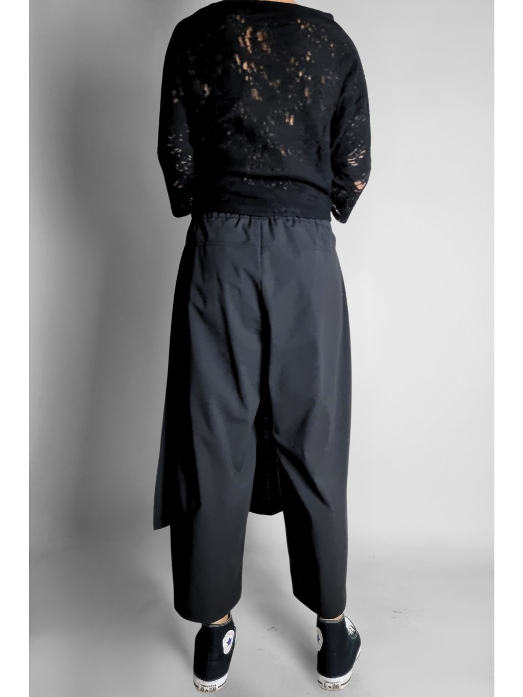 Plisovaný přední panel pro efekt sukně kalhot, odnímatelný dle potřeby pro kalhoty, zapínání na dva knoflíky a pásek s přezkou