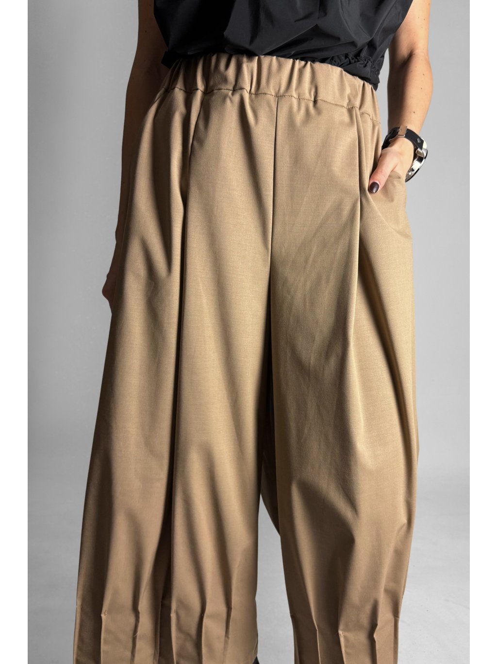 Dámské volné kalhoty s širokými nohavicemi zakončeny překlady