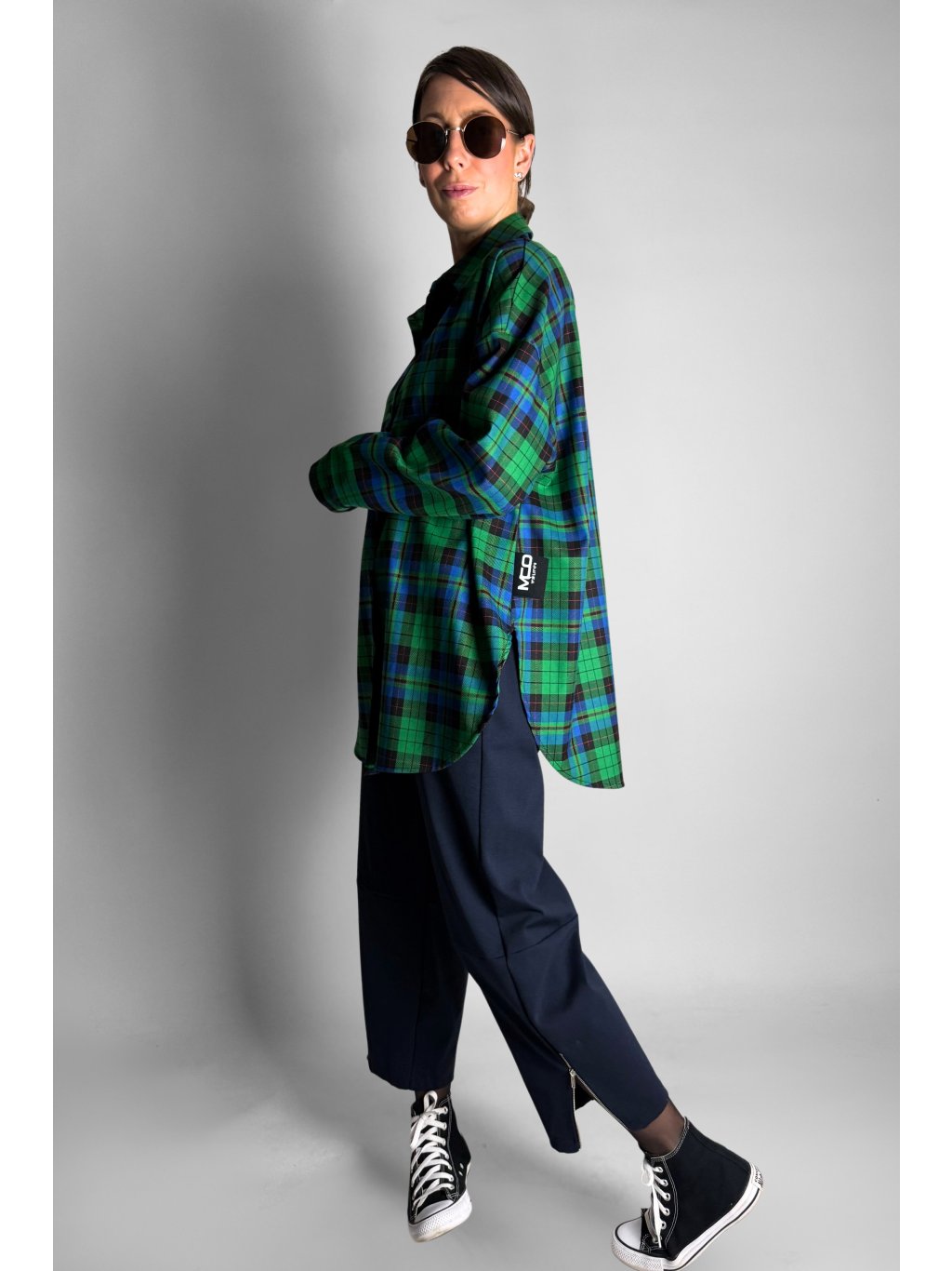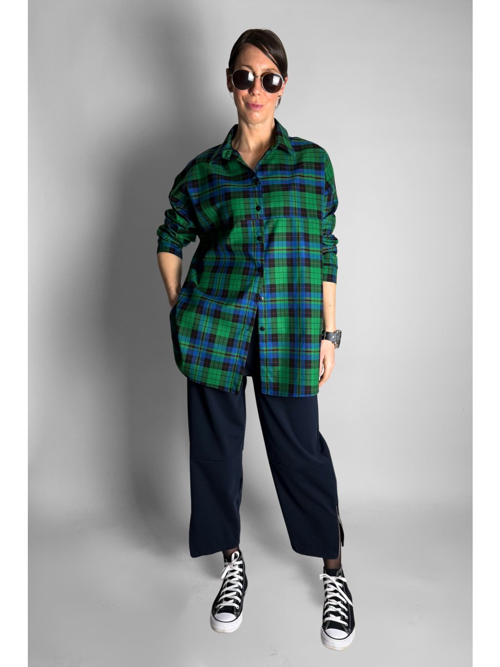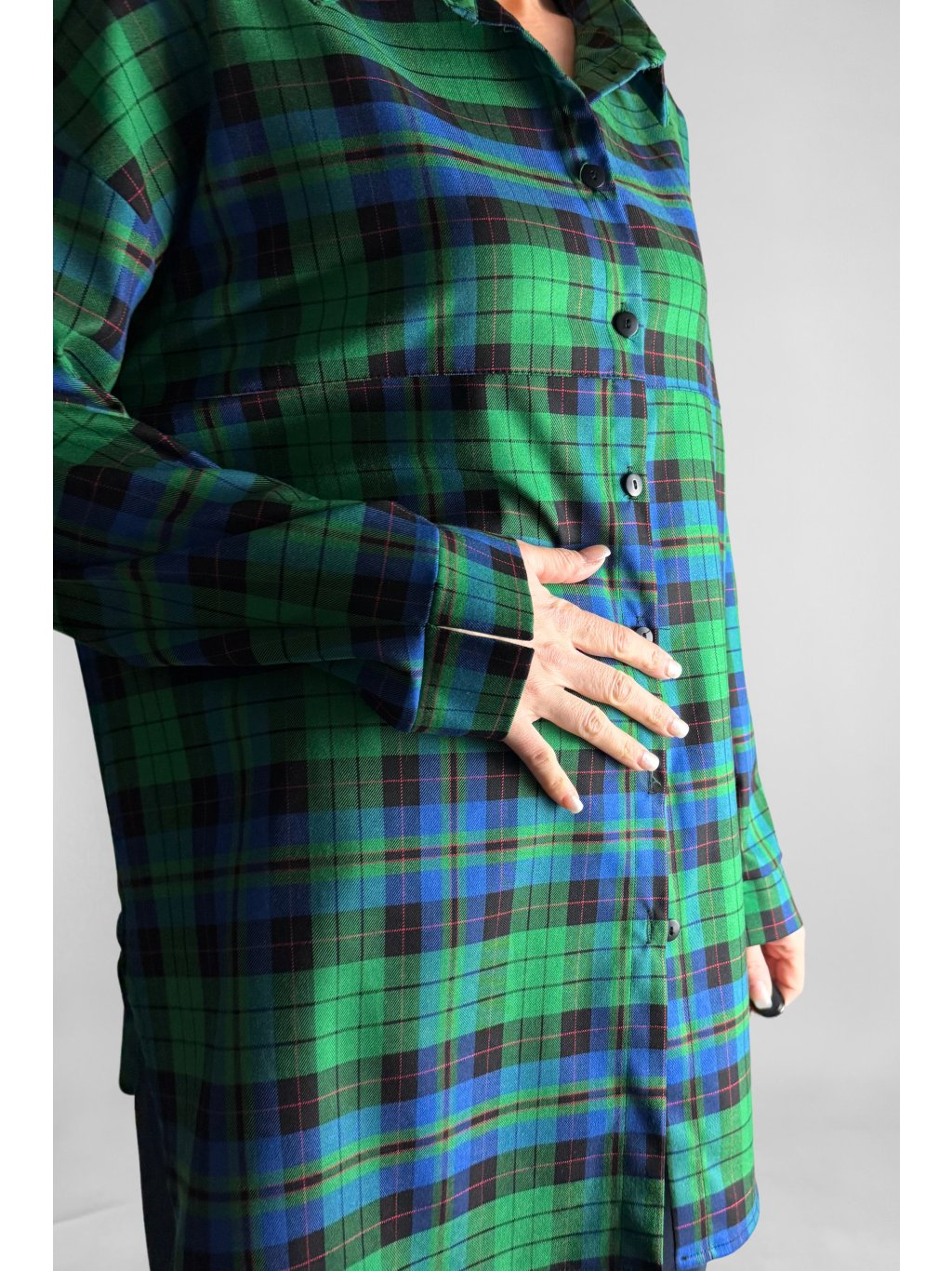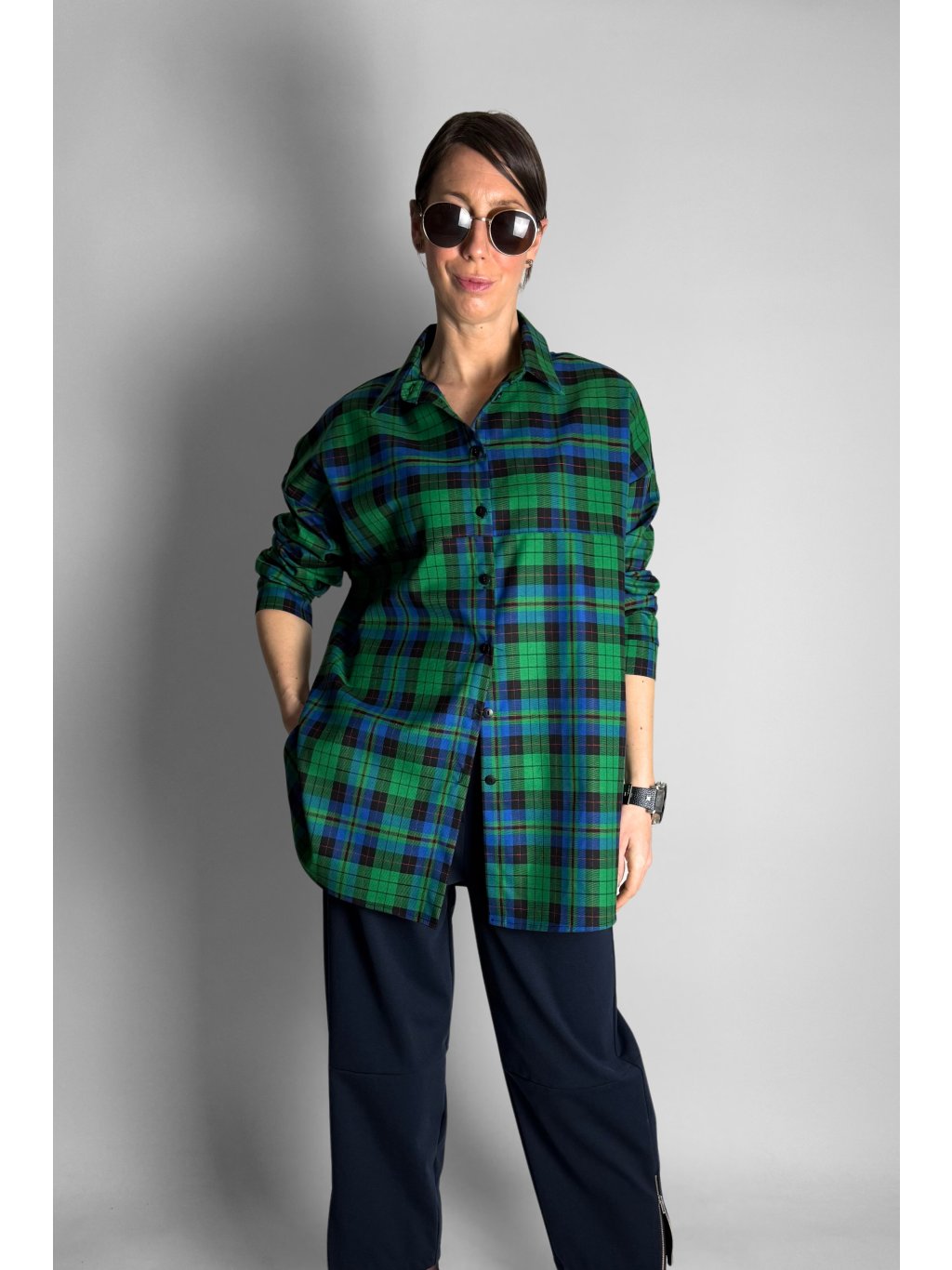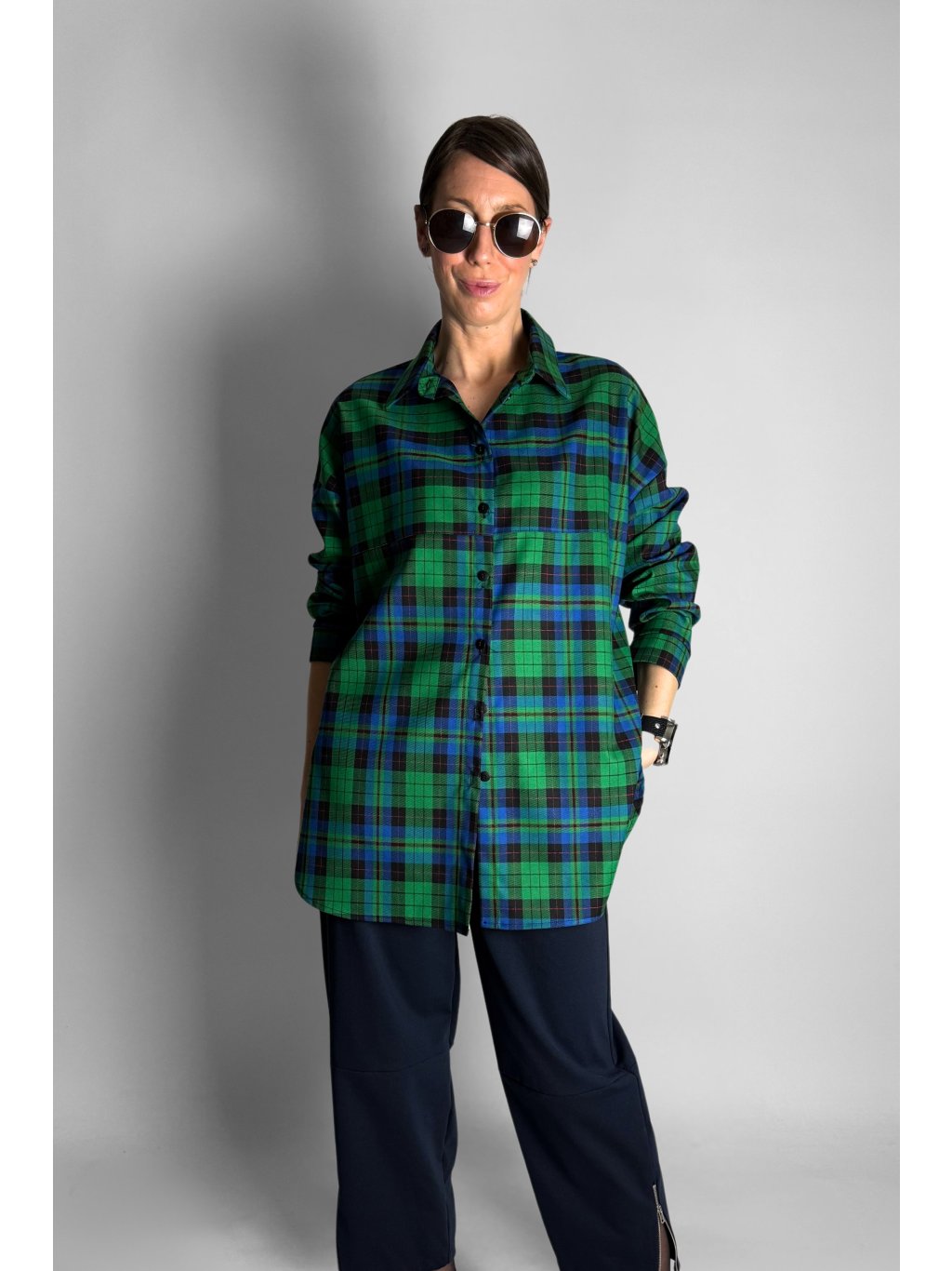 Stylová dámská košile v kombinaci zelené a modré s károvaným vzorem.