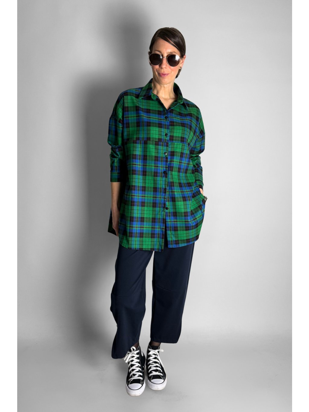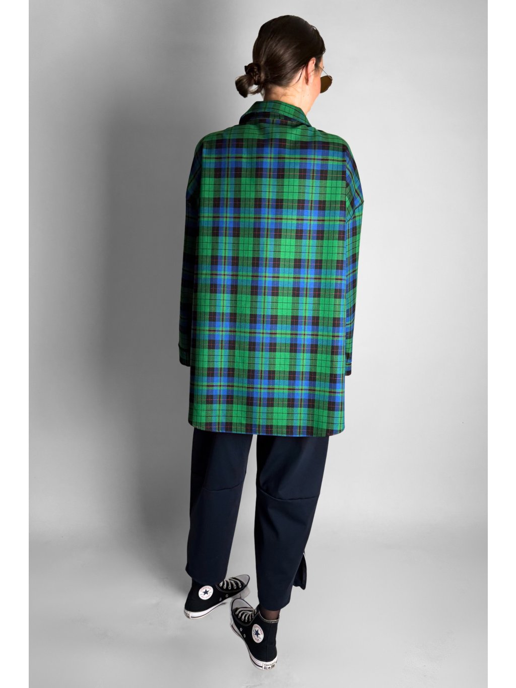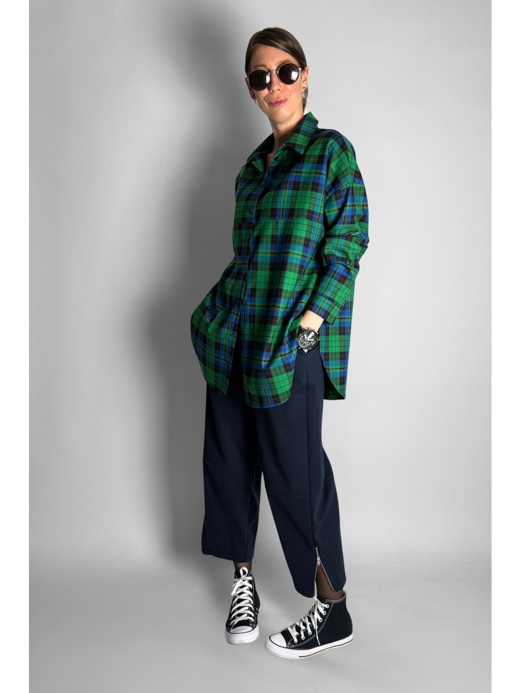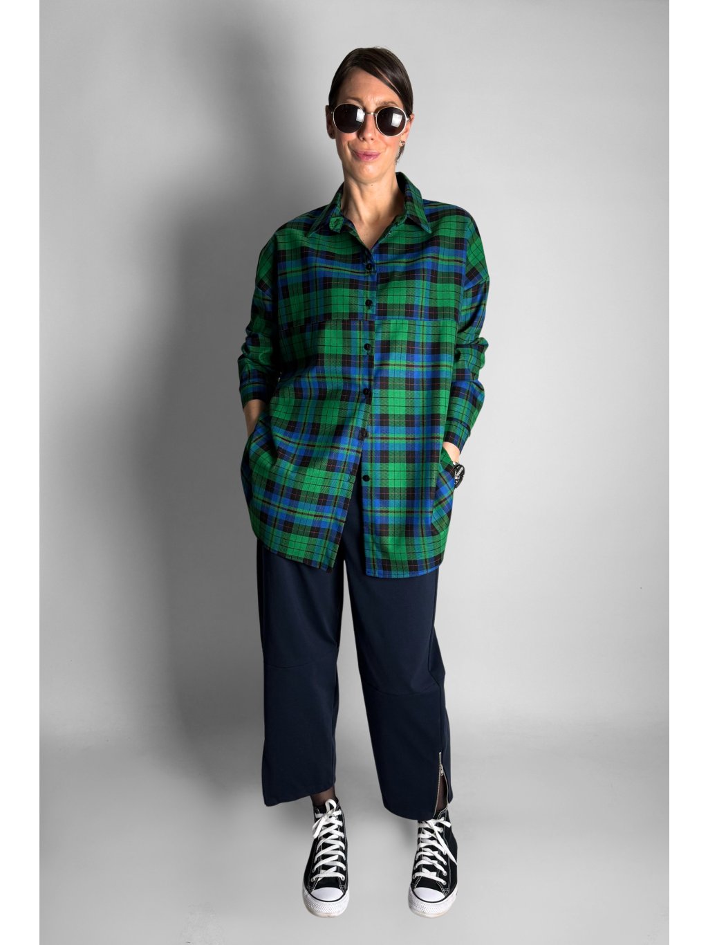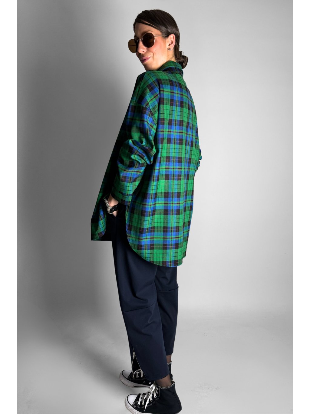 Stylová dámská košile v kombinaci zelené a modré s károvaným vzorem.