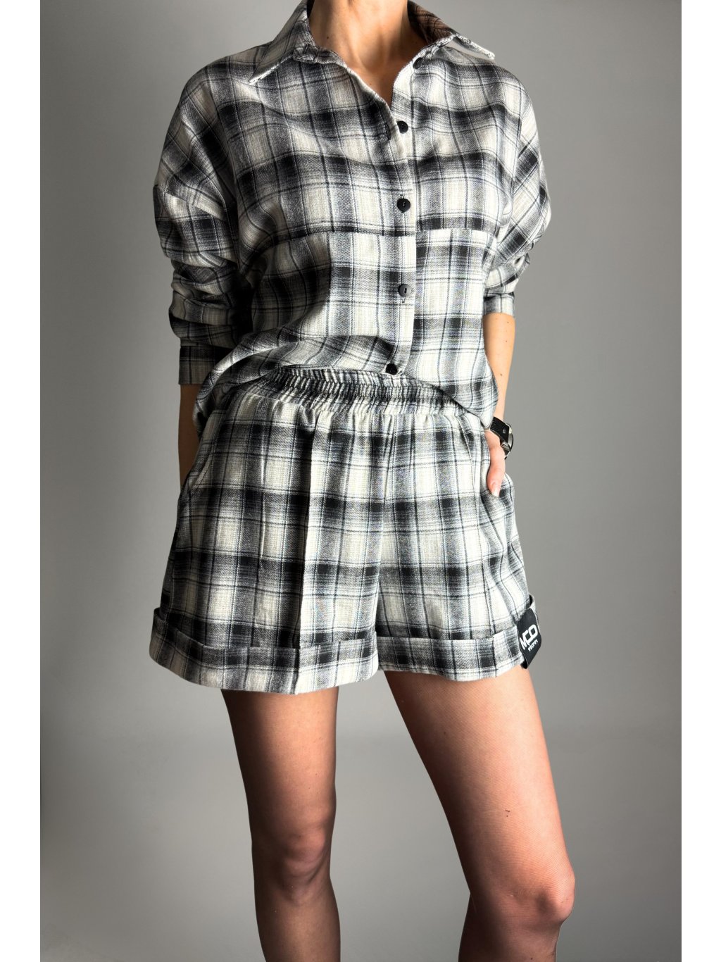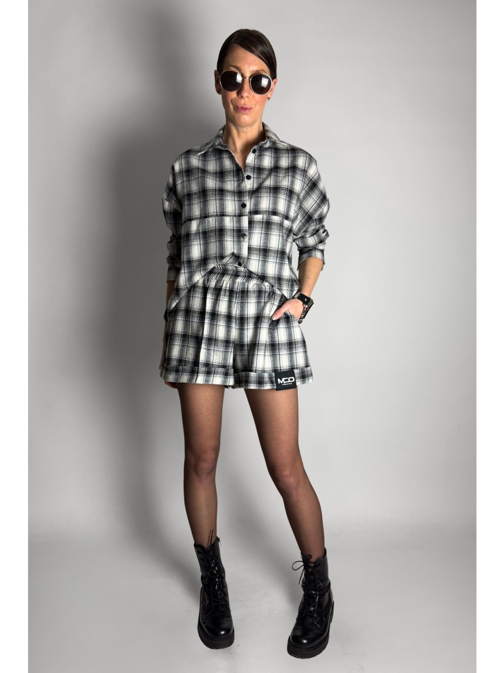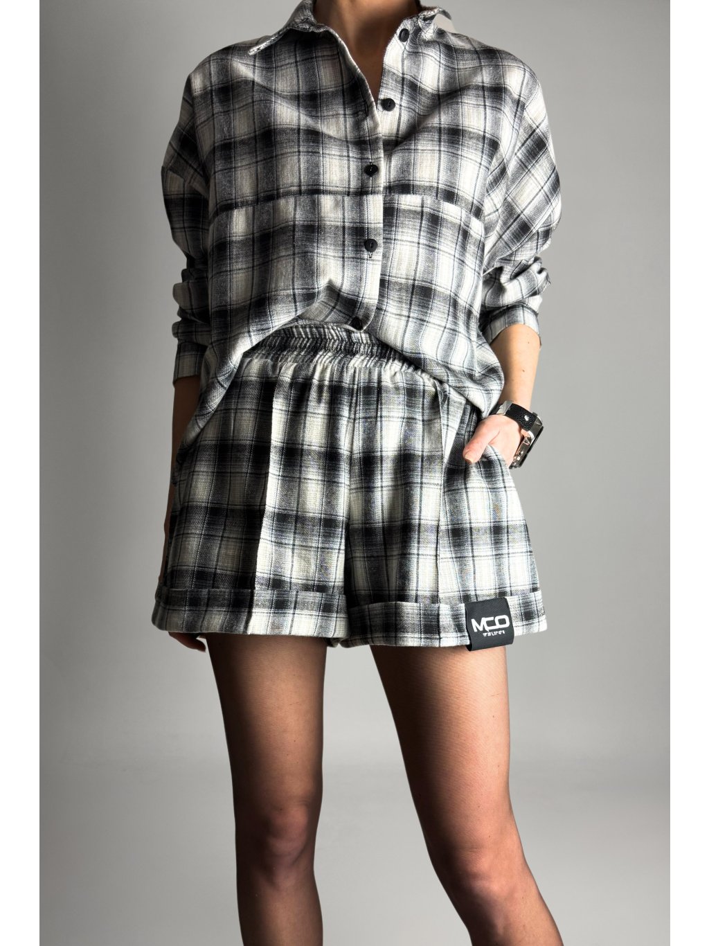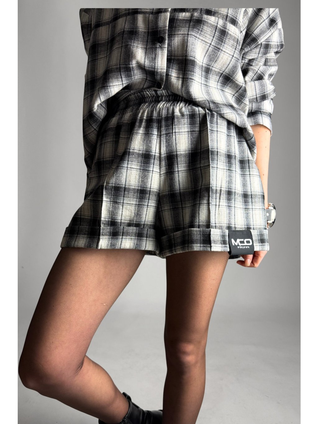 Kraťasy mají elastický pas pro pohodlné přizpůsobení postavě, boční kapsy šité do střihu a drobný detail – logo Miss City Official na nohavici.