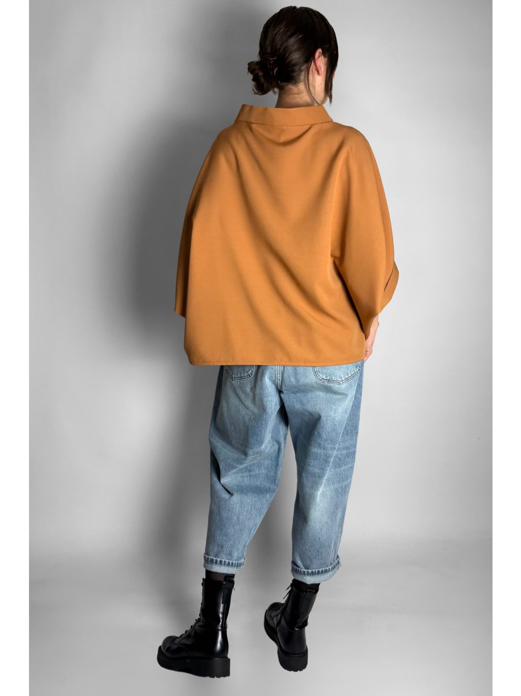 Výstřih a rukávy jsou zakončeny širokým lemováním