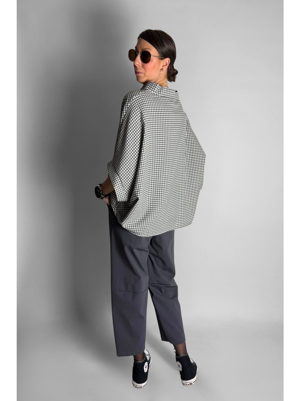 Lehká kimono halenka volného střihu s krátkými netopýřími rukávy, která je velmi příjemná na nošení. Materiál je jemný, na dotek připomíná tenký flanel, takže působí lehce hřejivě, ale zároveň zůstává vzdušný a pohodlný.