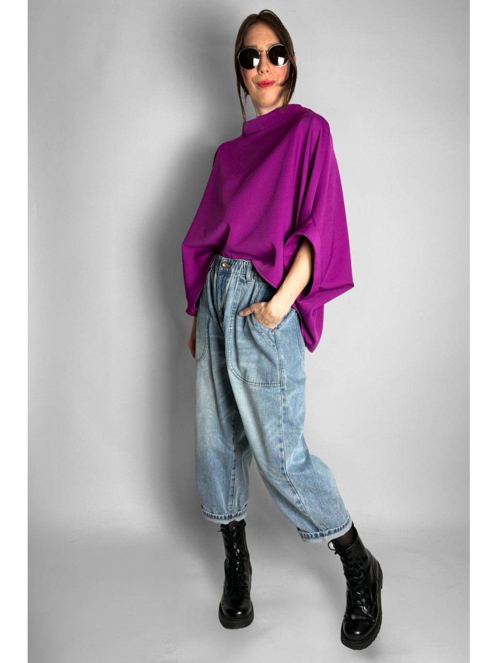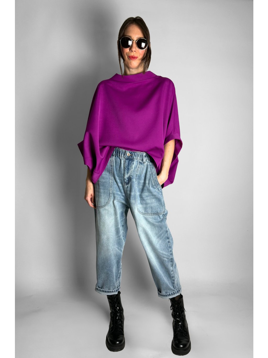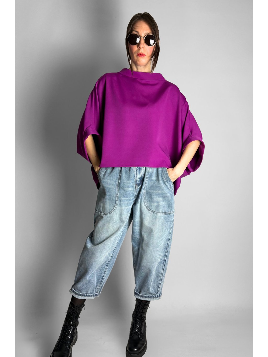 - Střih: Volný, široký, krátký