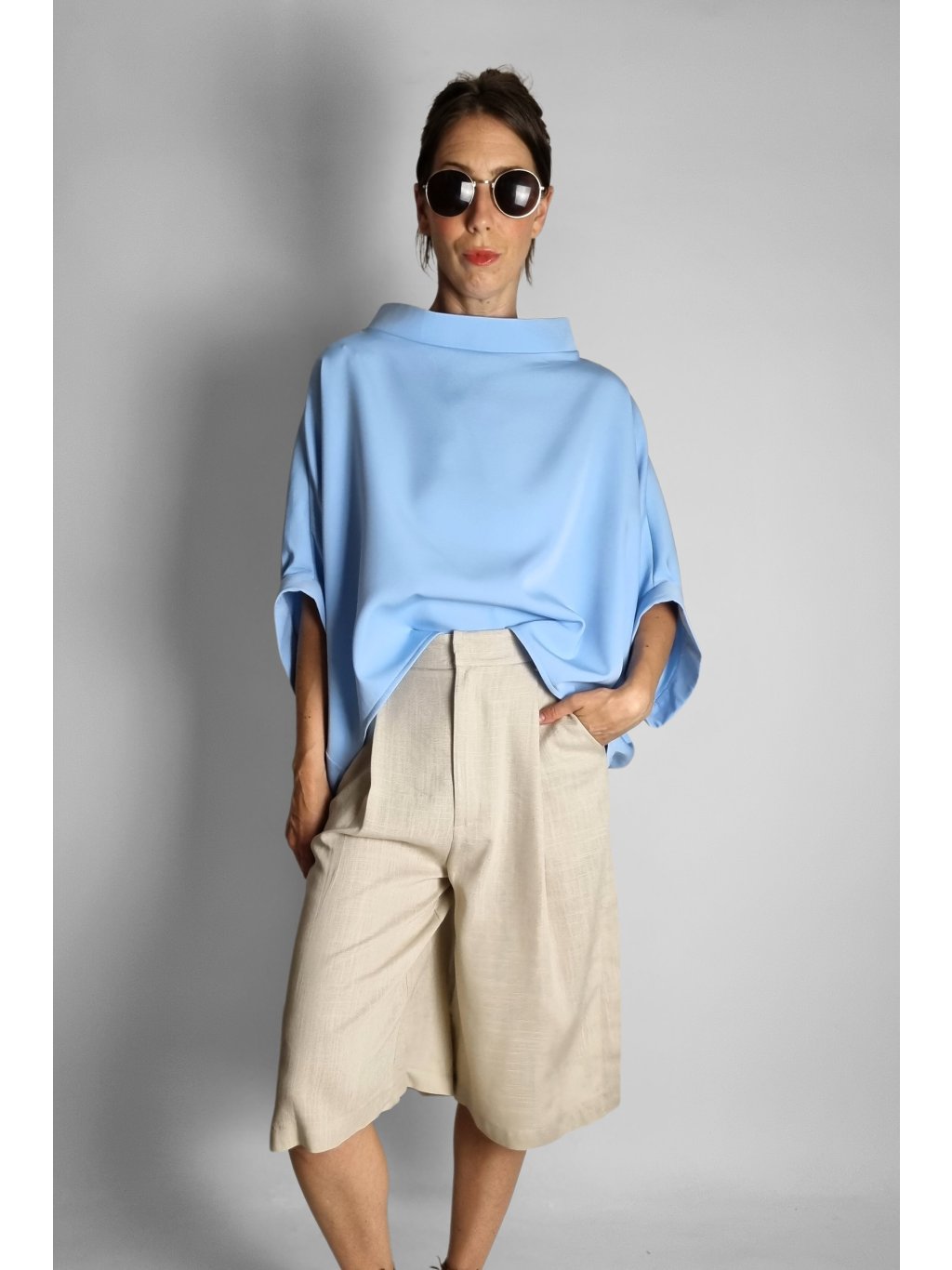 - Střih: Volný, široký, krátký