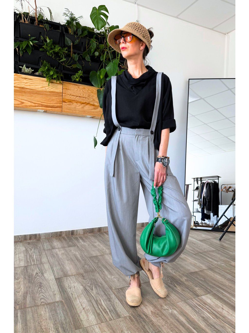 Stylový klobouk s velkým kšiltem, který poskytuje příjemný stín a ochranu před sluncem.