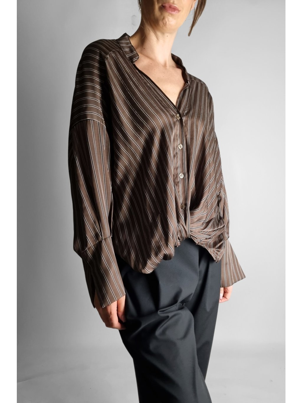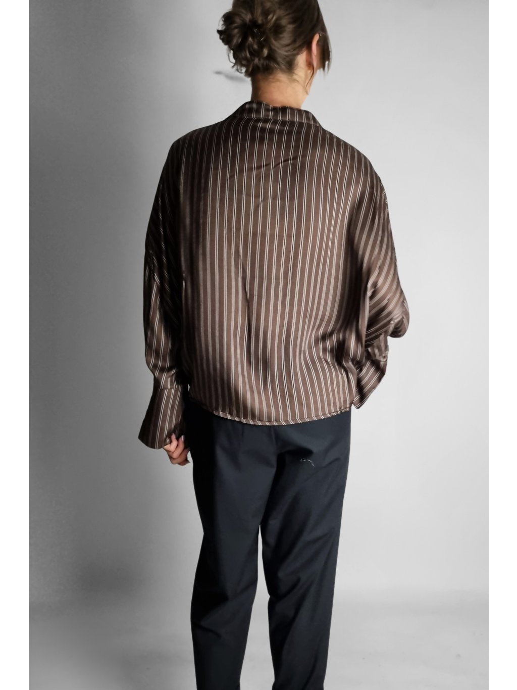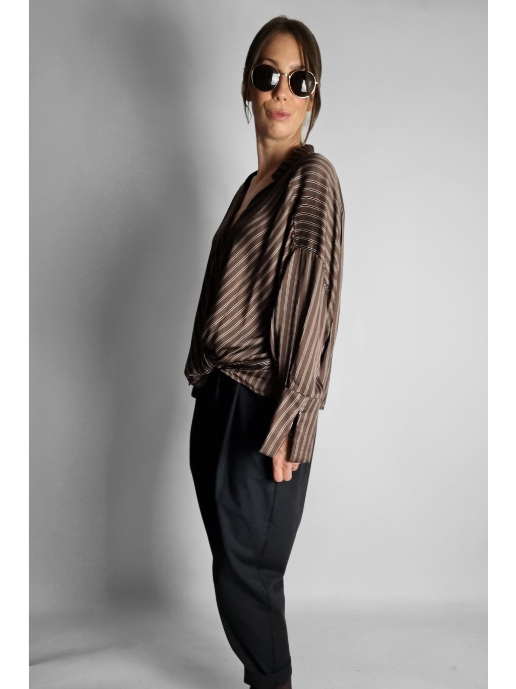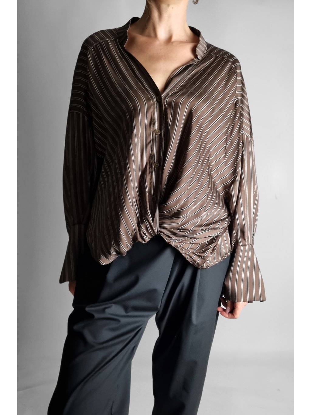 Košile Brown Stripe Wrap – Split Cuff