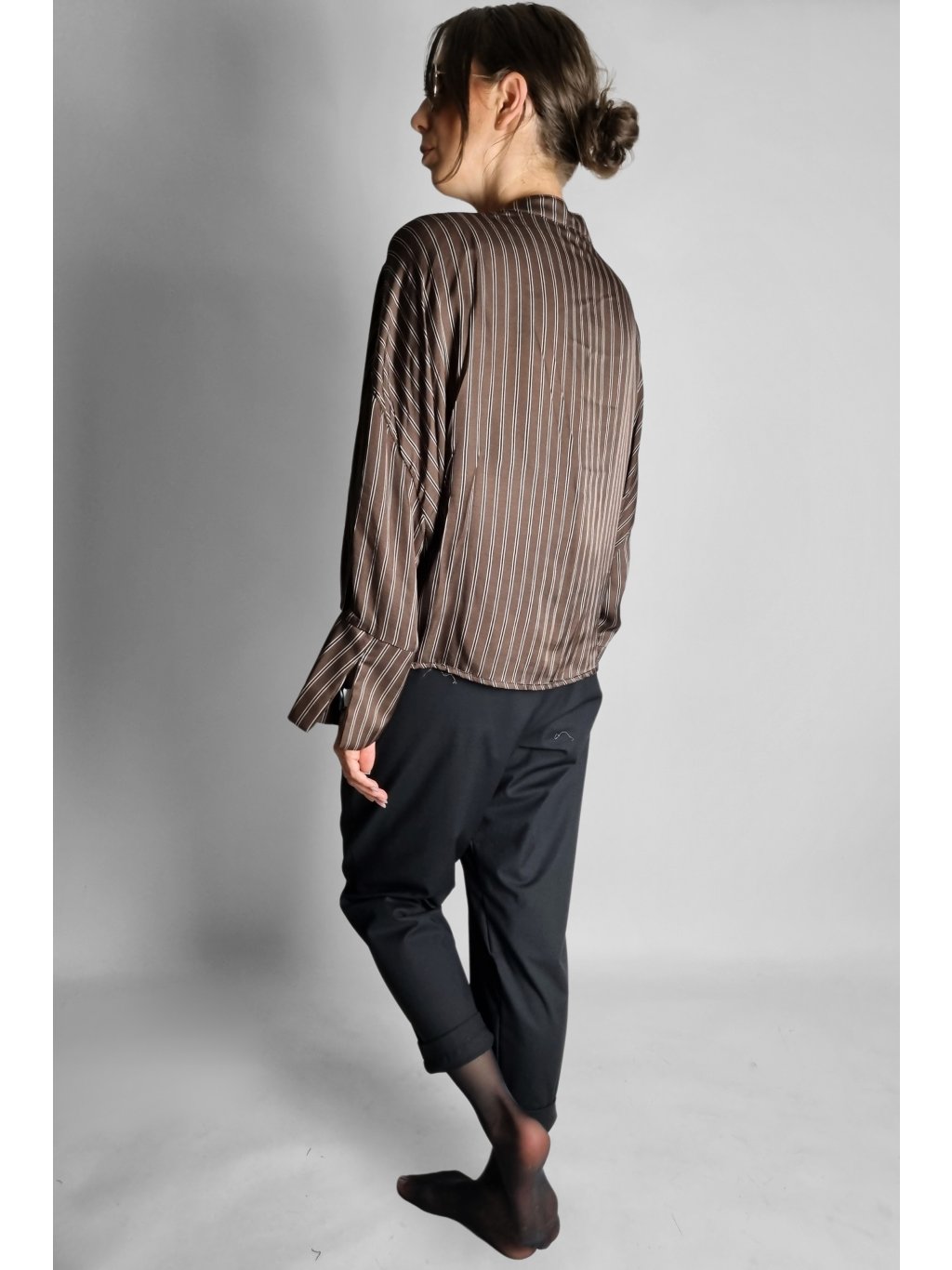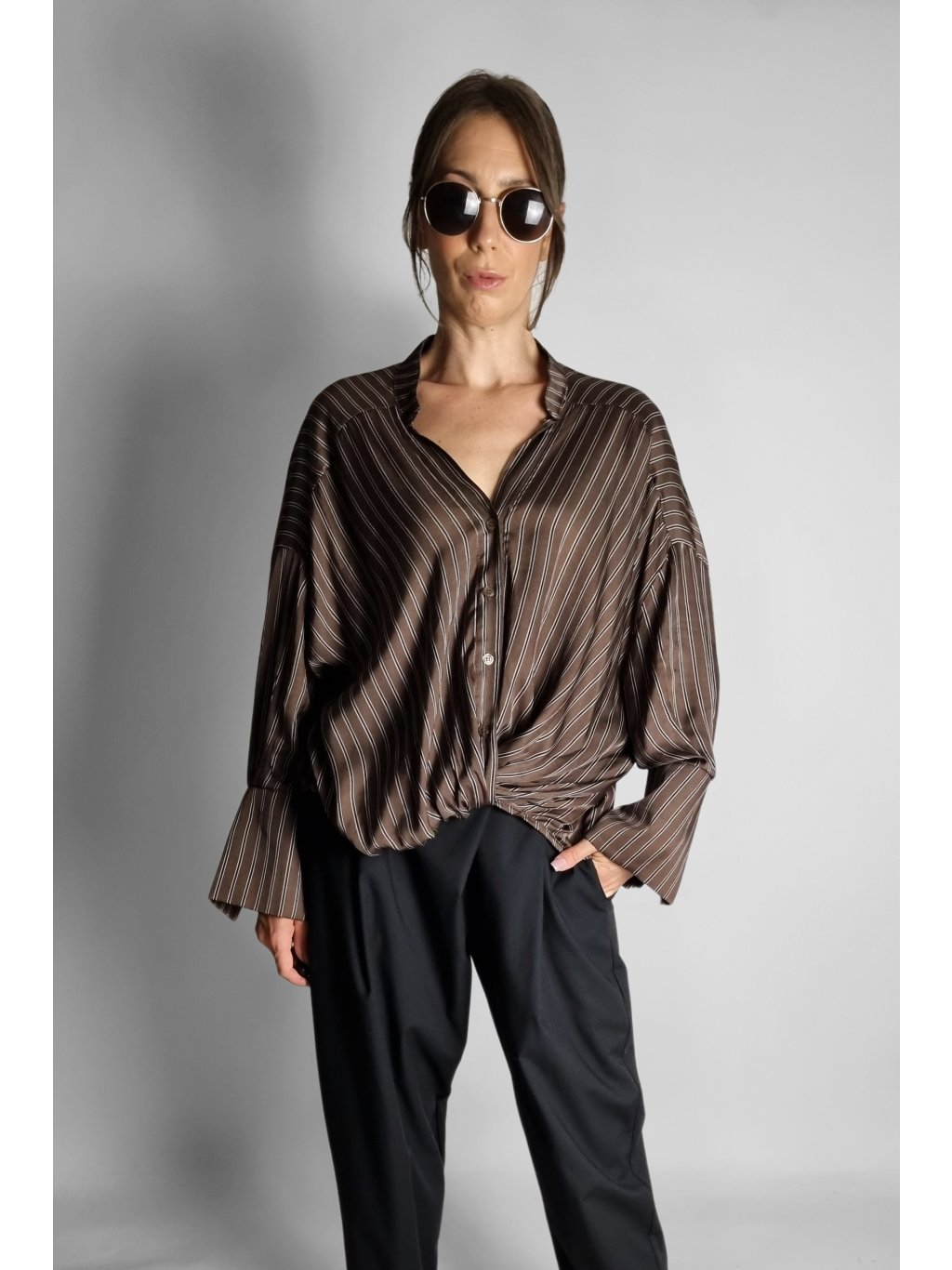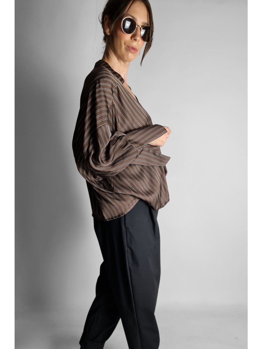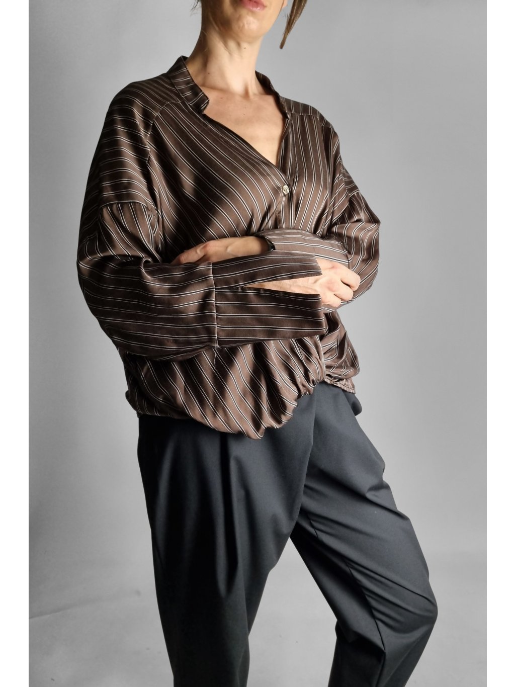 Košile Brown Stripe Wrap – Split Cuff