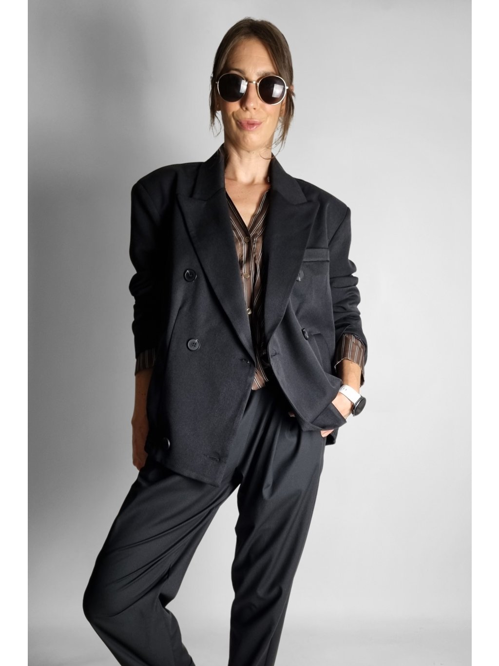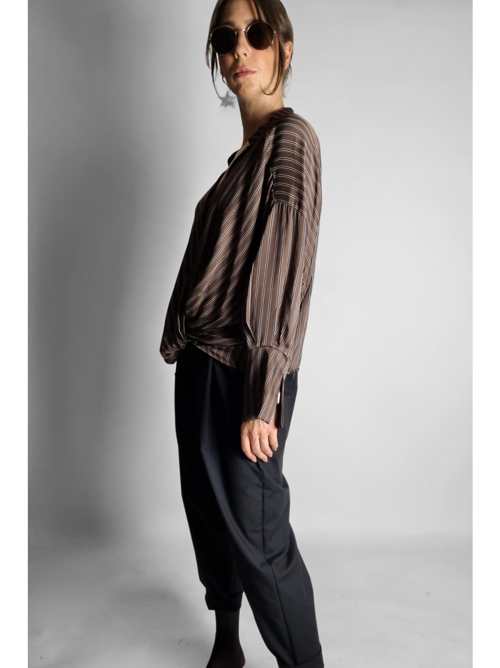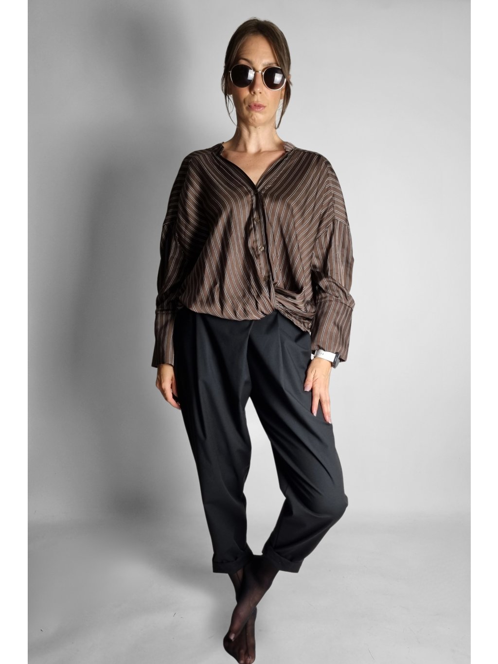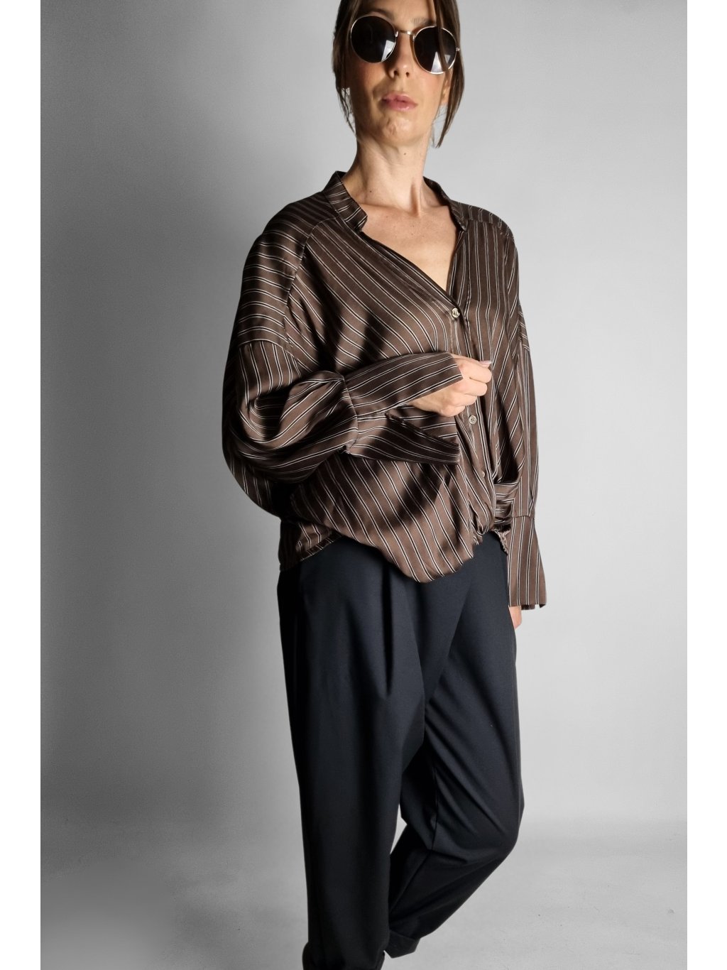 Košile Brown Stripe Wrap – Split Cuff