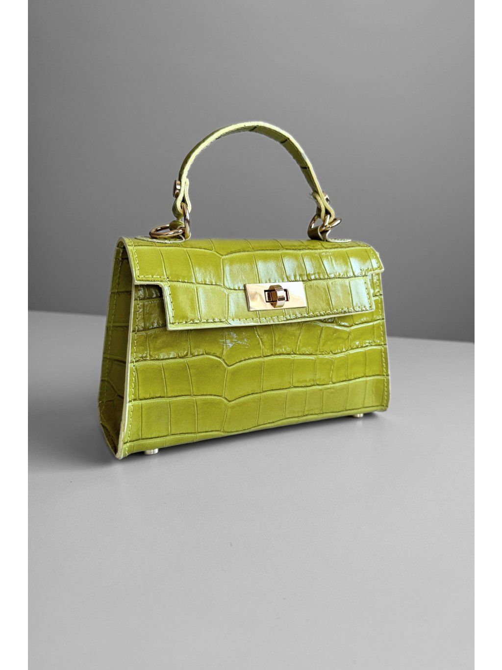 Elegantní malá kabelka ve stylu kufříku z pravé kůže, doplněná zlatými detaily a ozdobným zámkem.