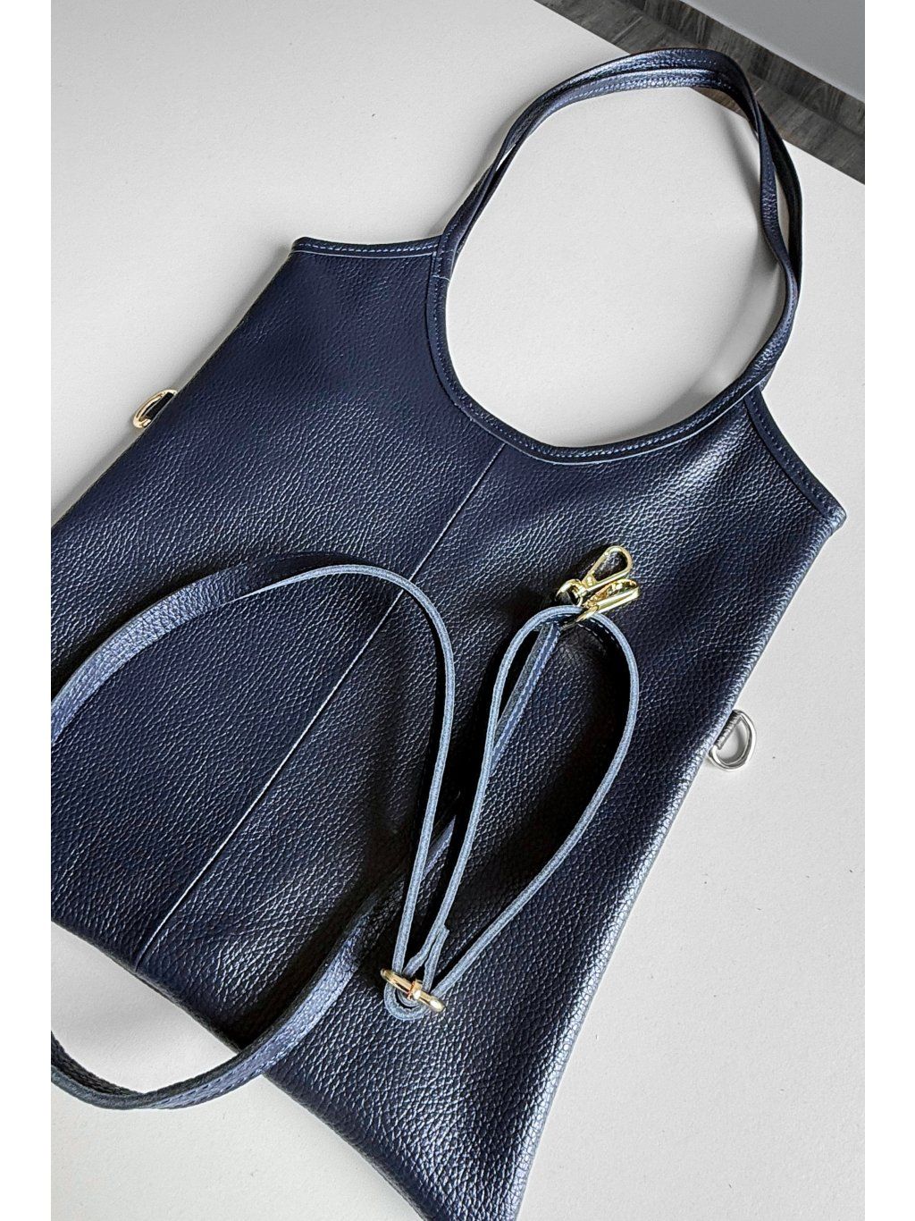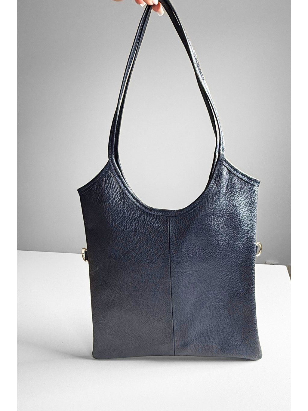 Elegantní kabelka střední velikosti z pravé kůže v nadčasové tmavě modré barvě (navy).