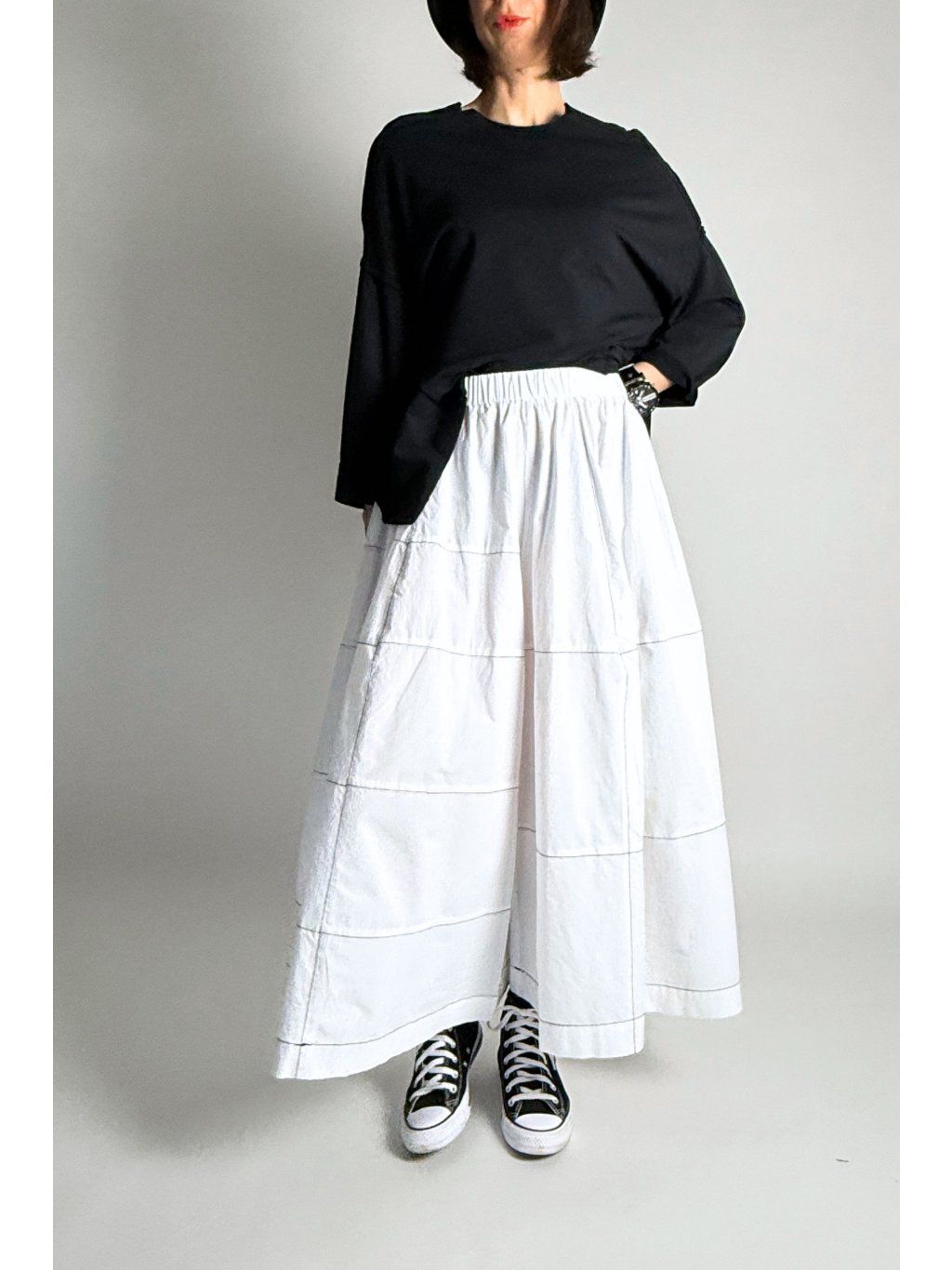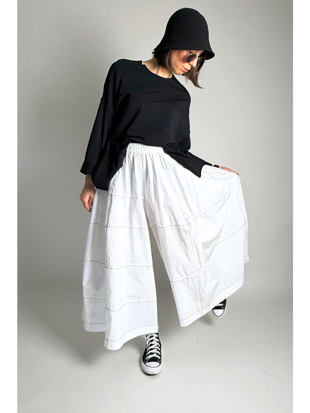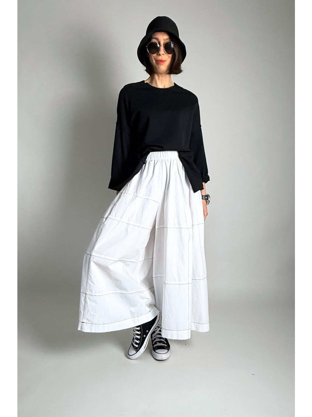 Kalhoty mají extra široké nohavice do zvonu, díky kterým působí téměř jako sukně. Jsou volné, vzdušné a velmi pohodlné.