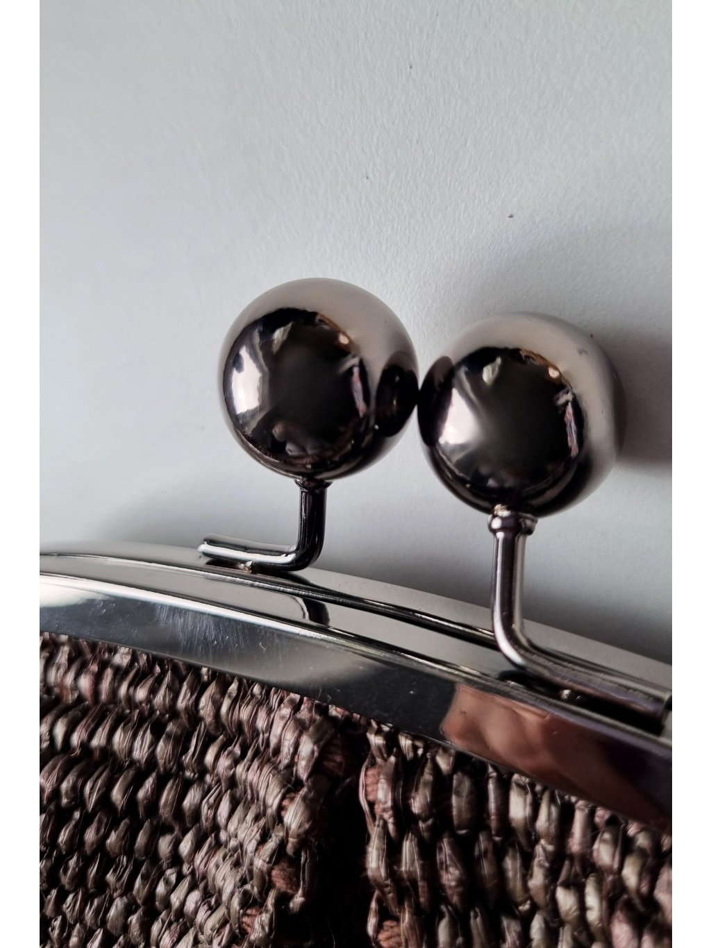 Stylové maxi psaníčko vyrobené z přírodních vláken palmy Raphia, která mu dodává lehký, rustikální a zároveň elegantní vzhled. Jemné tmavé chromové detaily přidávají sofistikovaný lesk.