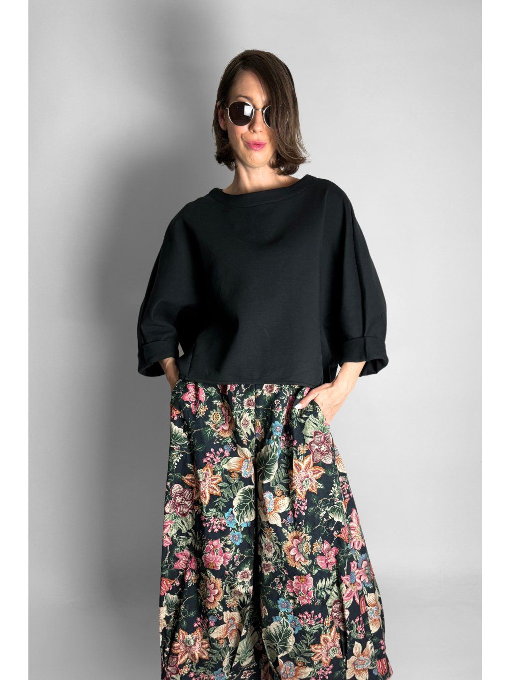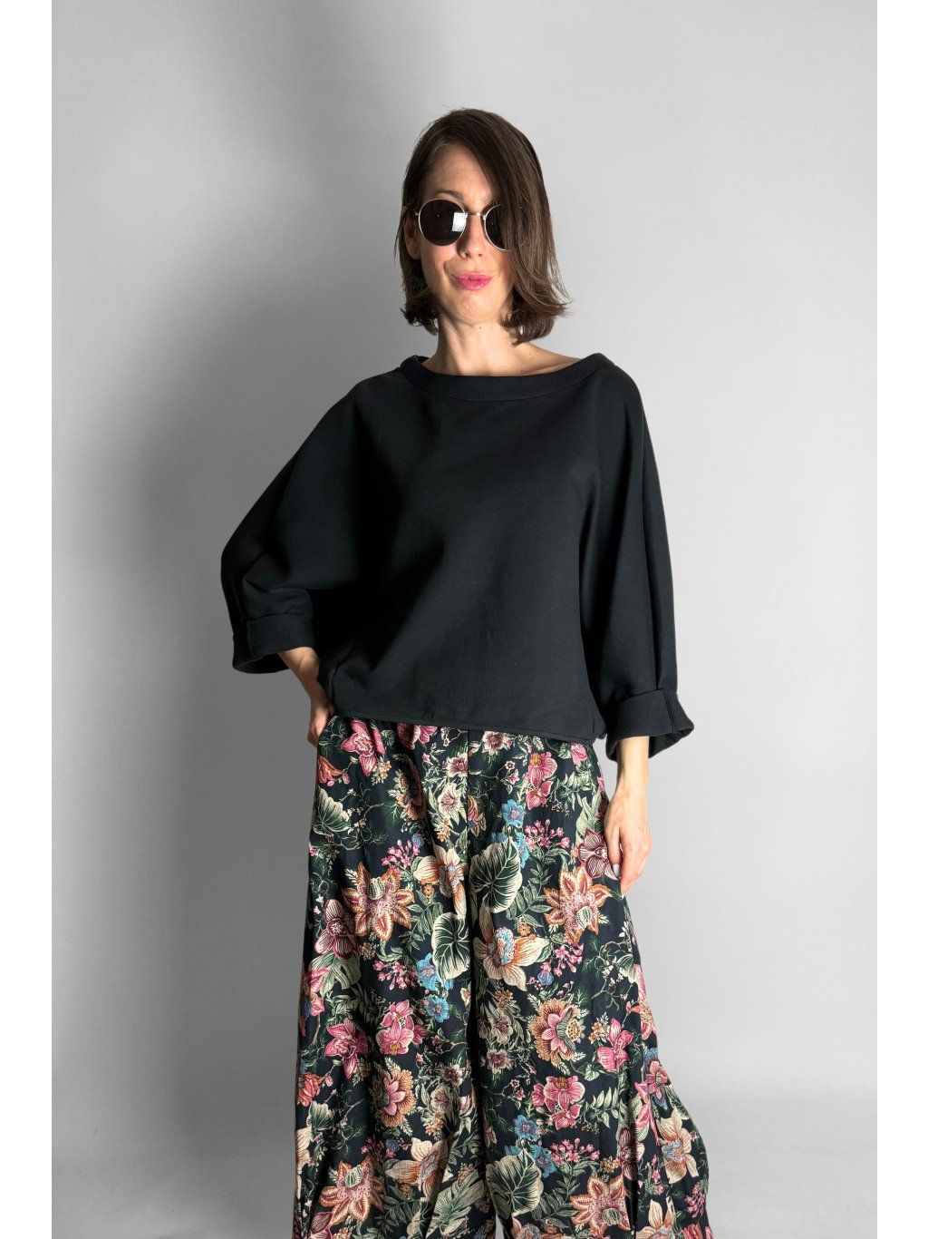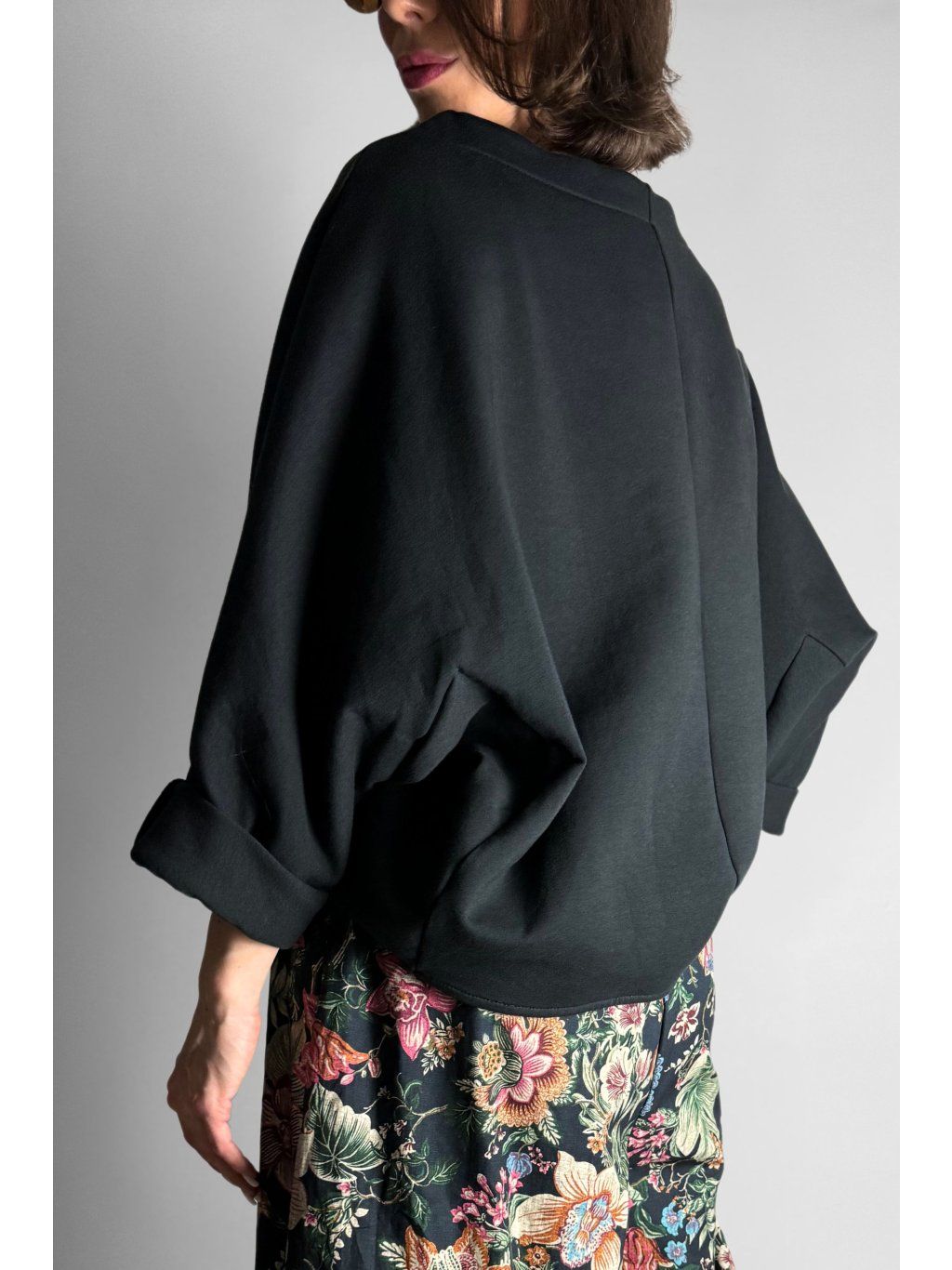 Lehká a pohodlná mikina s netopýřími rukávy a širokým kulatým výstřihem. Celá mikina je elastická, včetně rukávů a spodního lemu, který je zakončen lemováním pro pohodlné nošení.