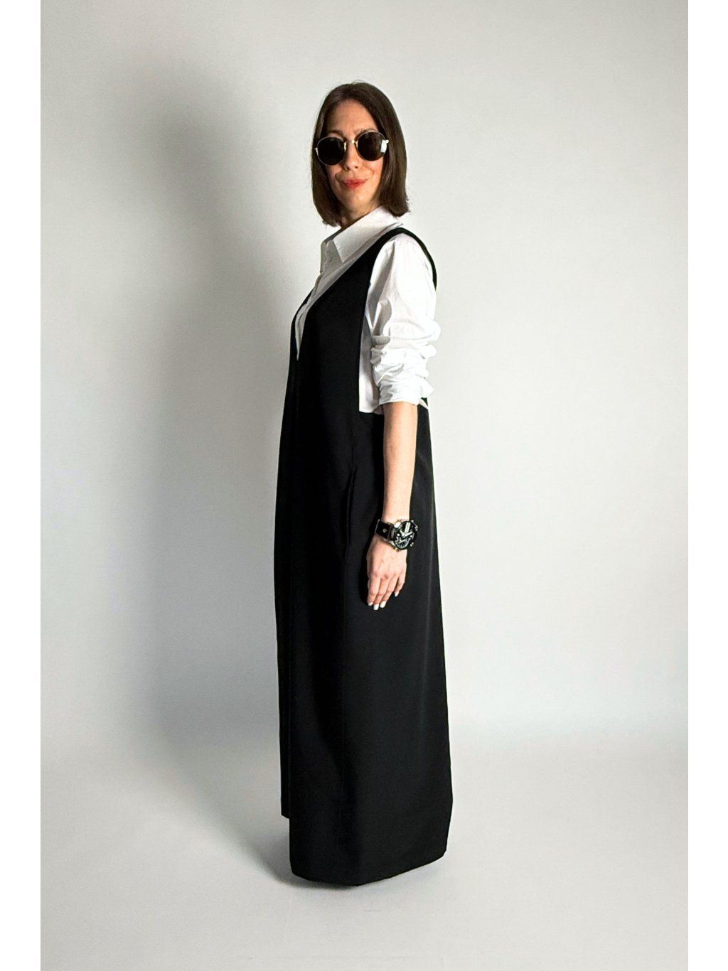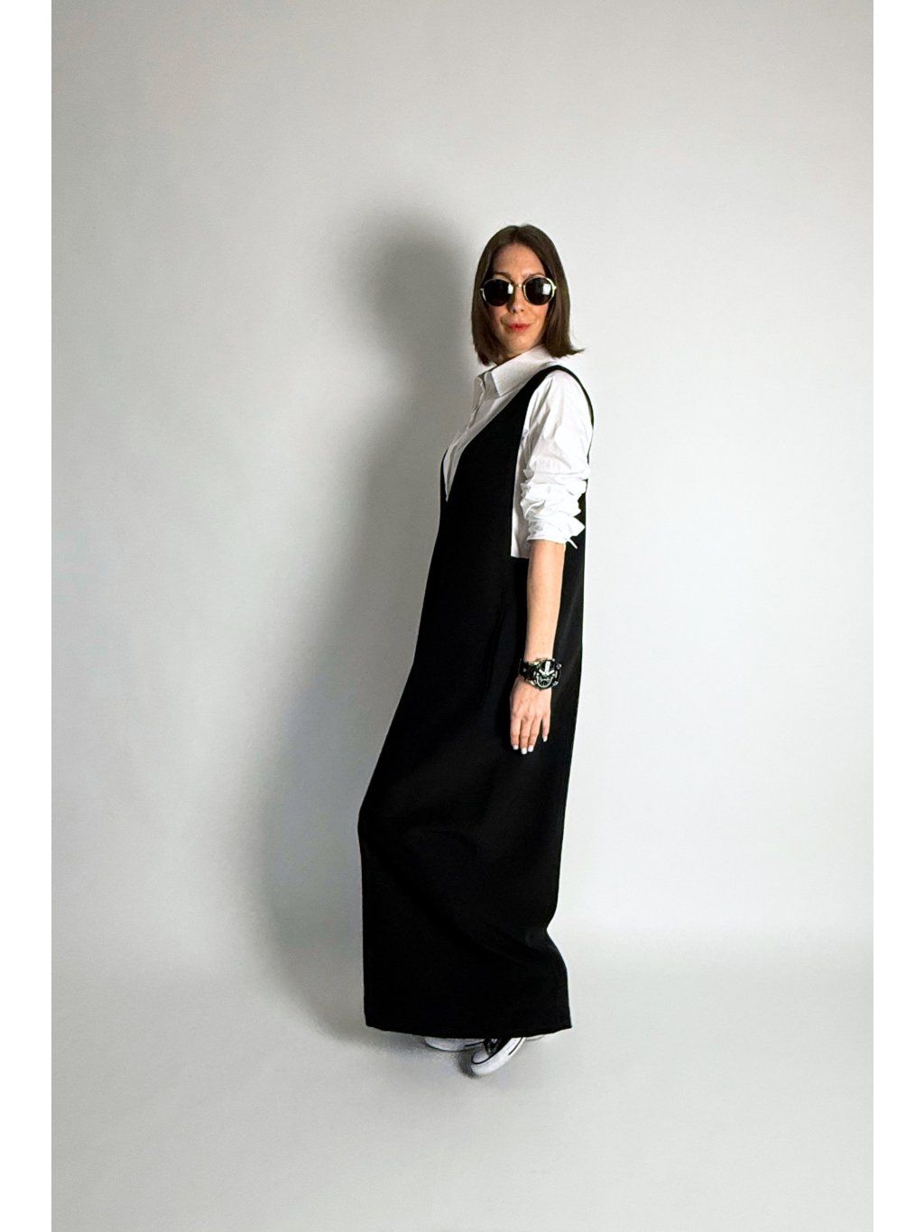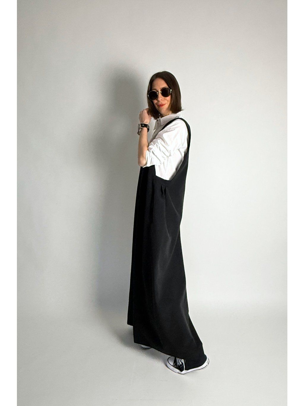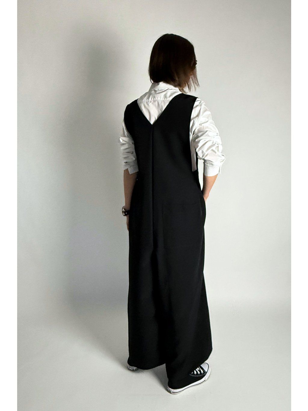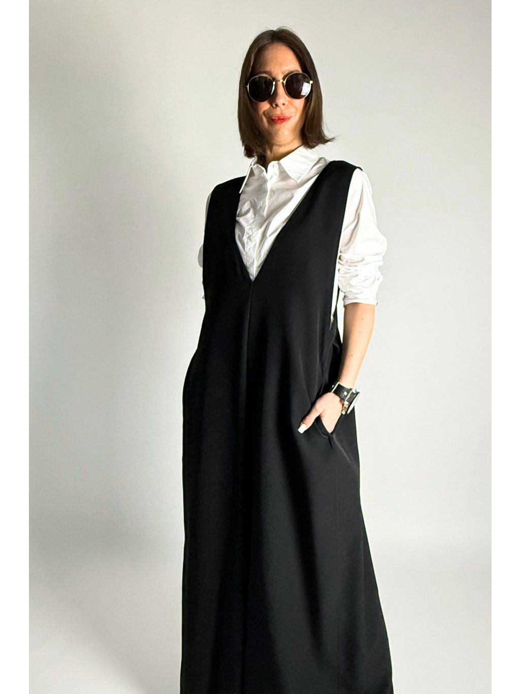 Pohodlný oversize overal s výrazným výstřihem do „V“ na přední i zadní straně.