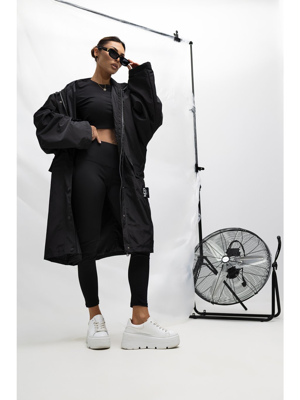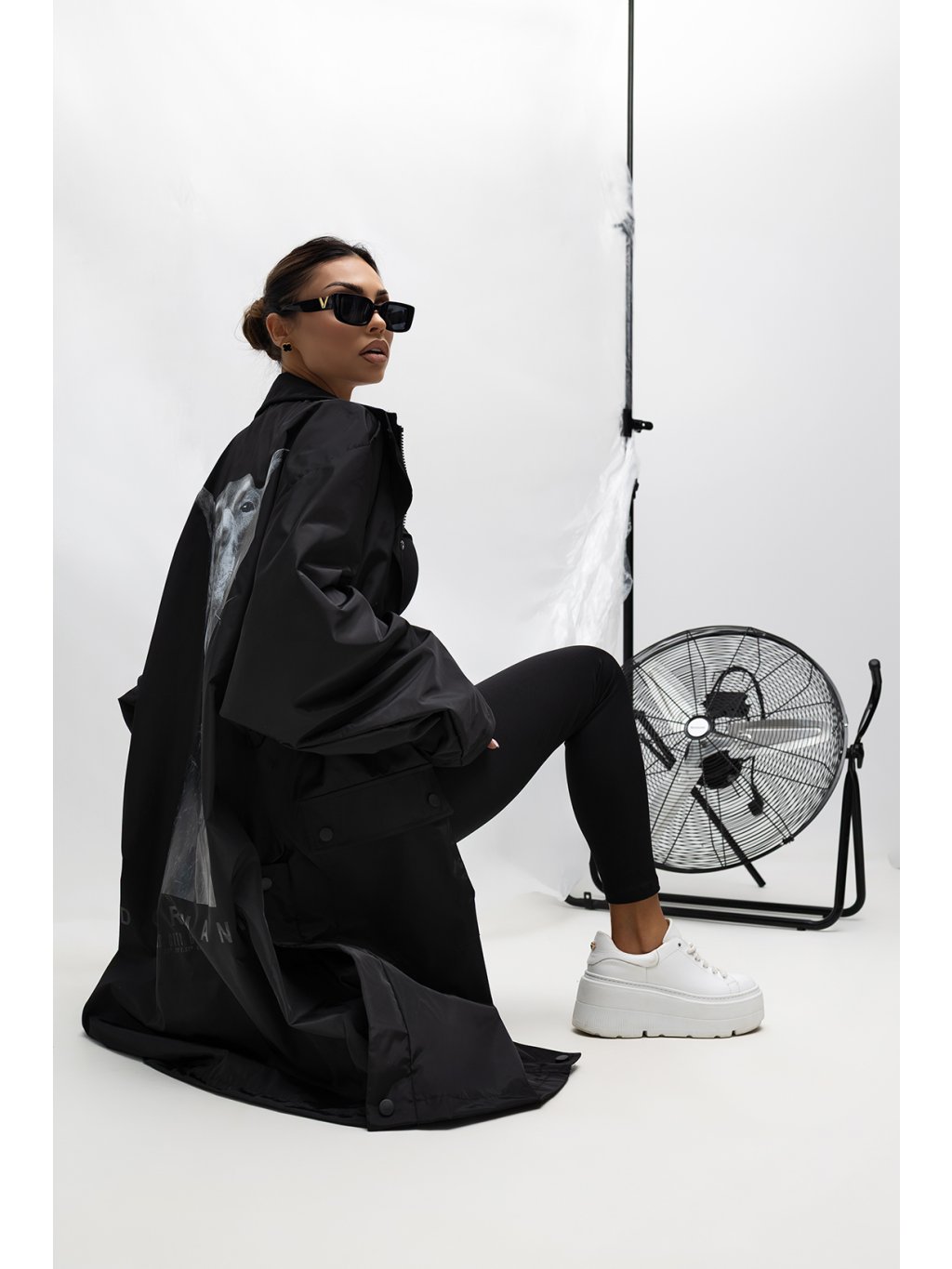 Elegantní šusťáková bunda s vysokým stojáčkem, zapínáním na oboustranný kovový jezdec a krytou klopou s cvoky