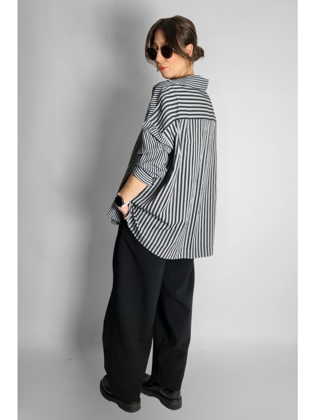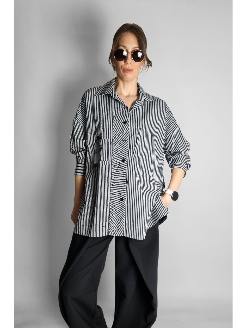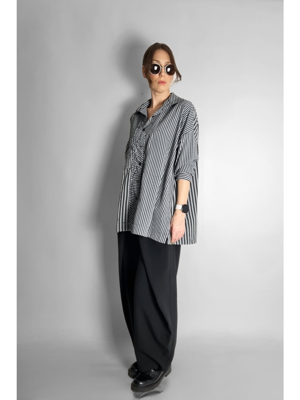Oversize košile s proužky Black | Grey