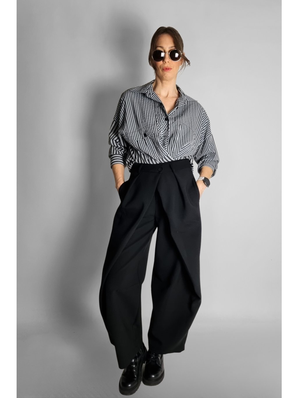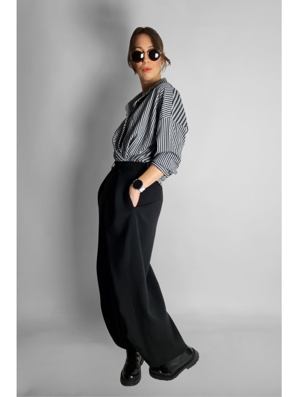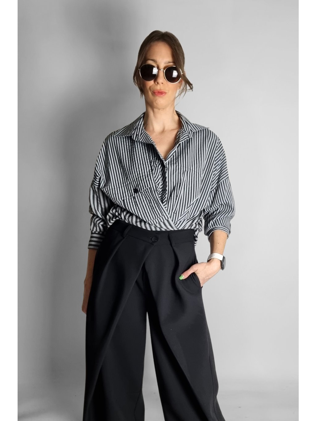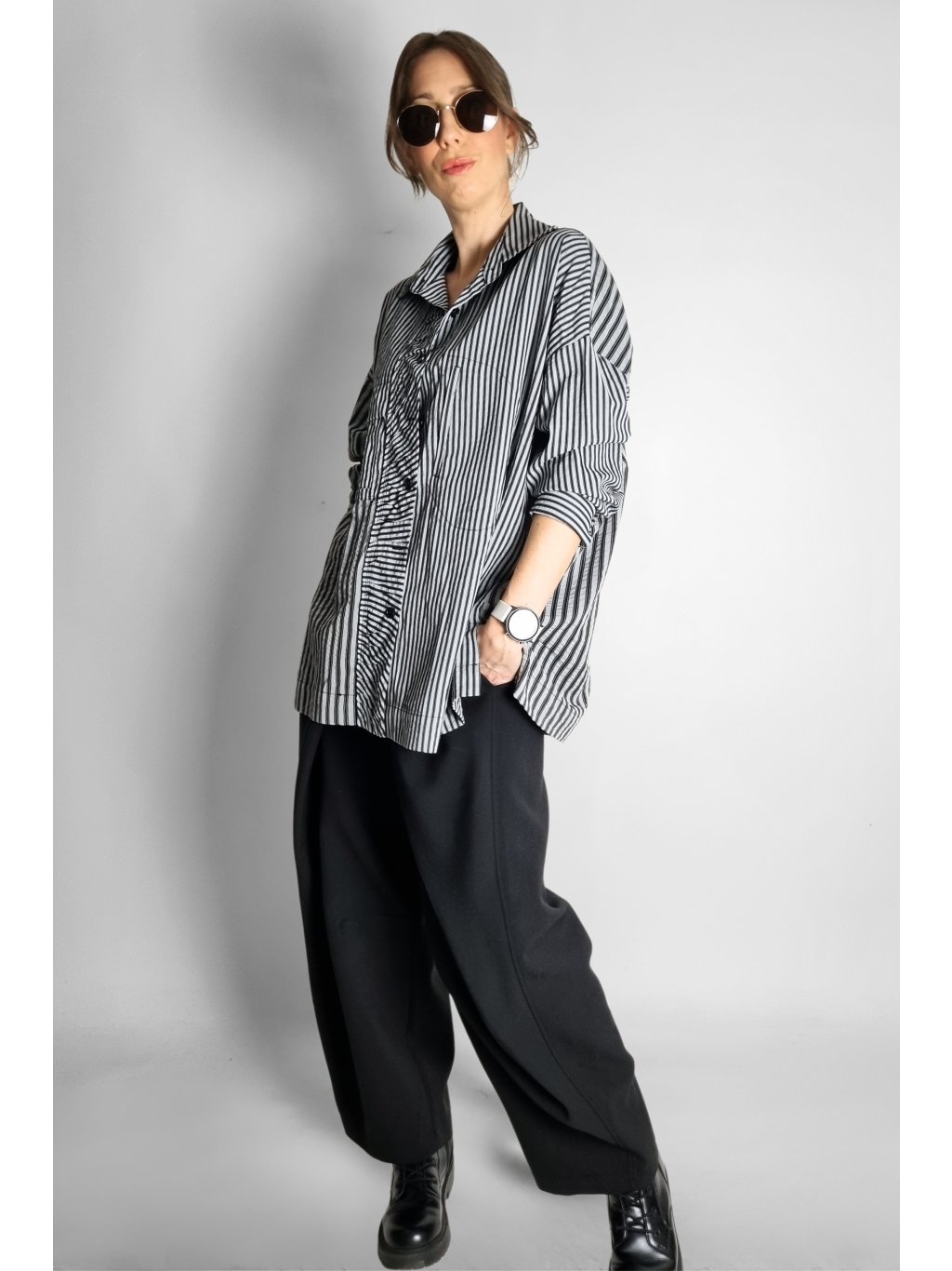 Oversize košile s proužky Black | Grey