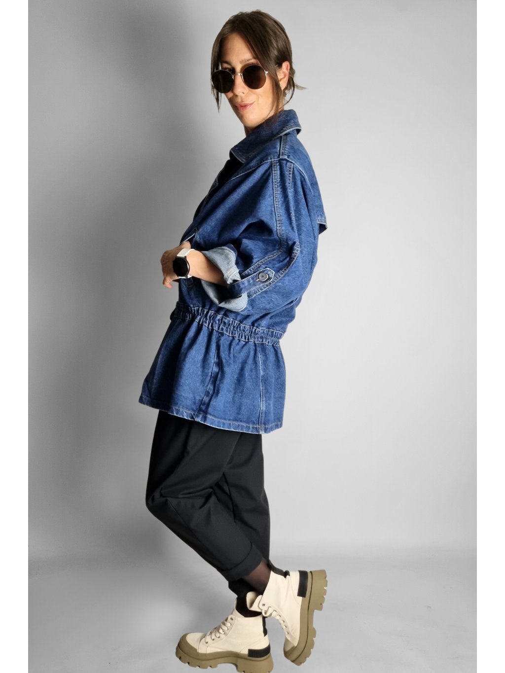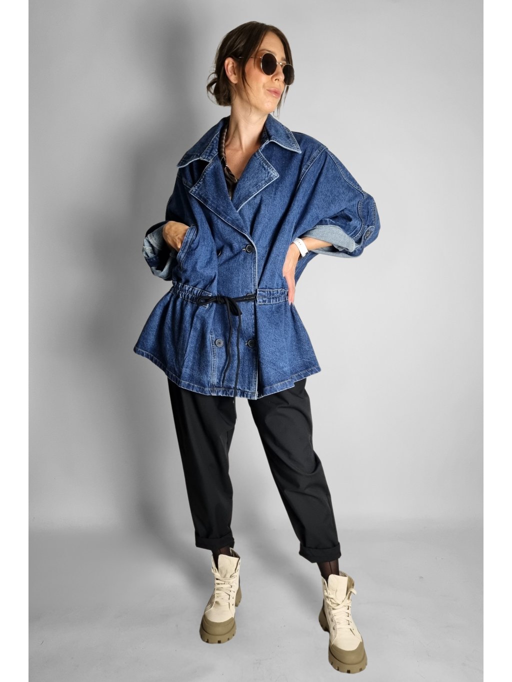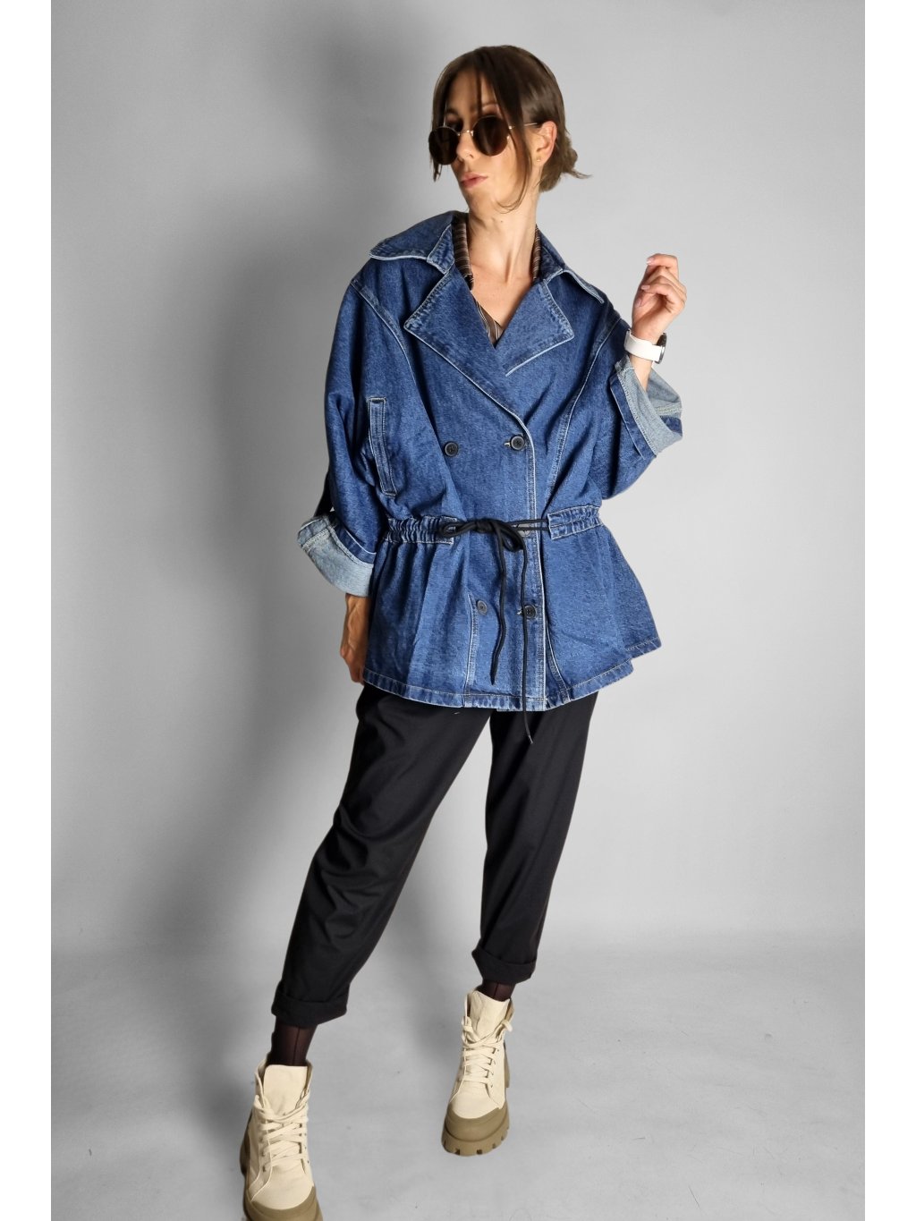 Oversize maxi riflová bunda Follow