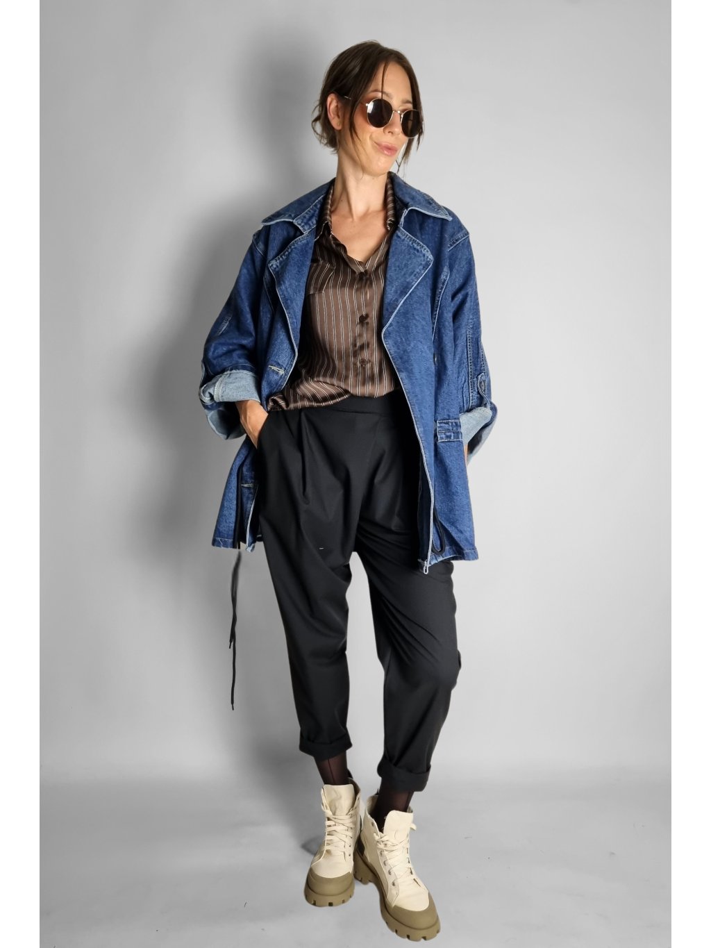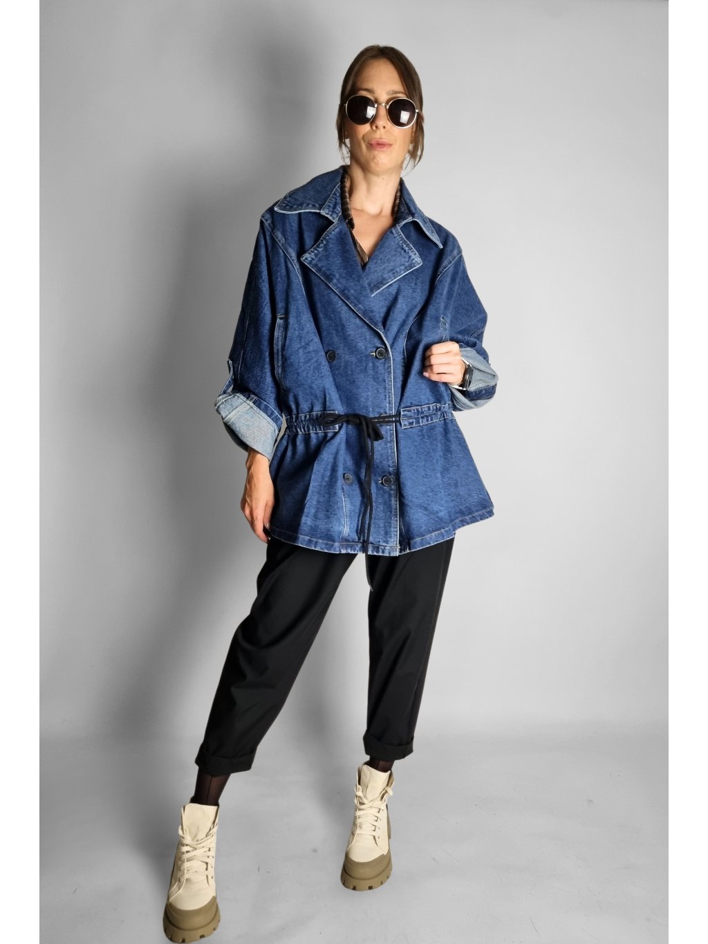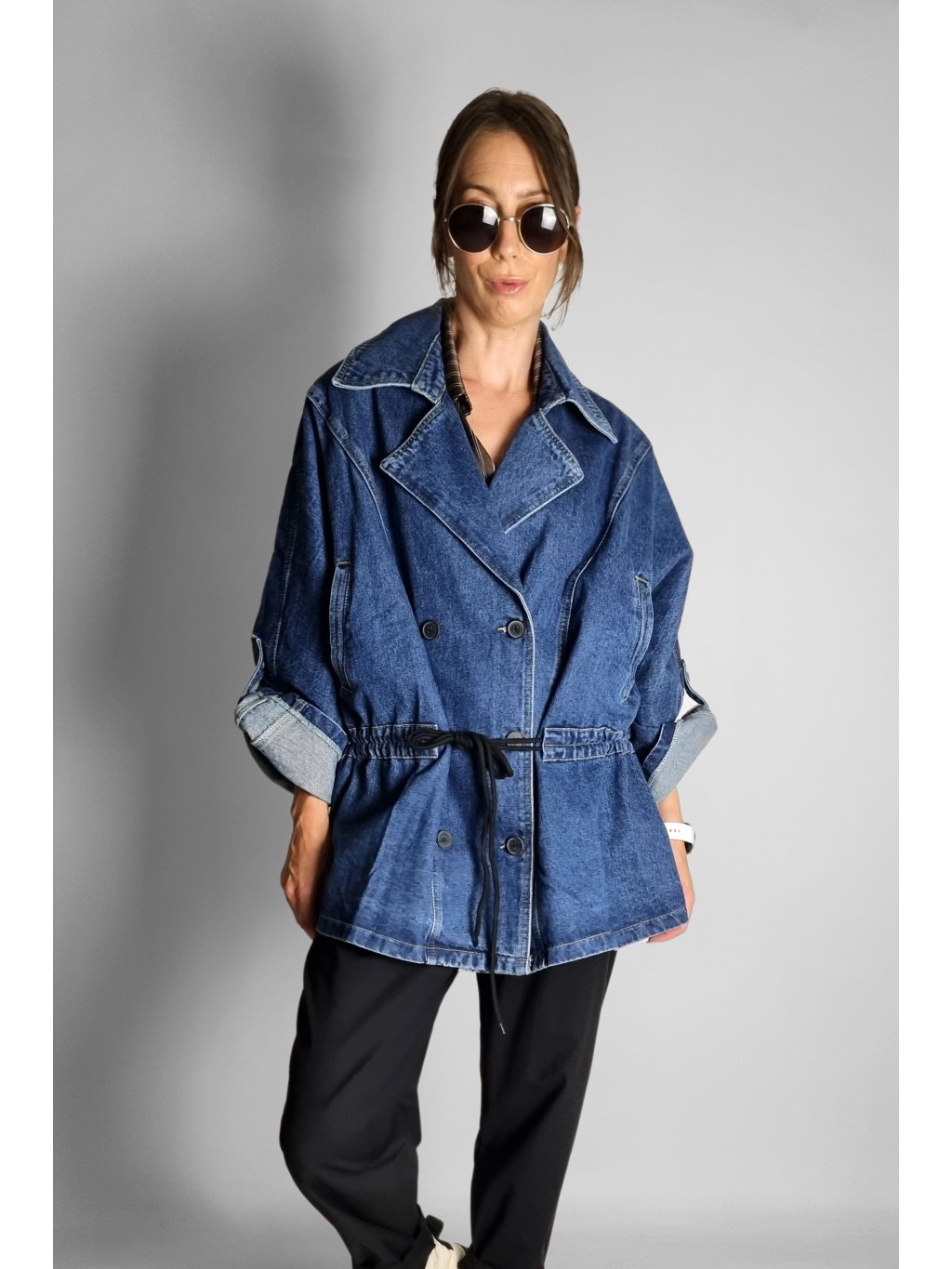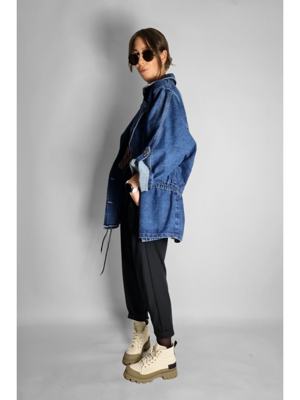 Oversize maxi riflová bunda Follow
