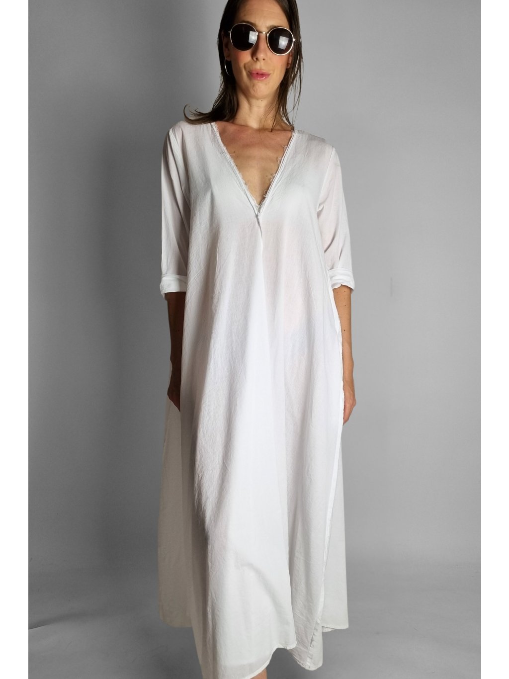 - Dlouhé šaty z bavlněného mušelínu Výstřih