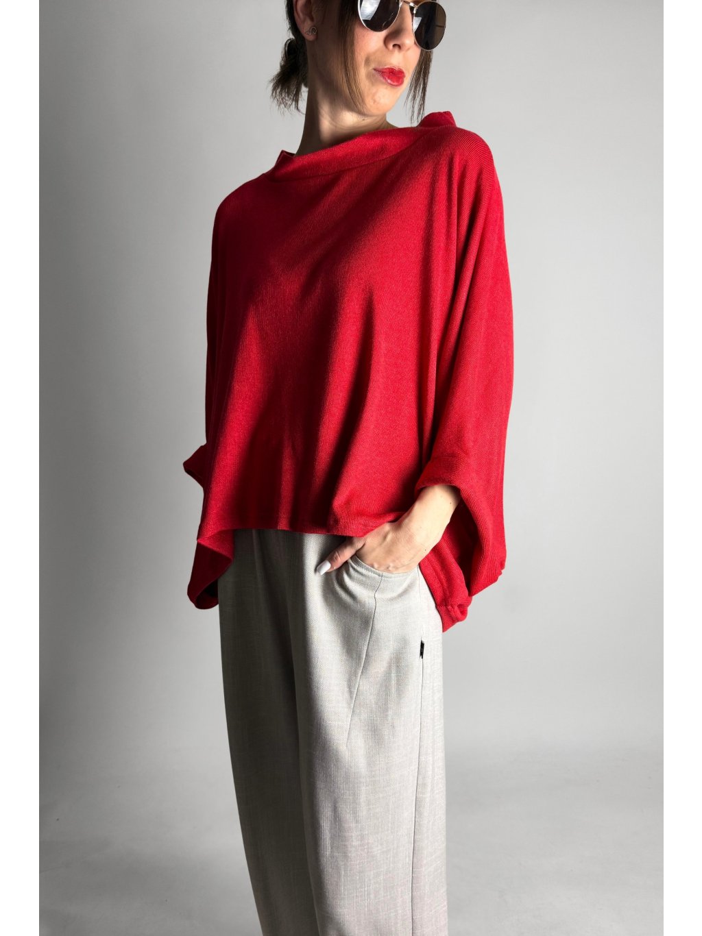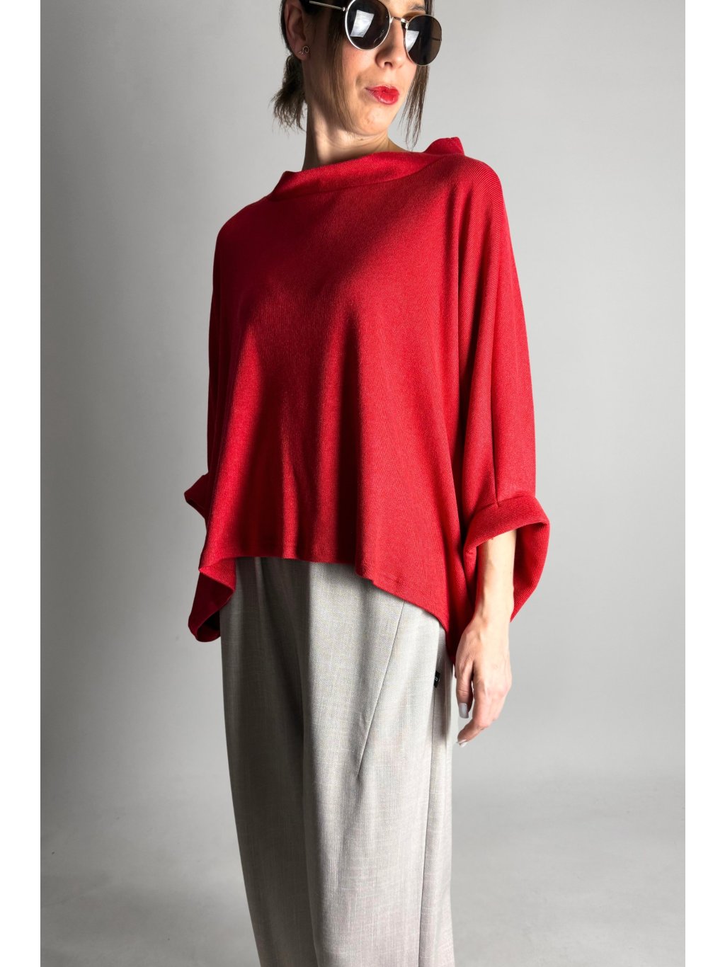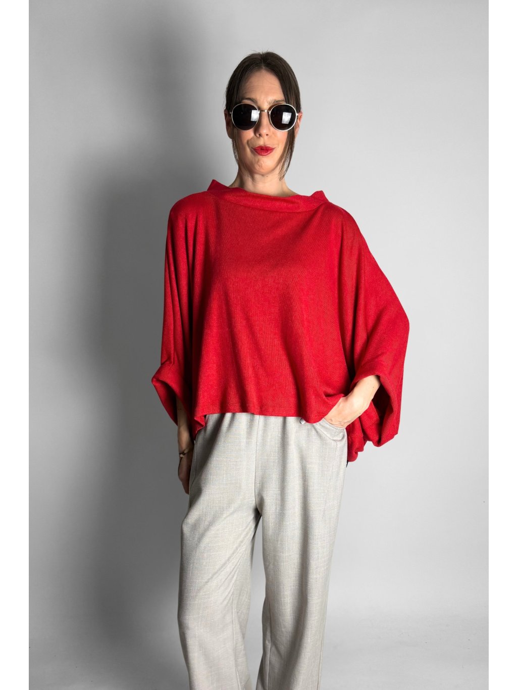 Lehká kimono halenka z jemného úpletu volného střihu s krátkými netopýřími rukávy, která je velmi příjemná na nošení.
