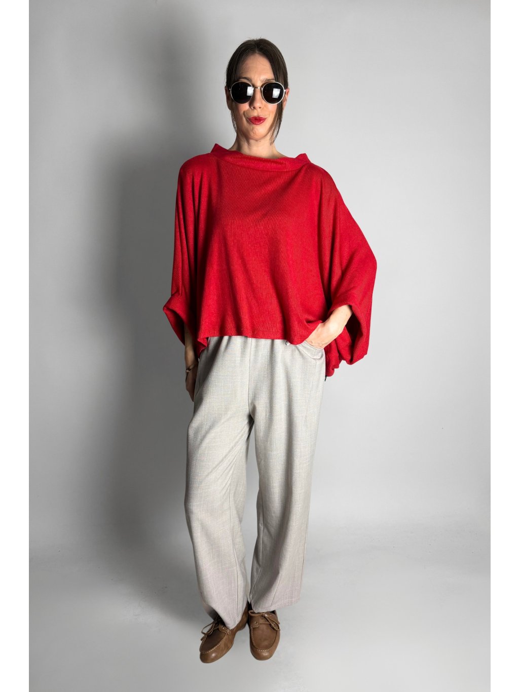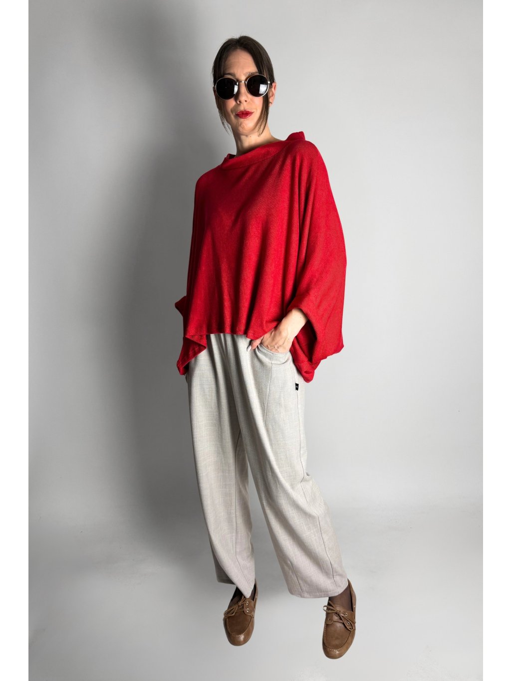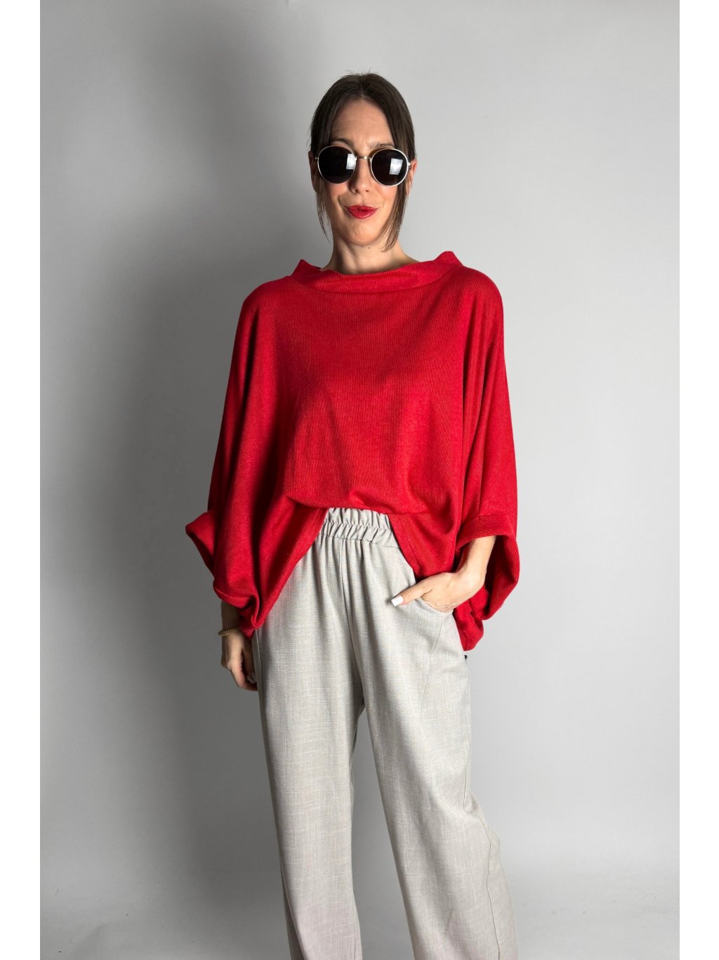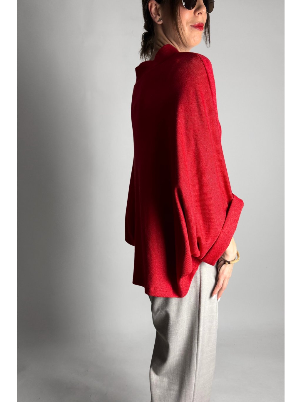 Lehká kimono halenka z jemného úpletu volného střihu s krátkými netopýřími rukávy, která je velmi příjemná na nošení.