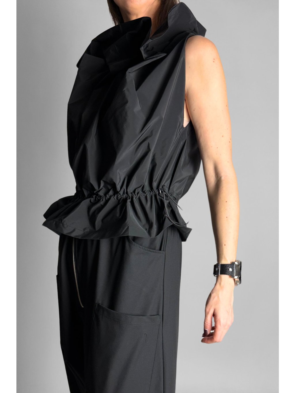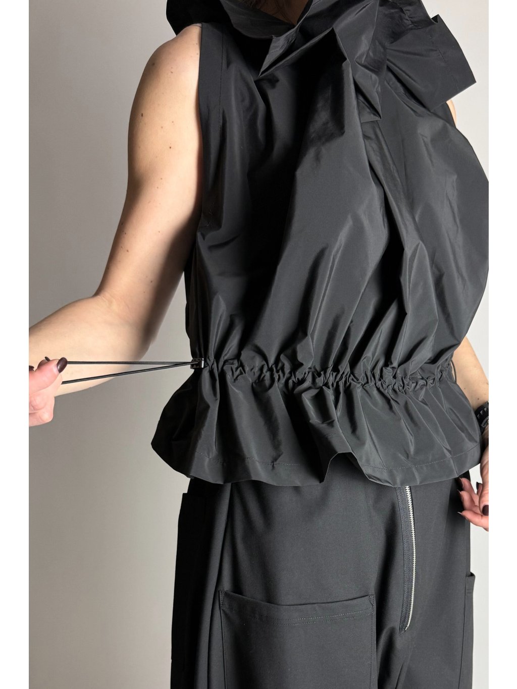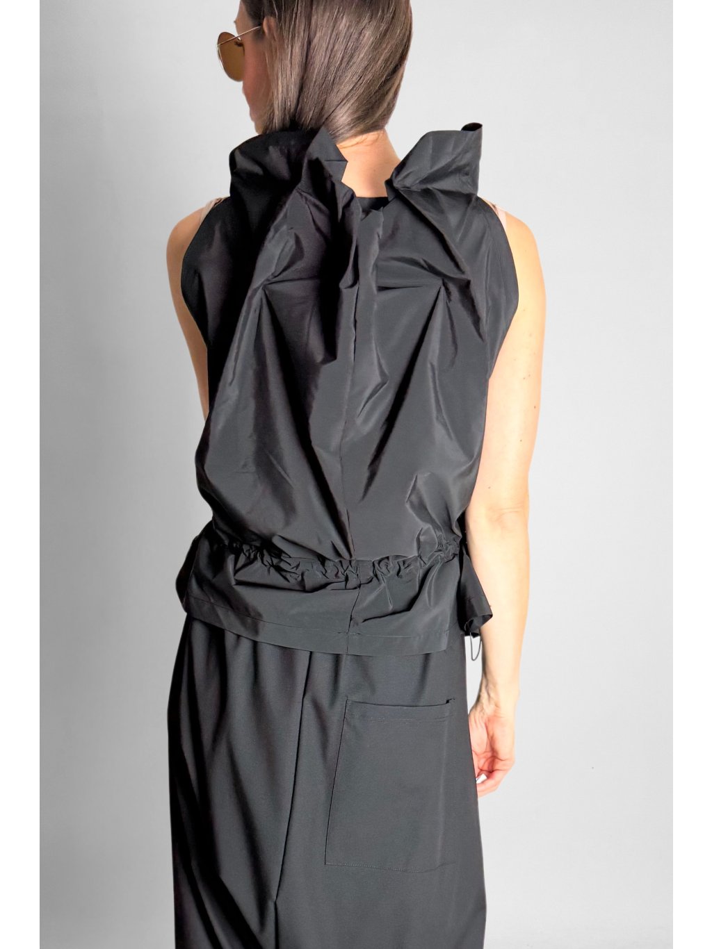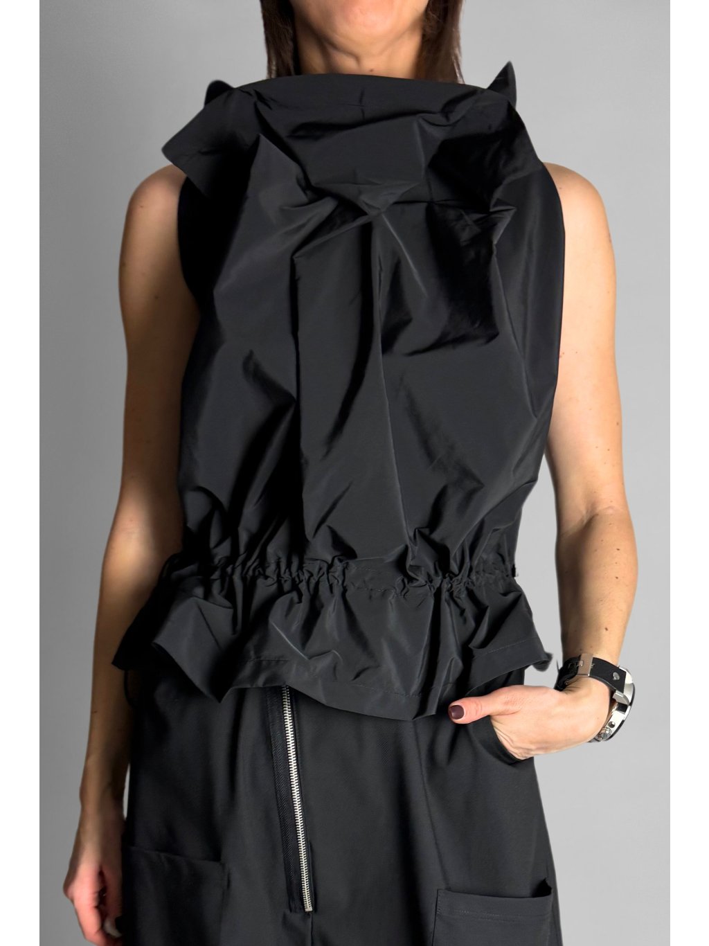 Šusťáková halenka bez rukávů s nabíráním u výstřihu