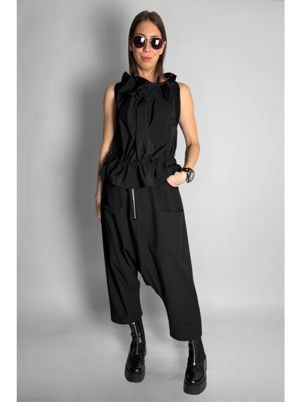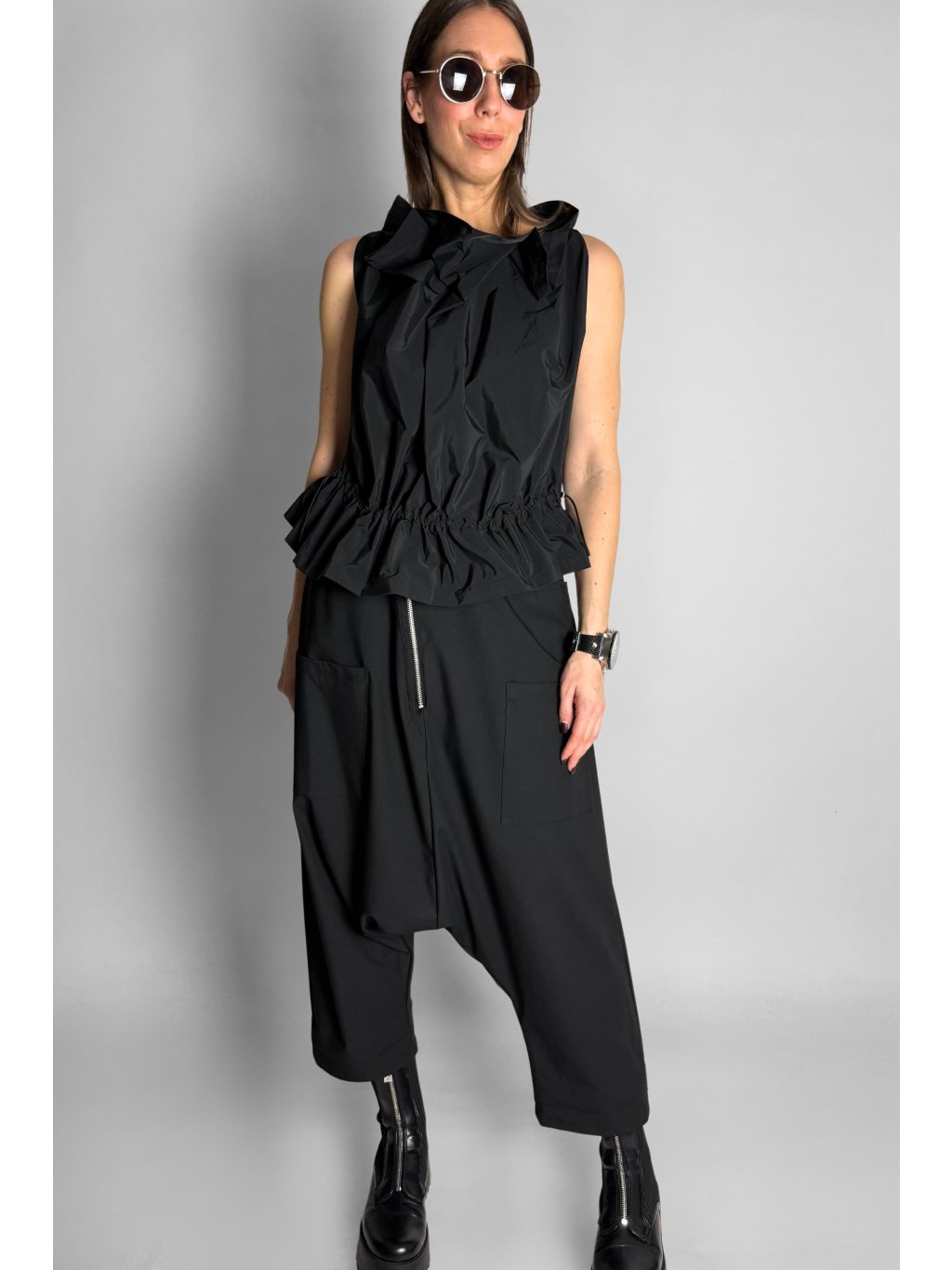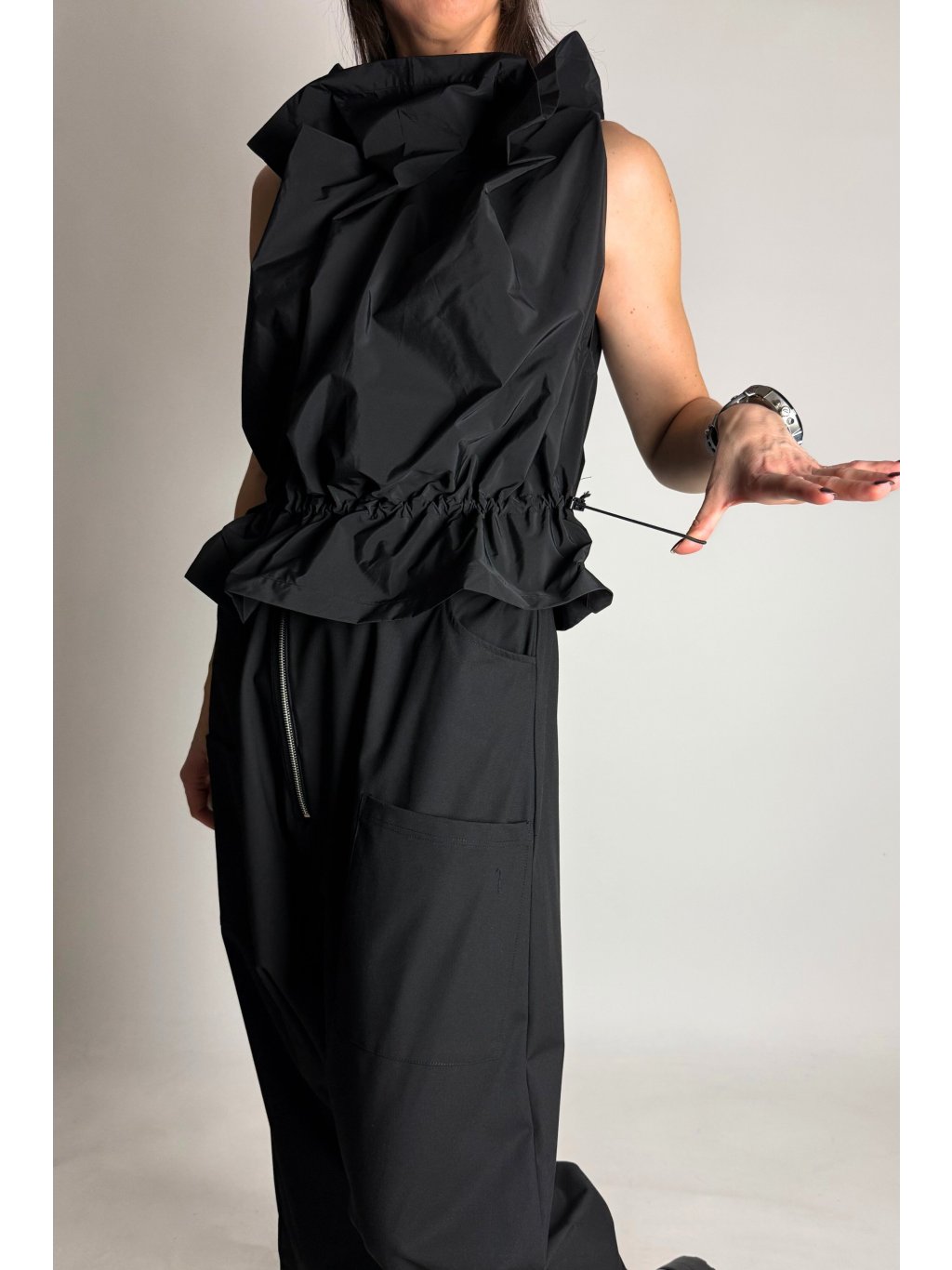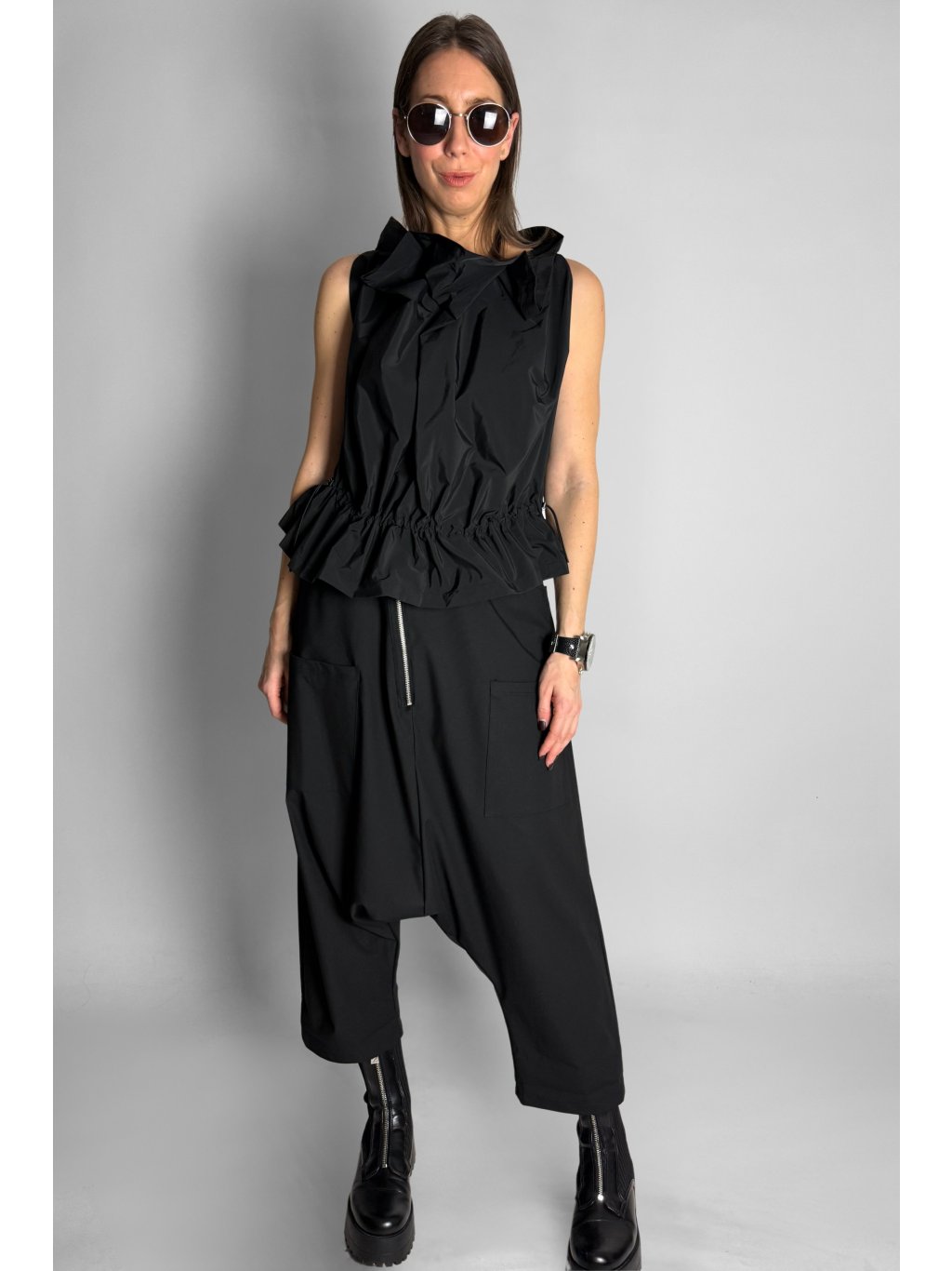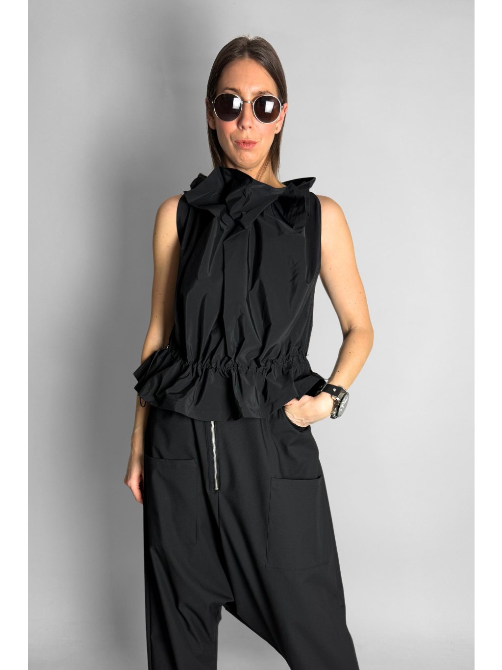 Šusťáková halenka bez rukávů s nabíráním u výstřihu