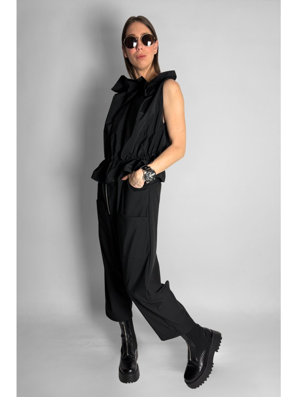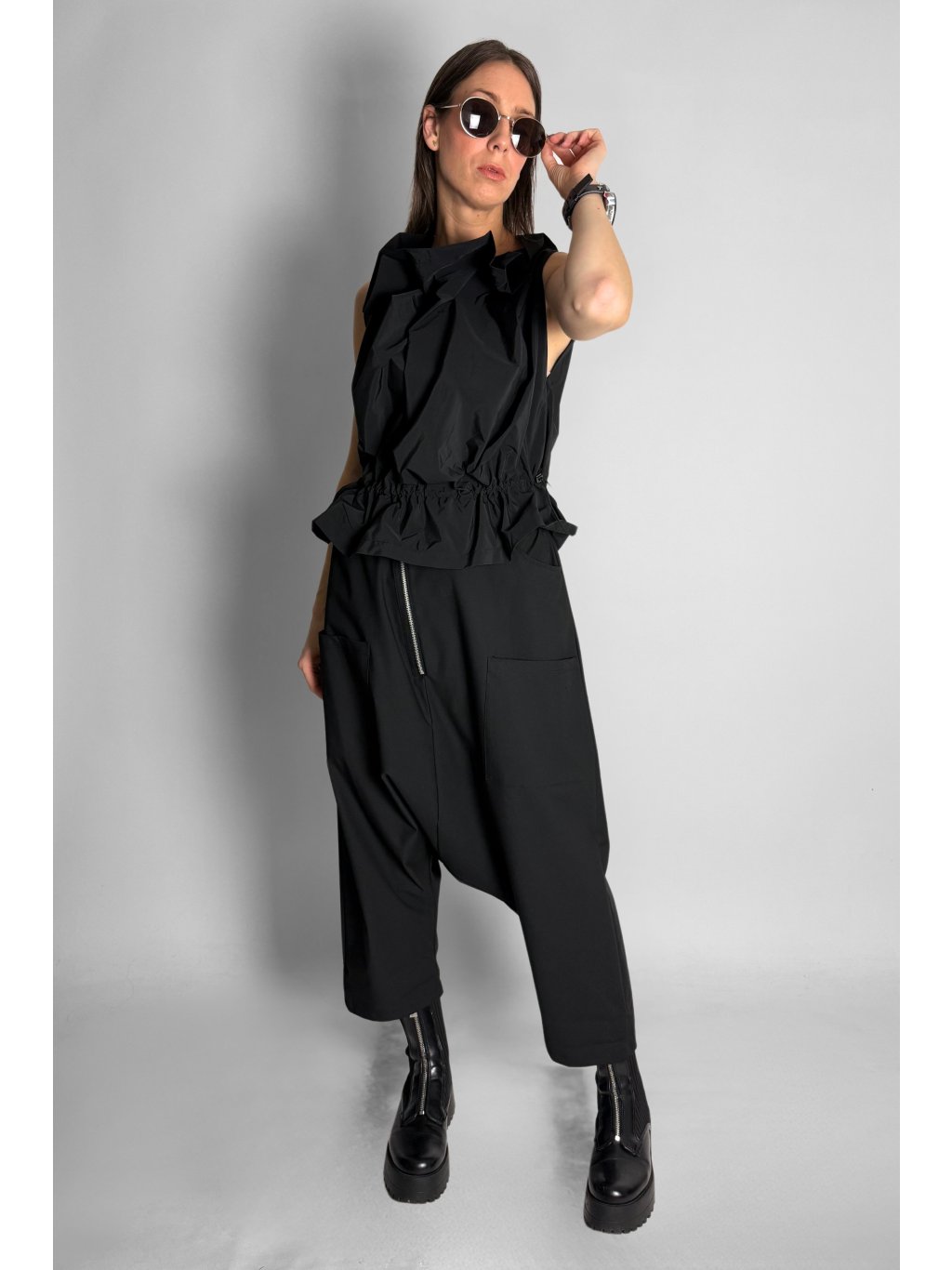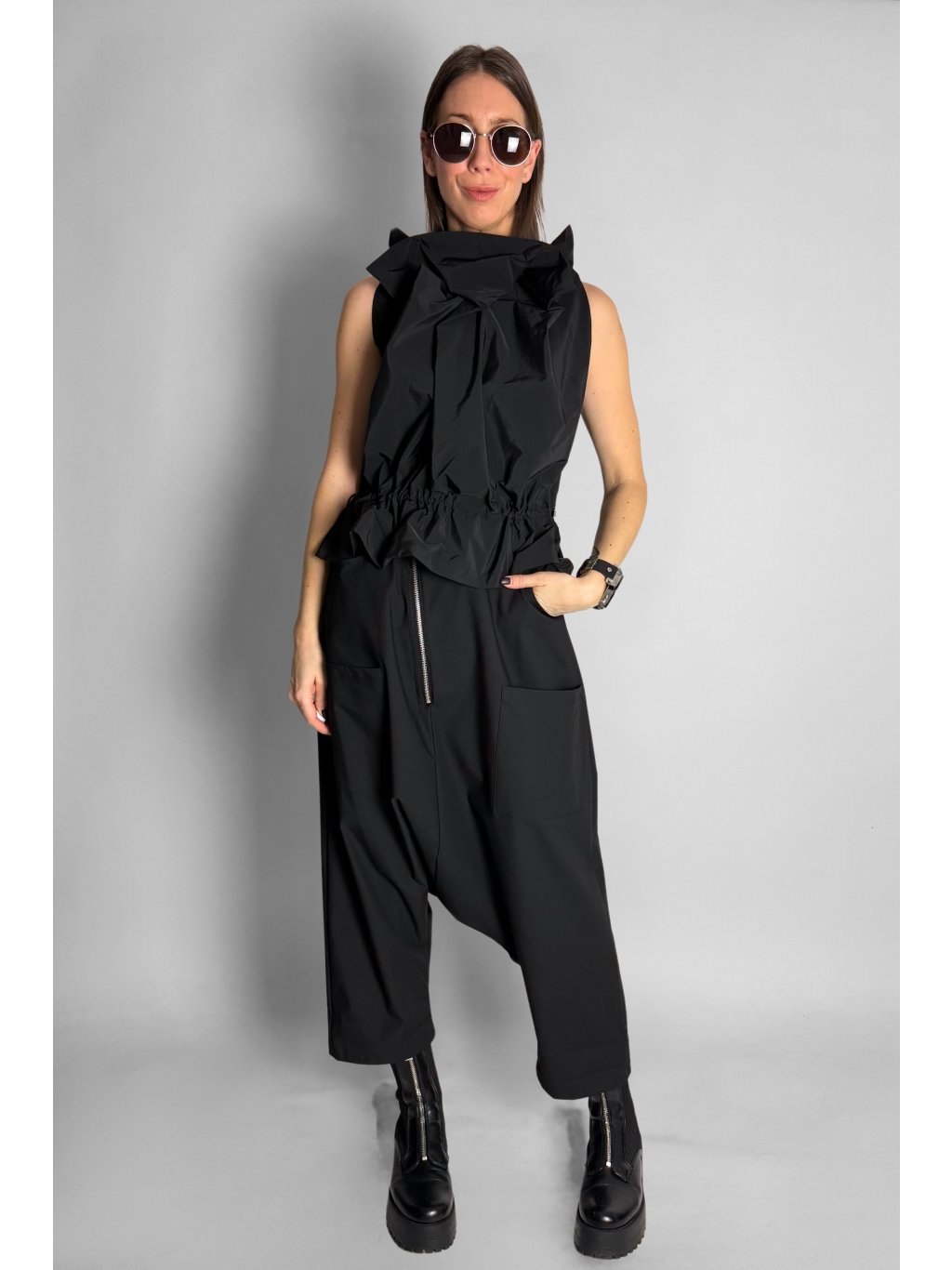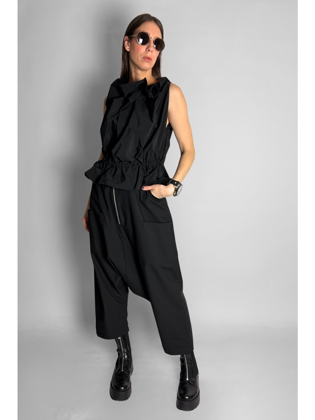 Šusťáková halenka bez rukávů s nabíráním u výstřihu