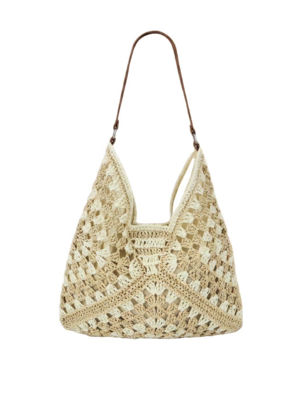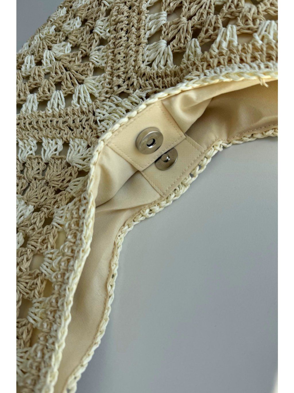 Lehká letní kabelka v rafiovém vzhledu s textilní podšívkou, ideální na každodenní nošení i letní dny.