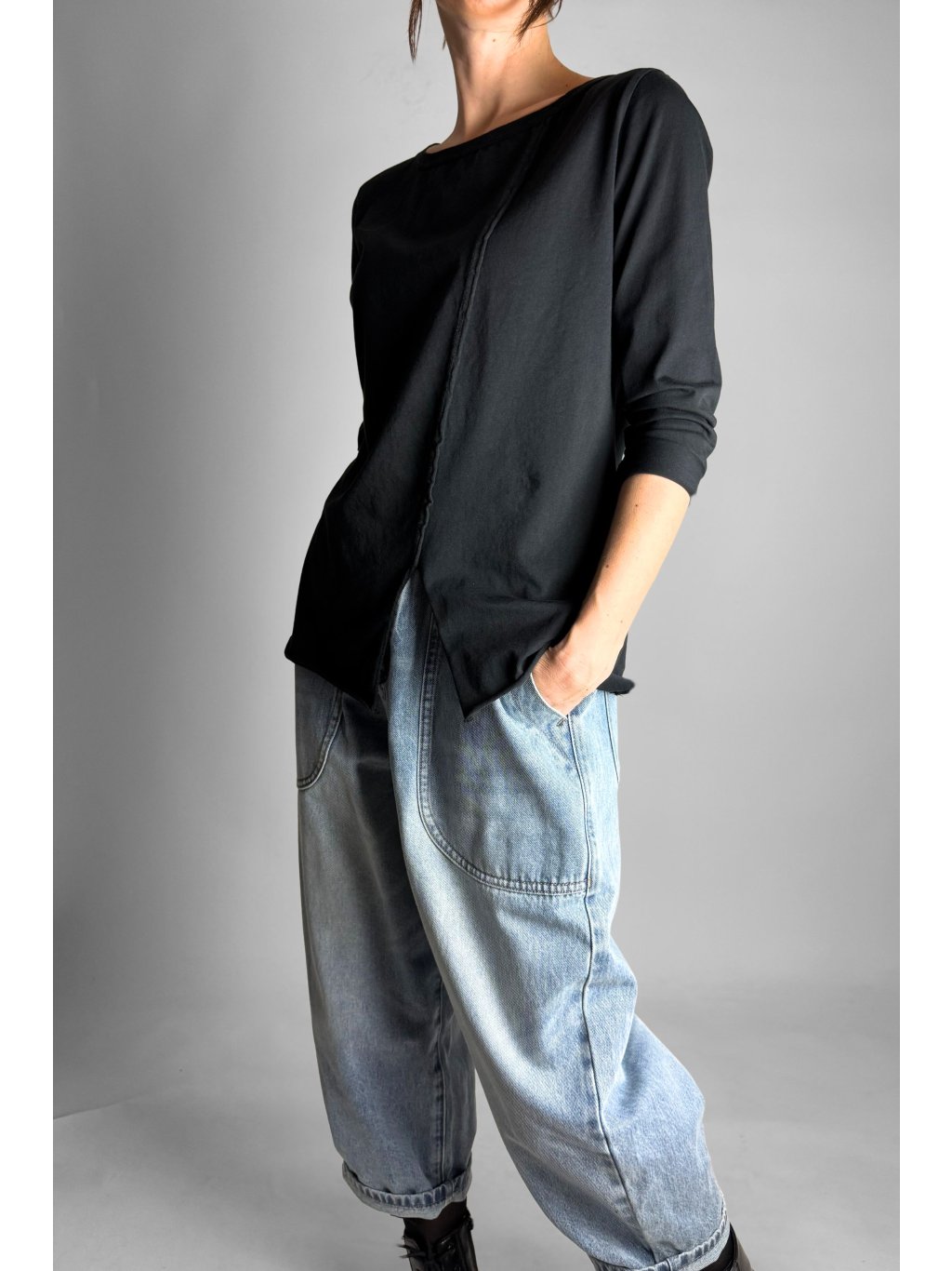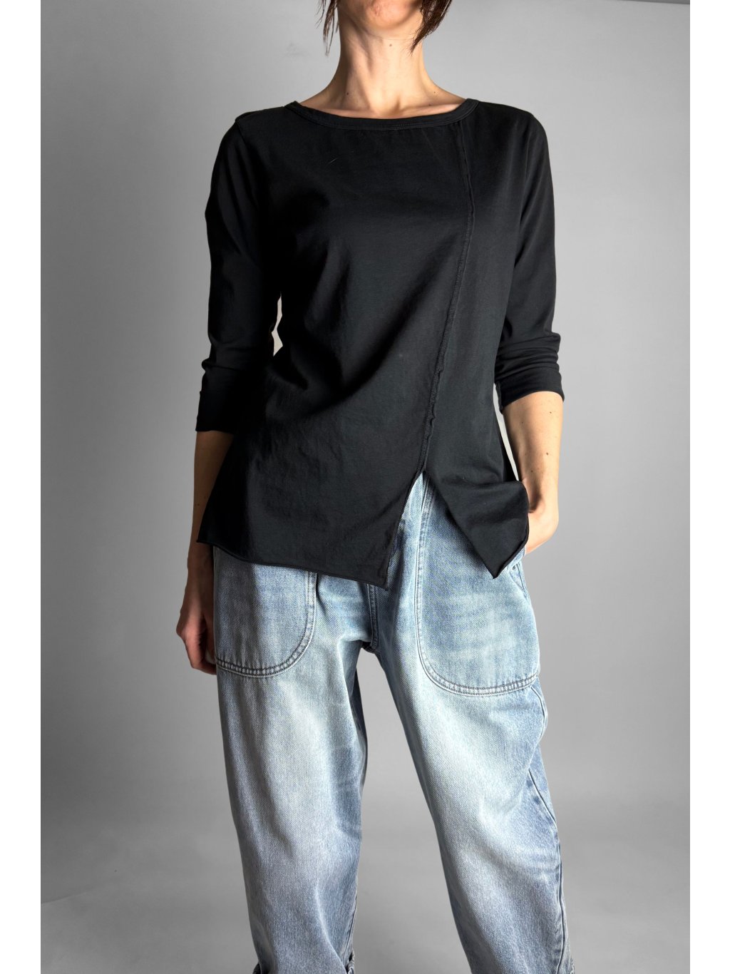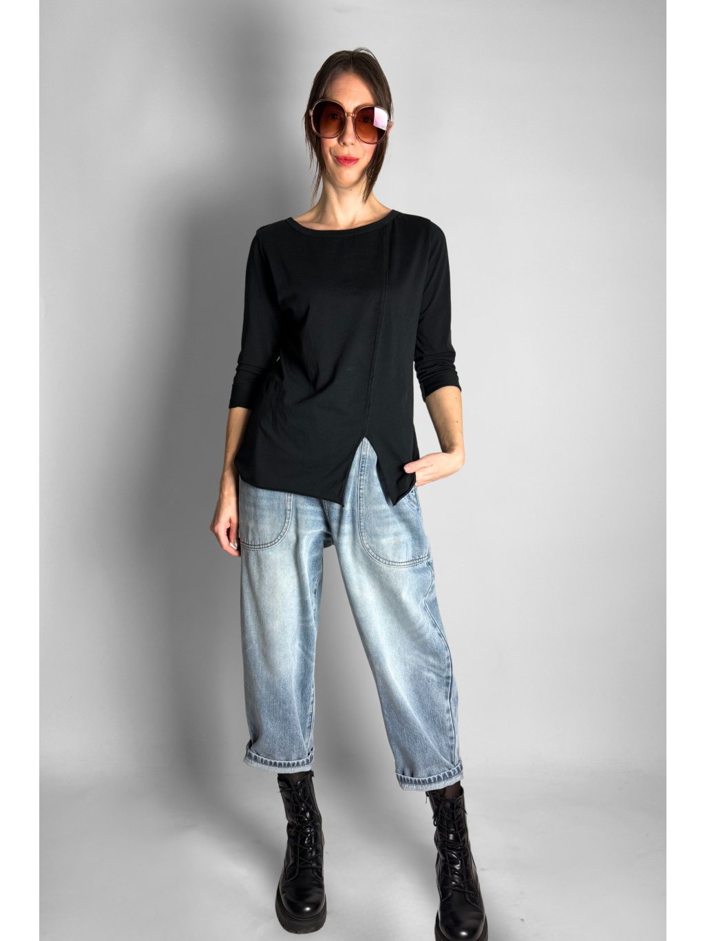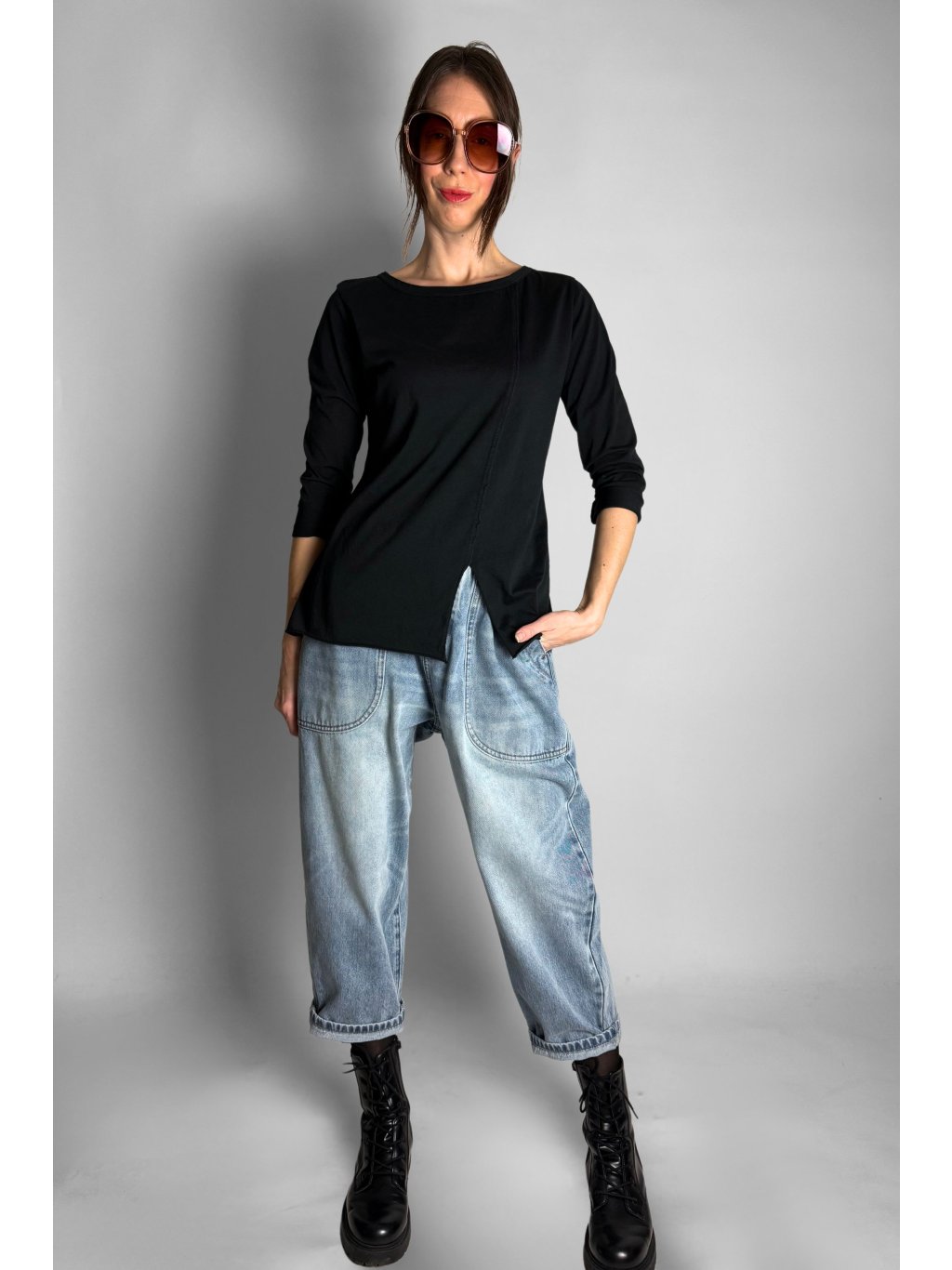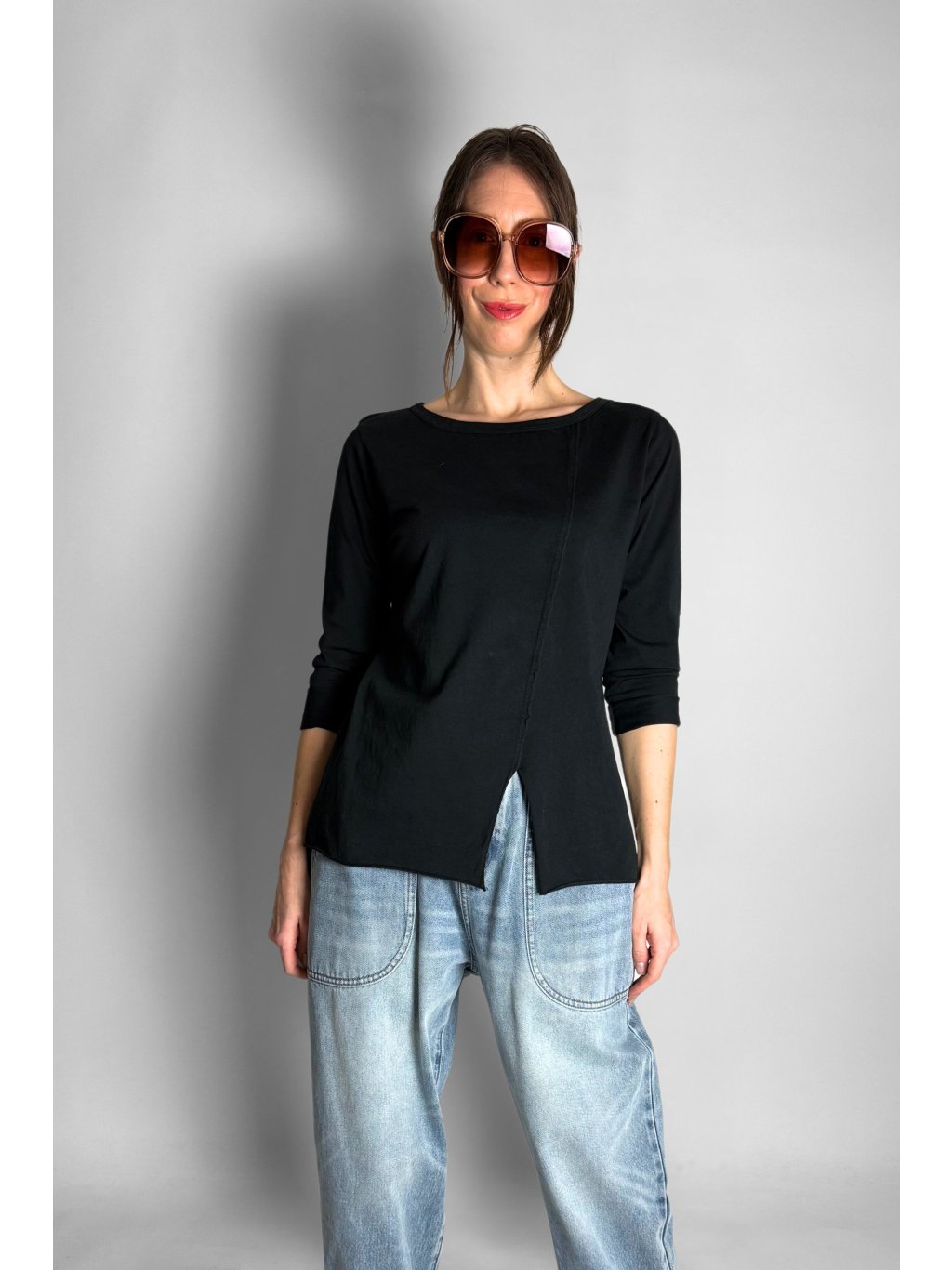 Top | Halenka s rozparkem vpředu Black