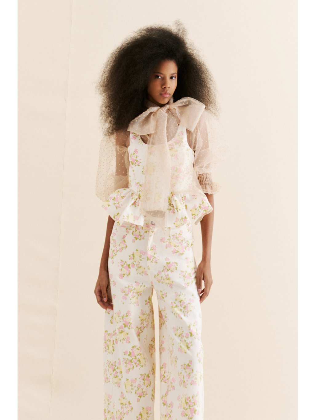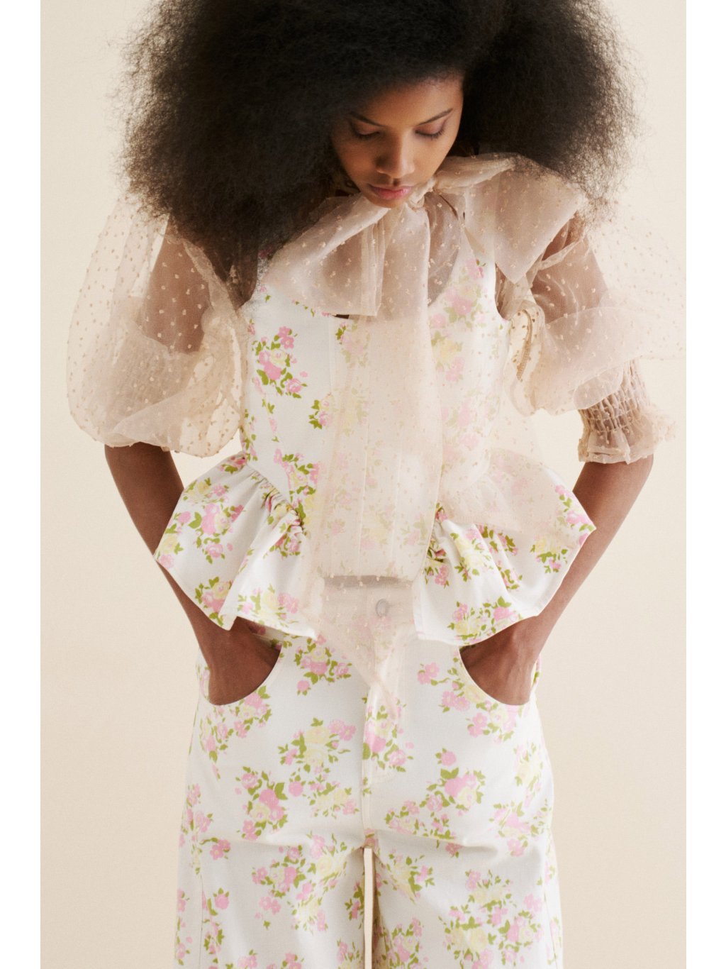 Součástí halenky je dlouhý šál u krku