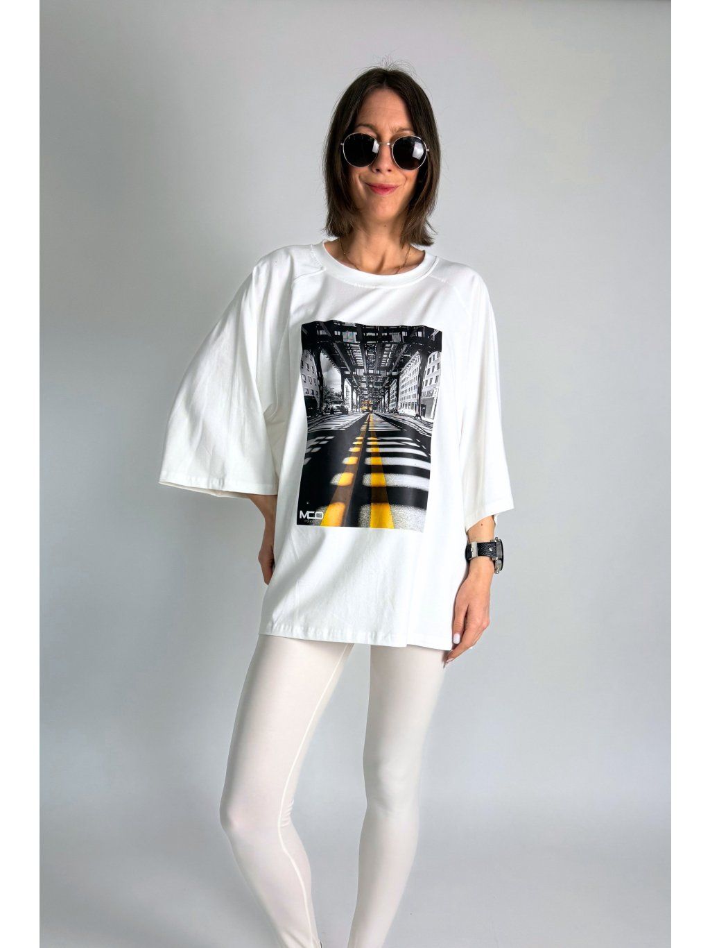 Tričko má kulatý výstřih, široké polodlouhé rukávy a decentní potisk. Ideální jako stylový basic kousek pro každodenní nošení.