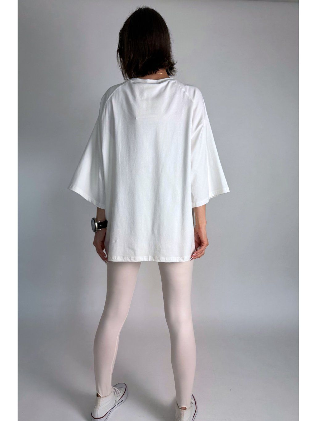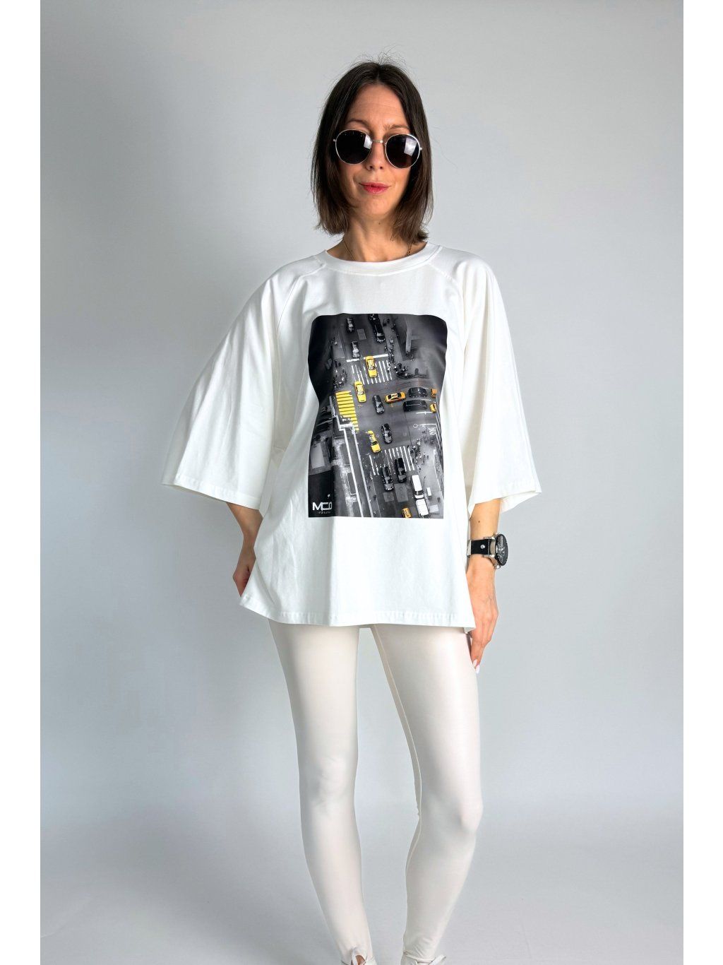 Tričko má kulatý výstřih, široké polodlouhé rukávy a decentní potisk. Ideální jako stylový basic kousek pro každodenní nošení.