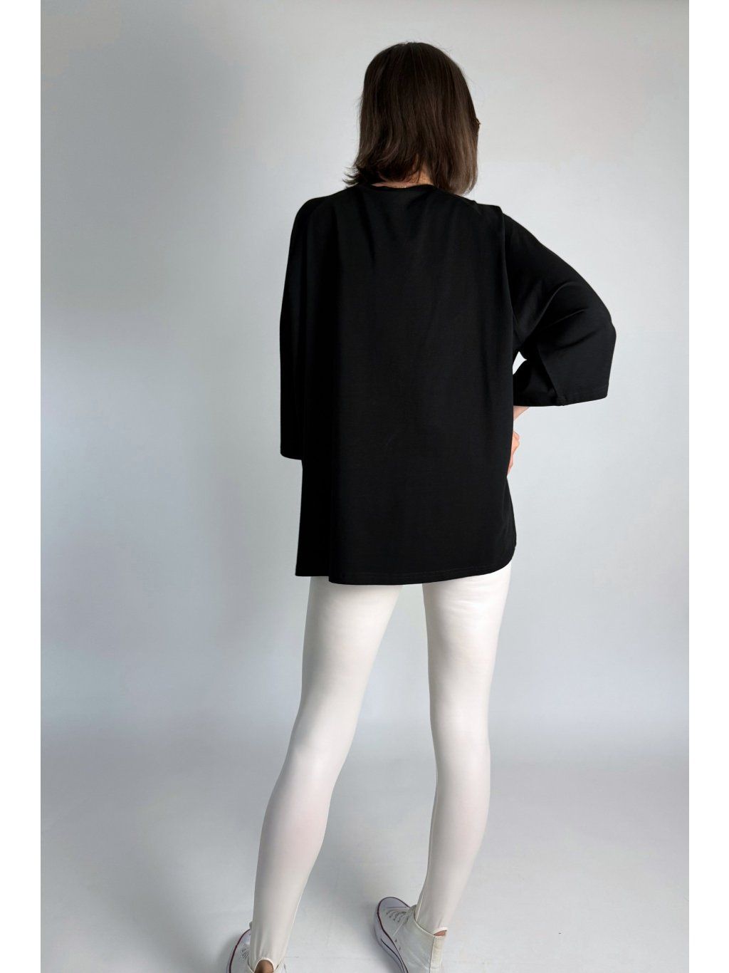 Tričko má kulatý výstřih, široké polodlouhé rukávy a decentní potisk. Ideální jako stylový basic kousek pro každodenní nošení.