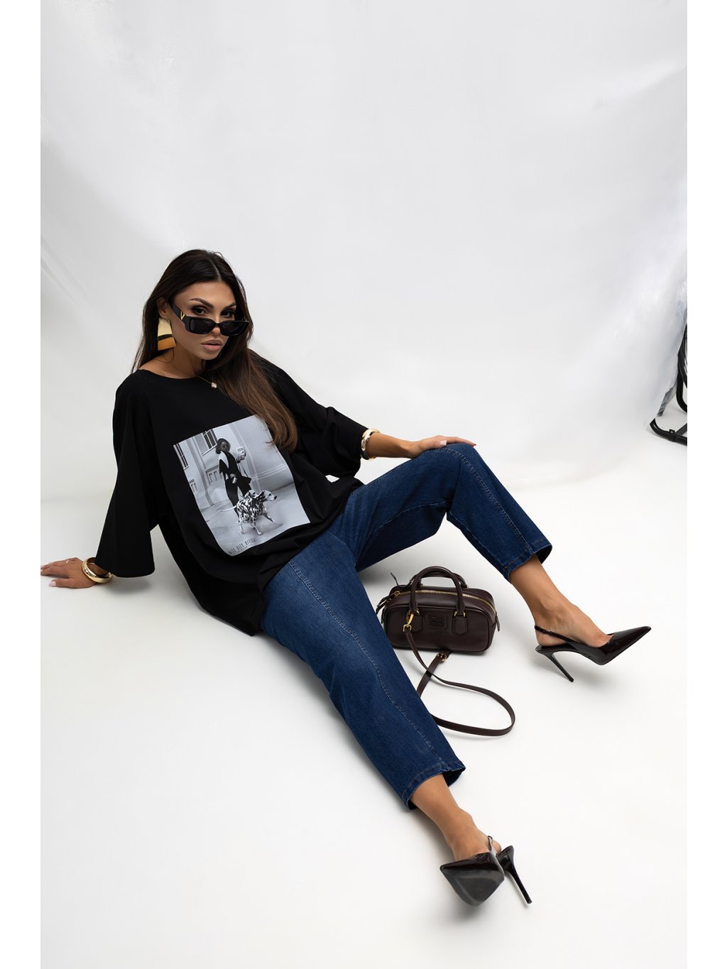 Tričko má kulatý výstřih, široké polodlouhé rukávy a decentní potisk. Ideální jako stylový basic kousek pro každodenní nošení.